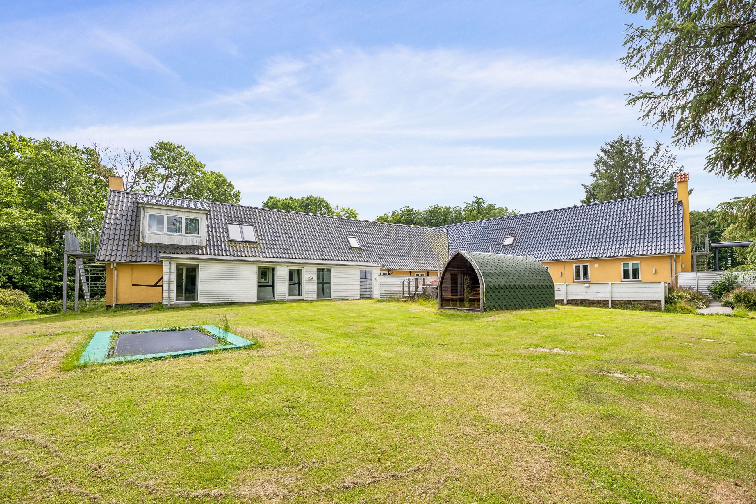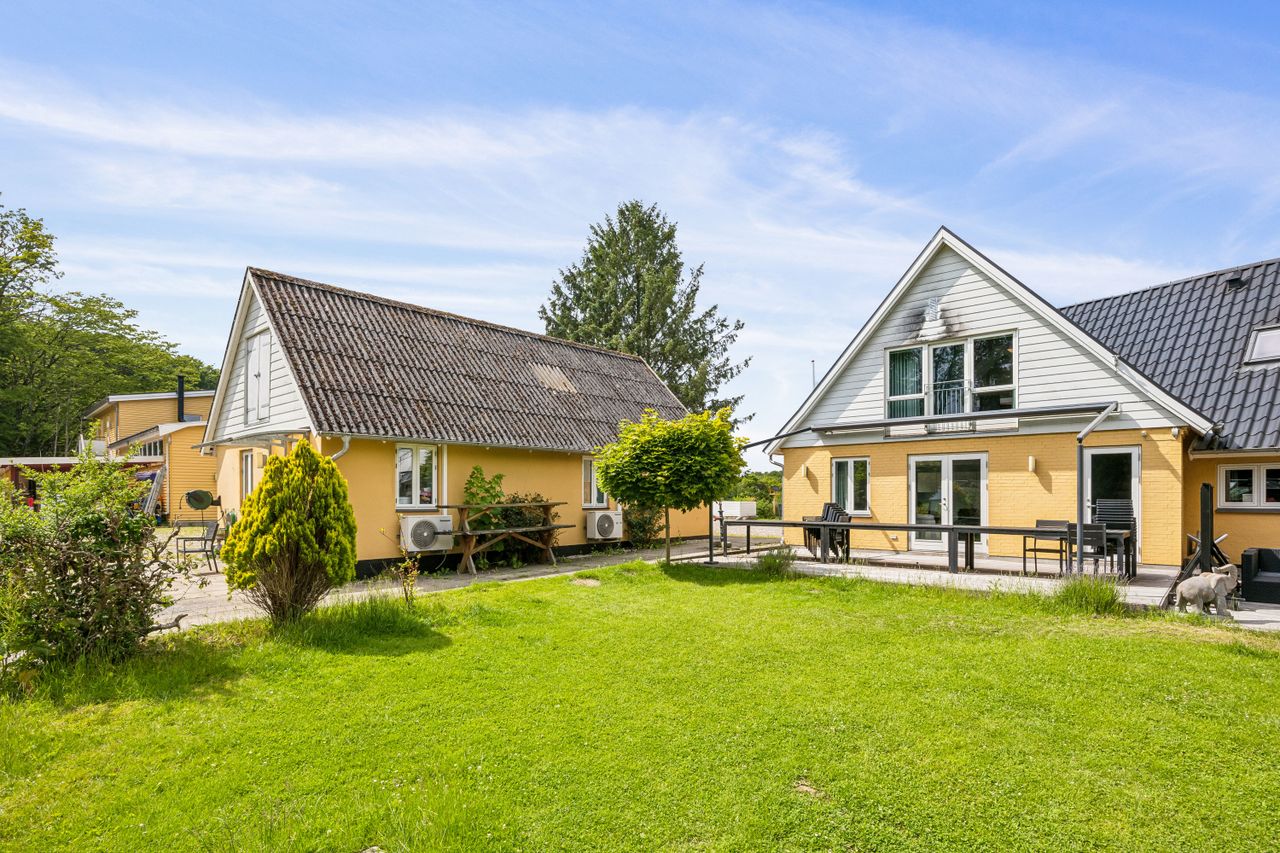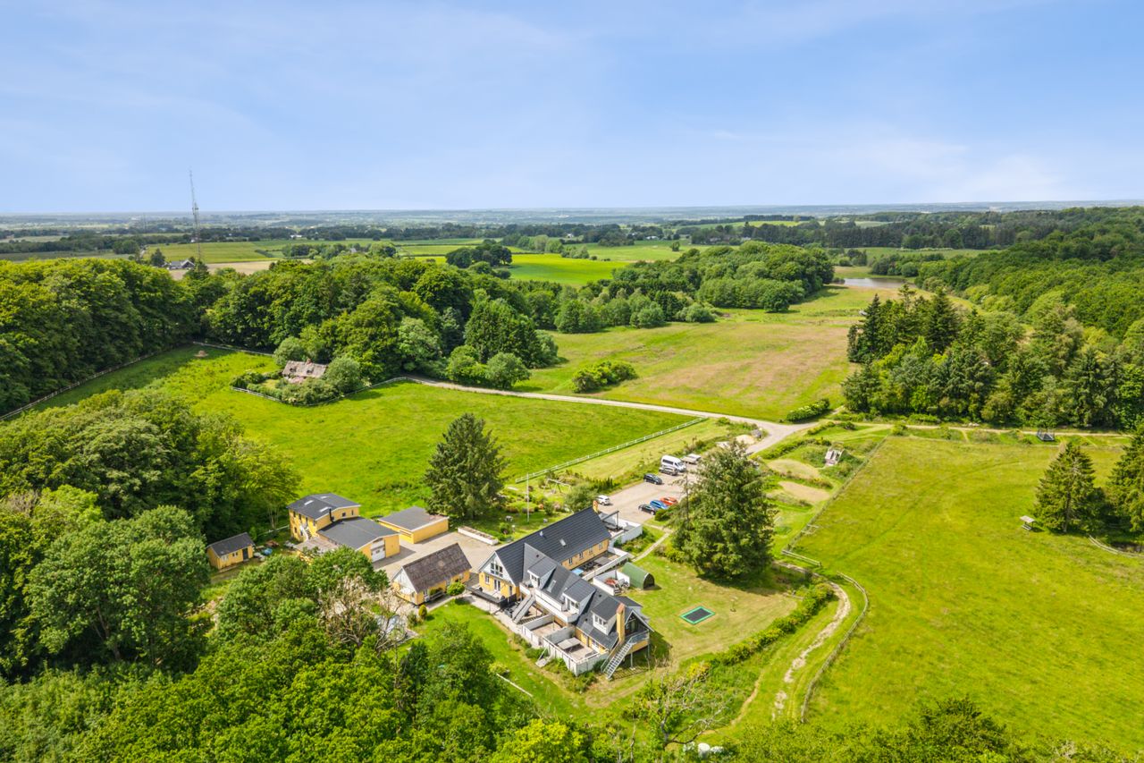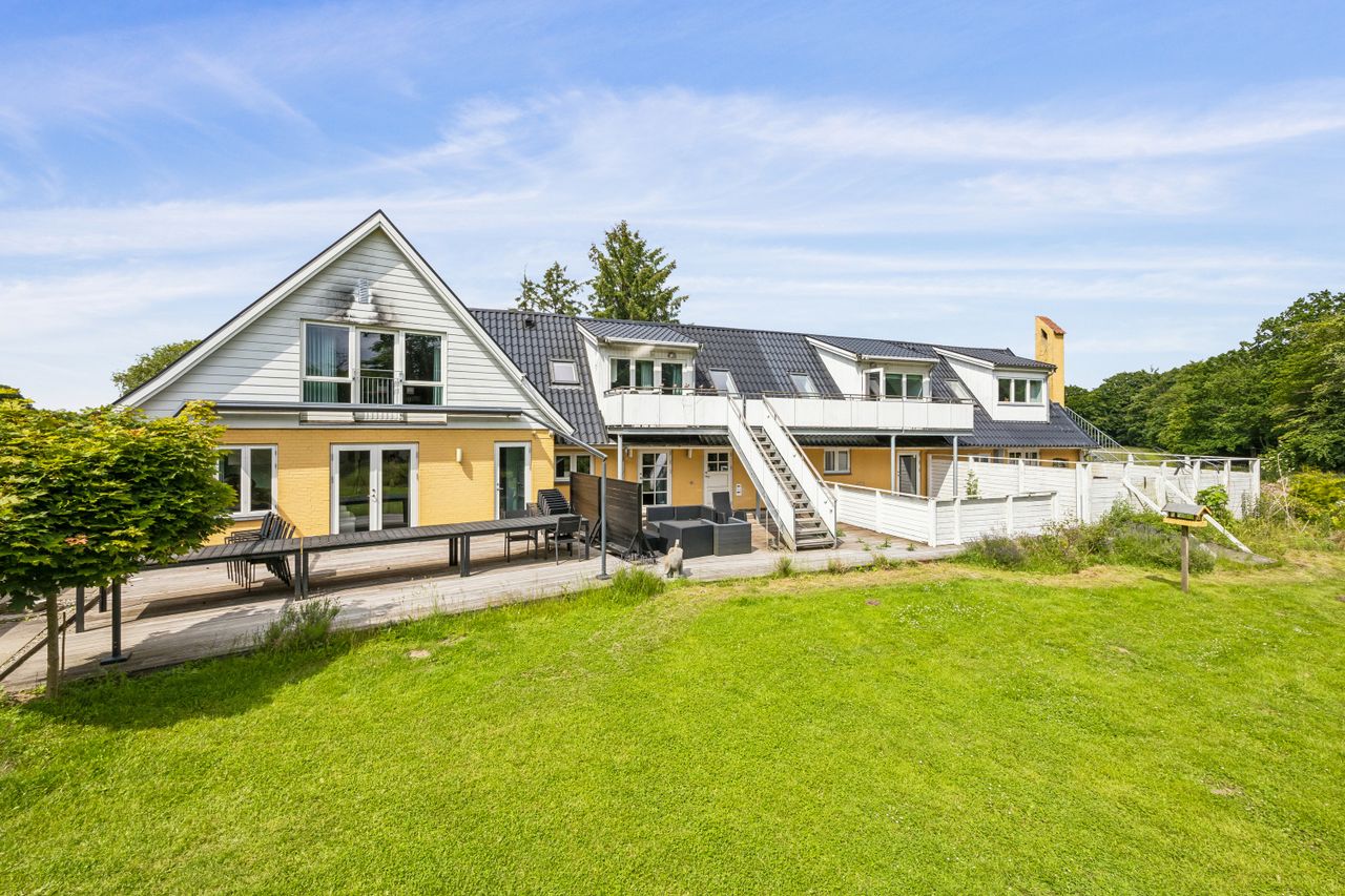 Ejendommen består af en landejendom fra 1895, der i 2016 blev gennemgribende renoveret og opdateret. Den samlede boligmasse udgør hele 558 m2 og rummer intet mindre end 15 værelser, 9 badeværelser og et stort fælleskøkken – ideelt til både storfamilien, bofællesskabet, en erhvervsdrivende institution/bosted, bed & Breakfast, hesteejendom eller investoren med blik for udvikling.