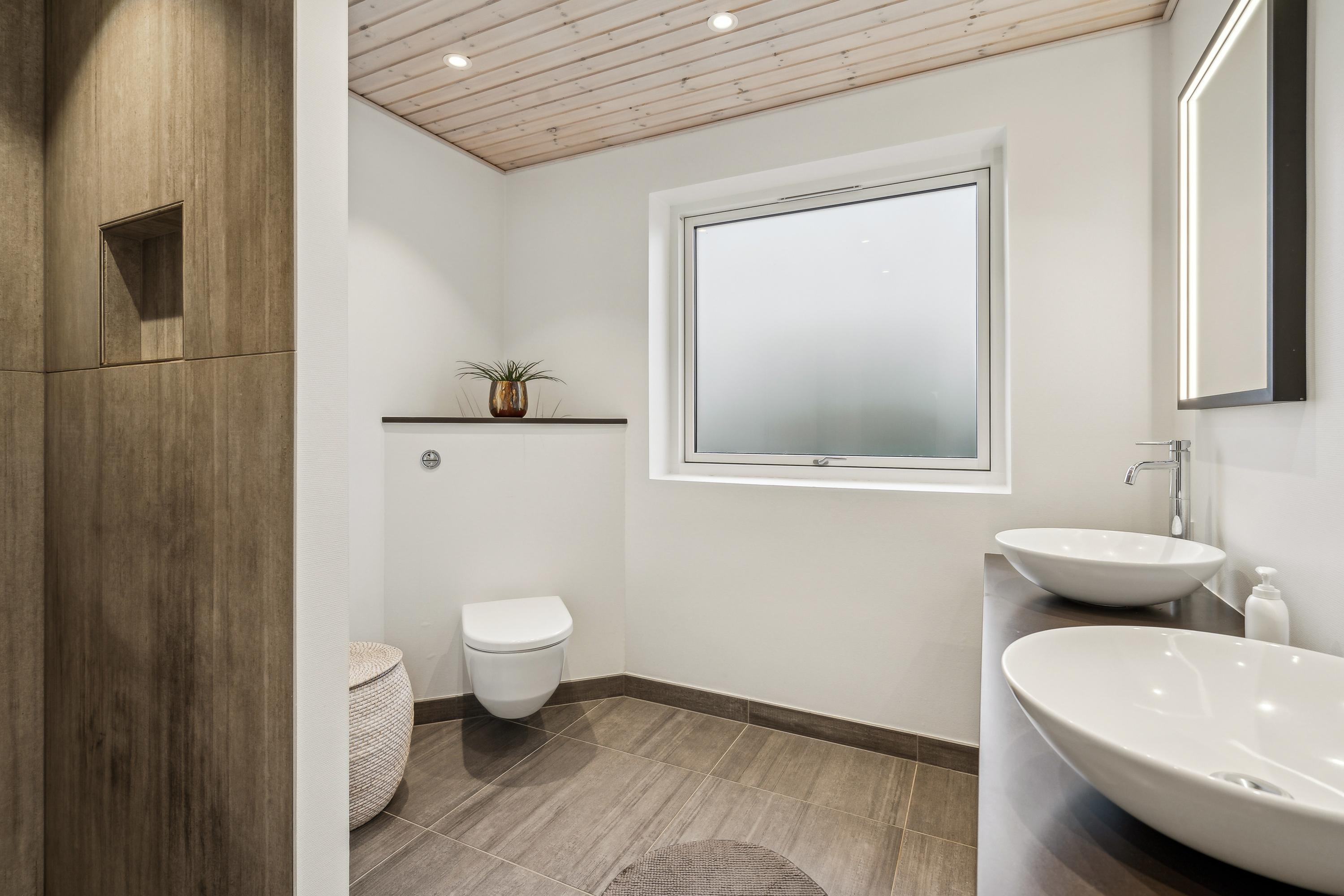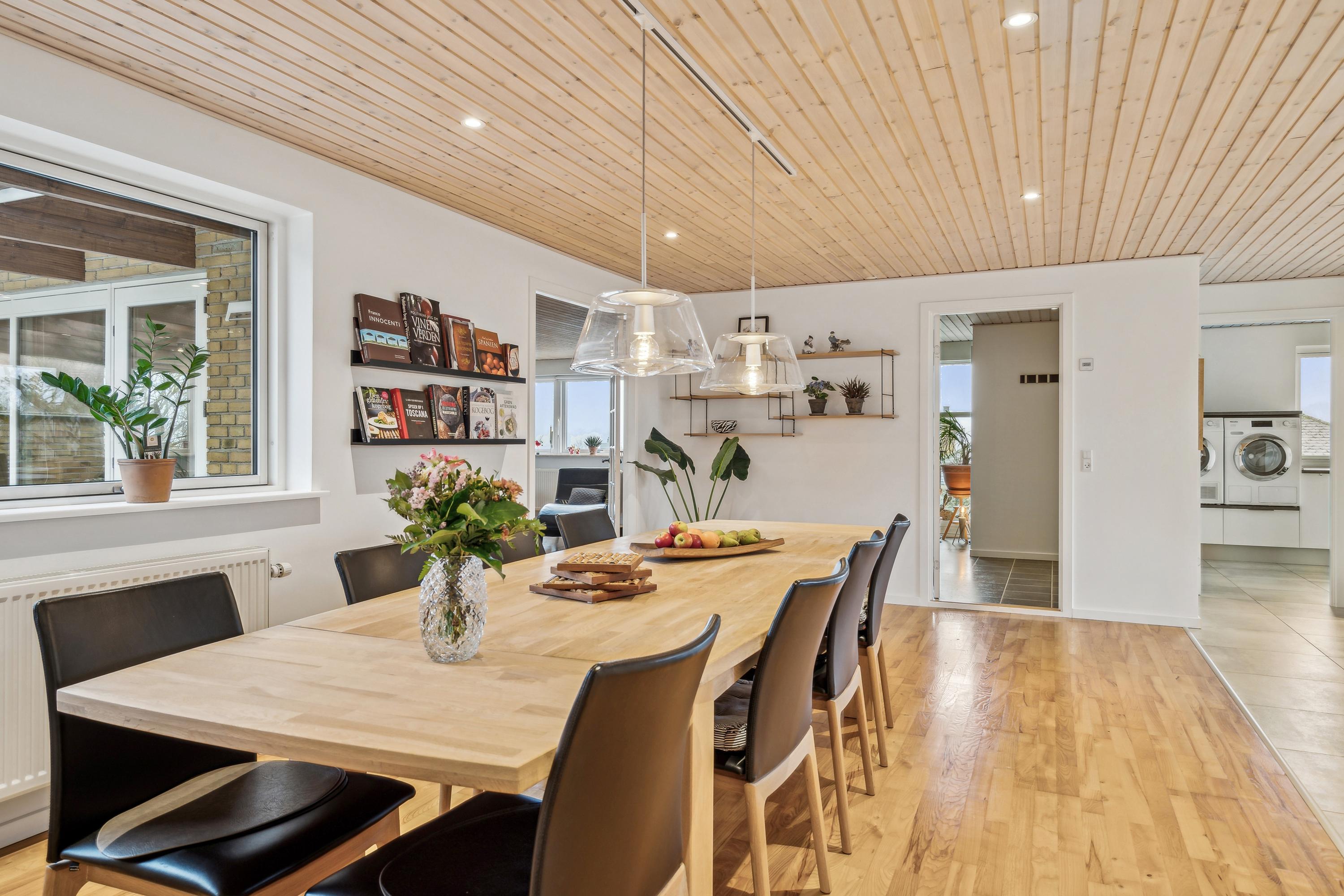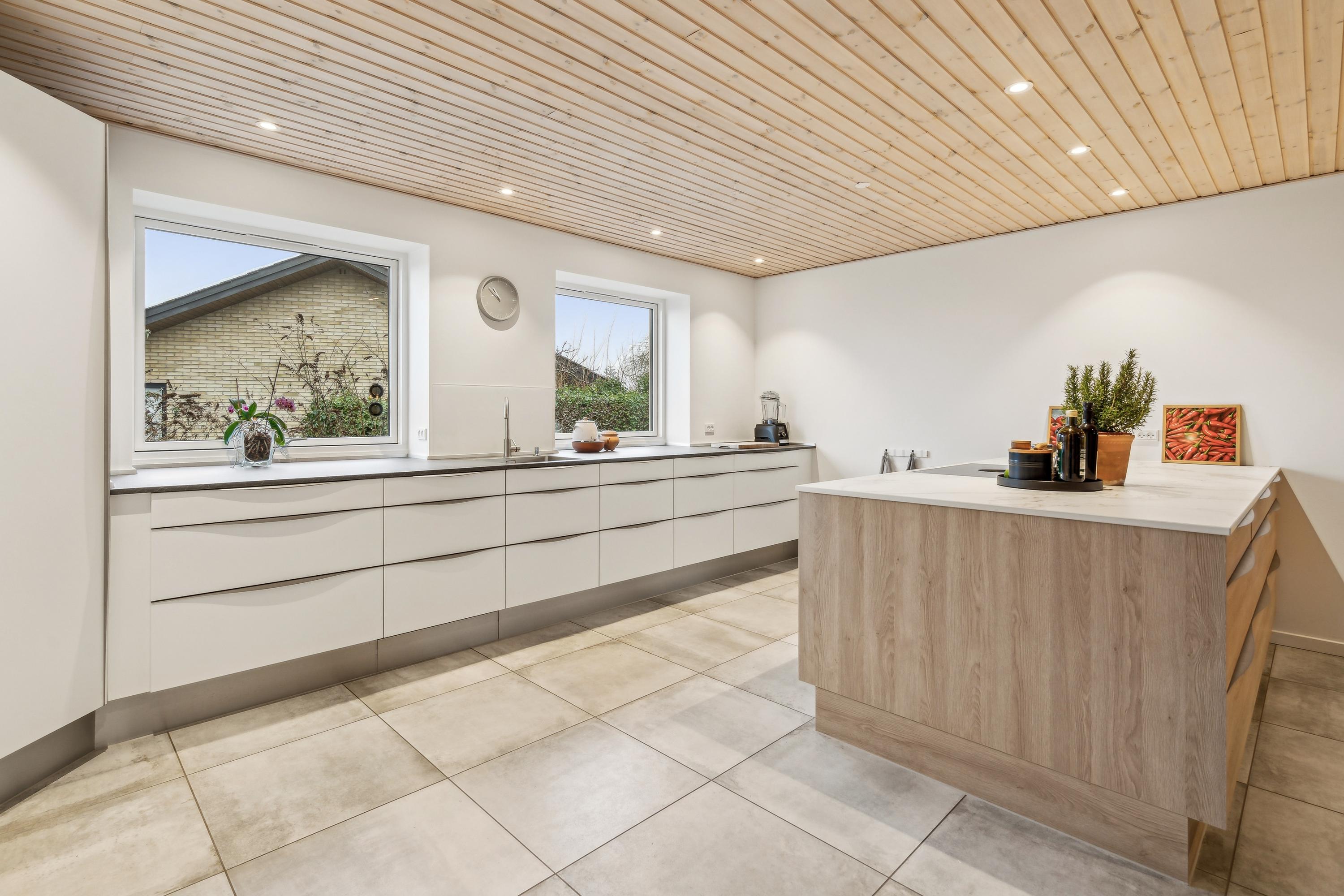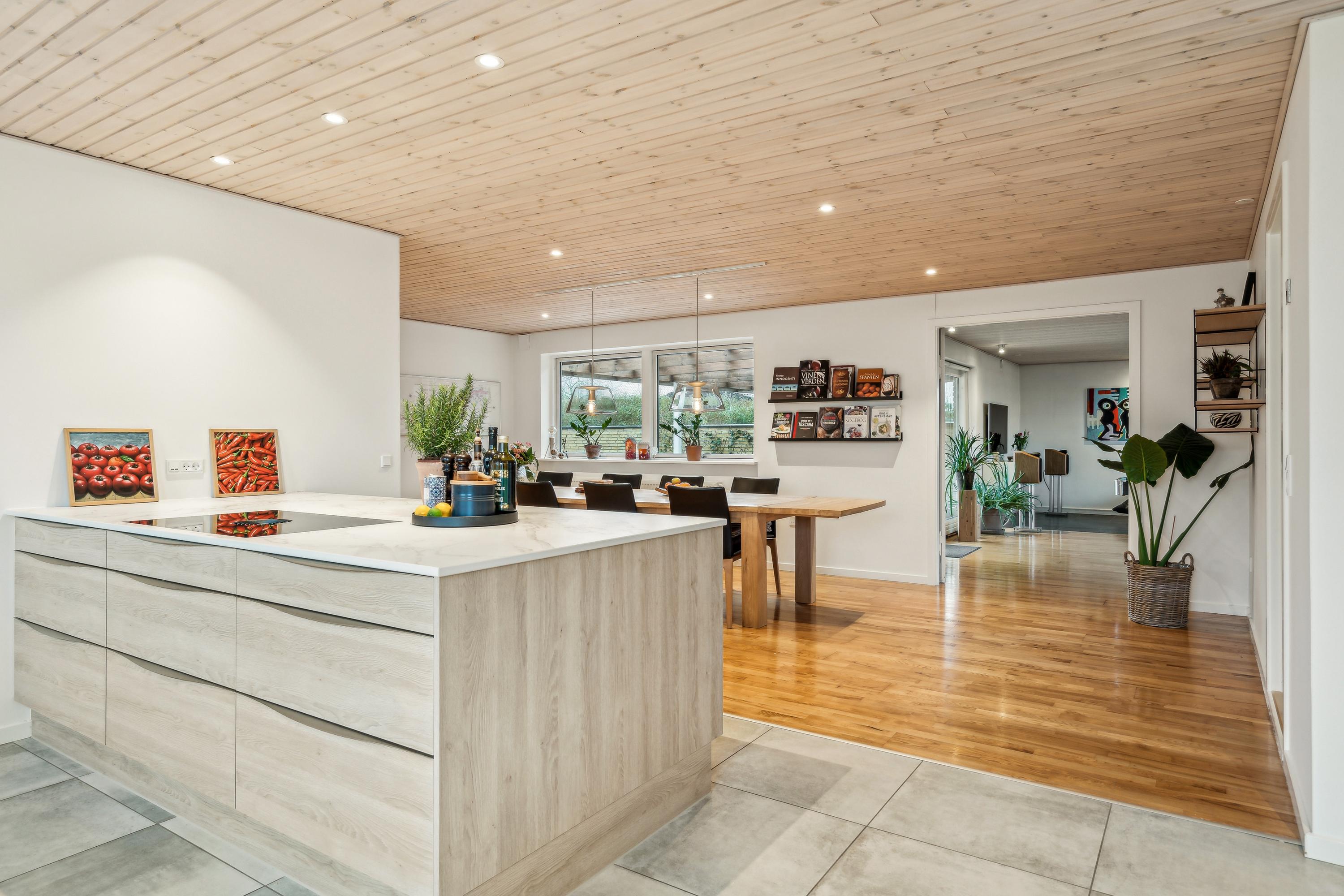 Hvis I er på udkig efter en veldisponeret og familievenlig villa, kan boligjagten meget vel ende på Nordlundsvej 11 i Ny Holsted. Her får I nemlig et lækkert nyere køkken-alrum, hele fire værelser, to flotte badeværelser og en kæmpe stue. Som ekstra bonus er haven solfyldt, og I får tilmed en skøn