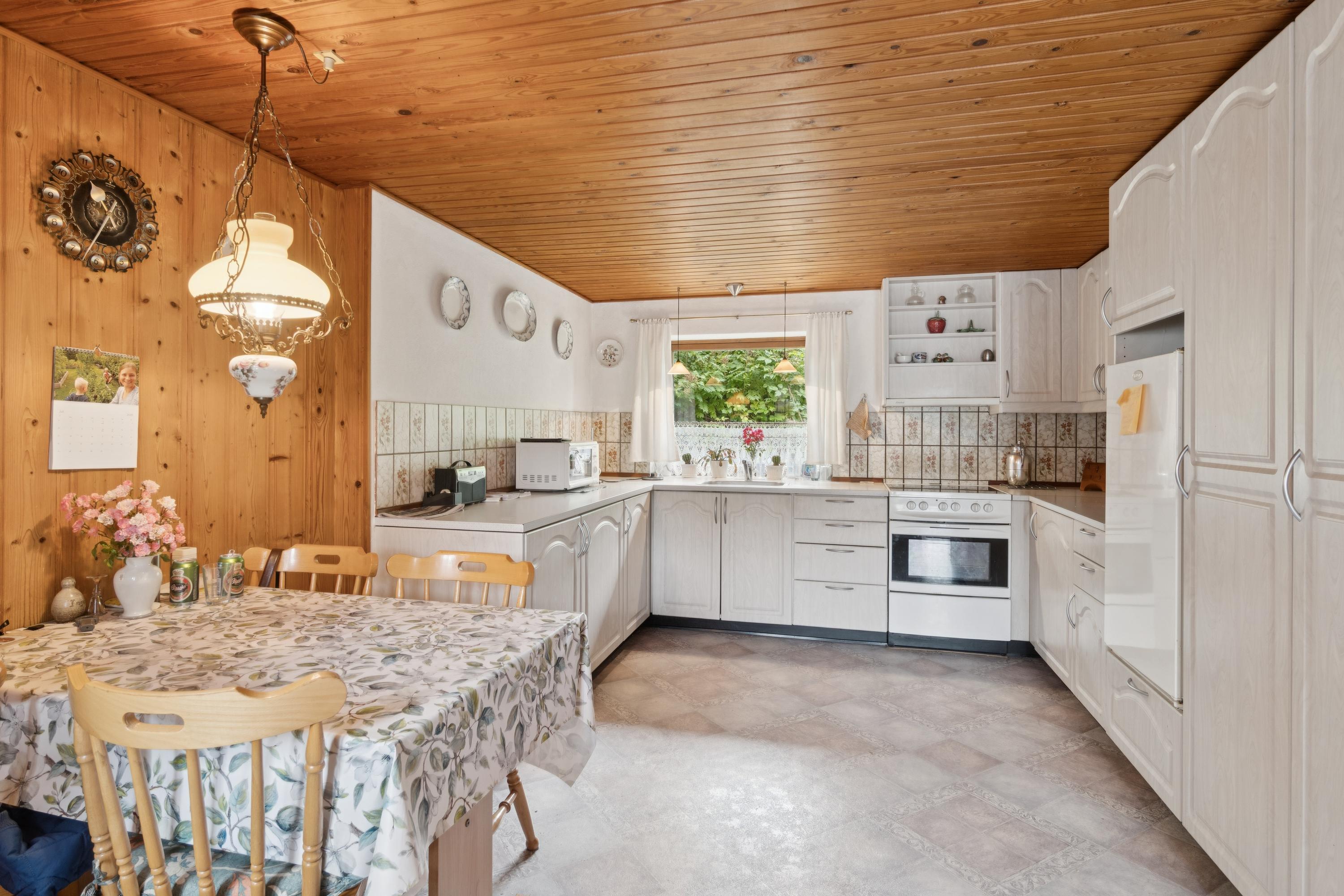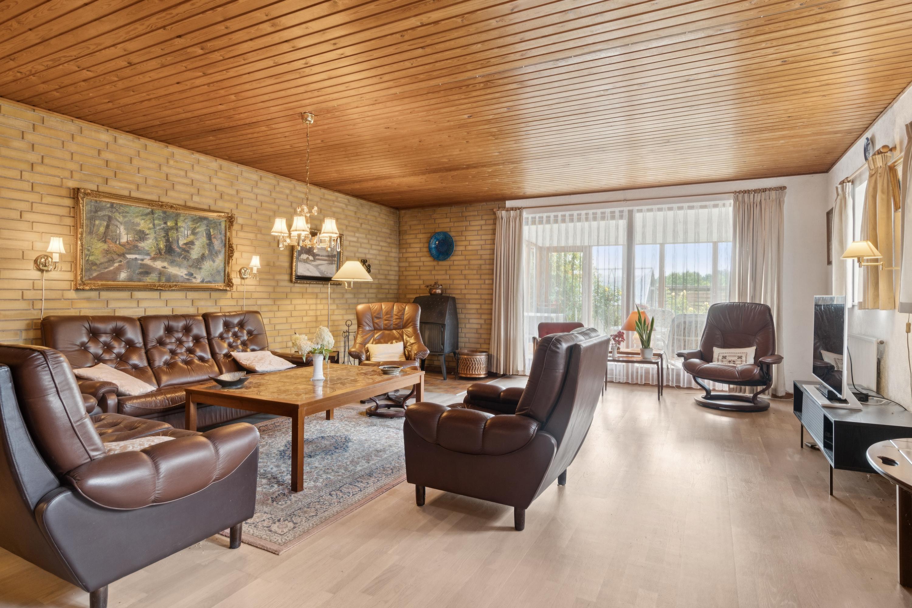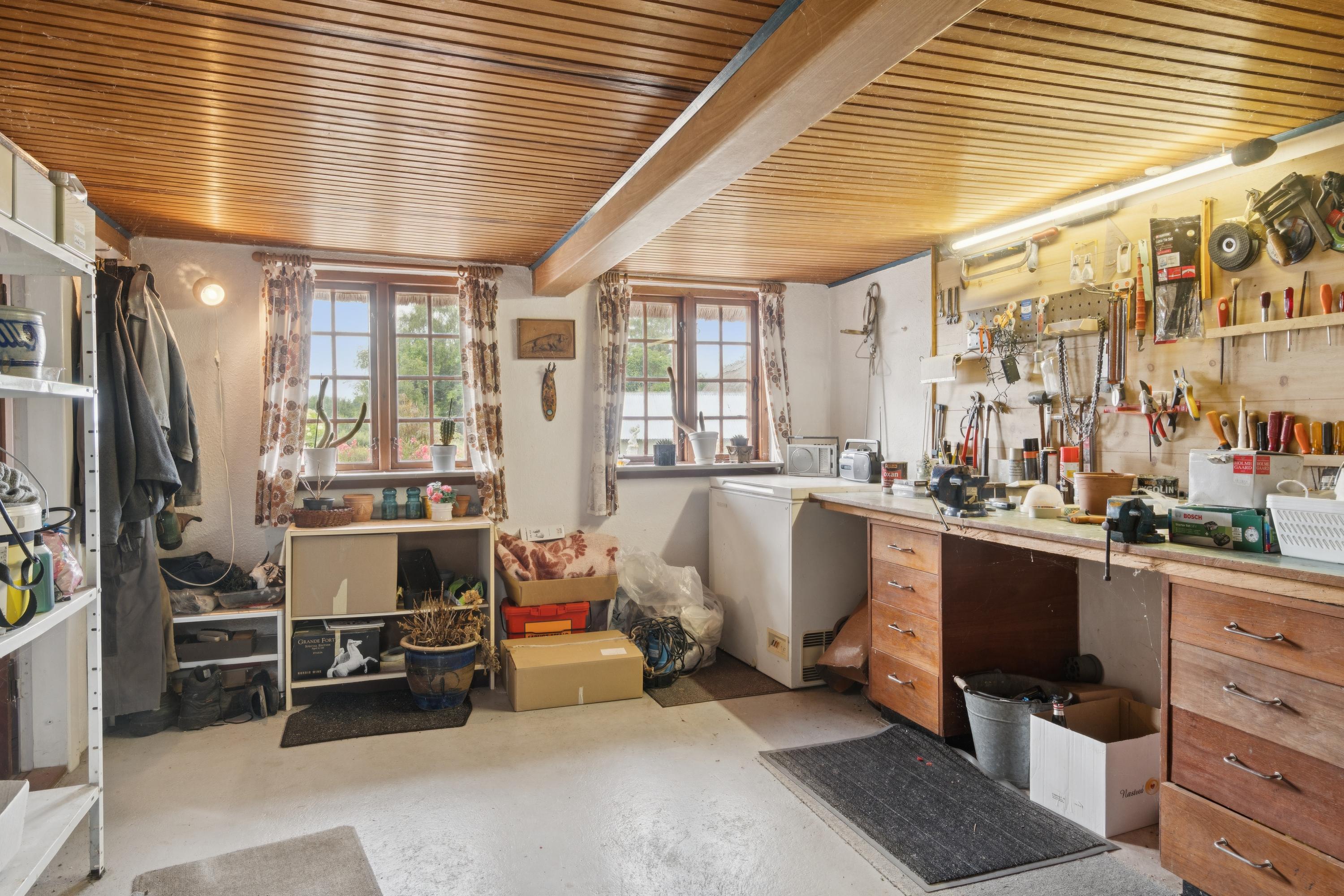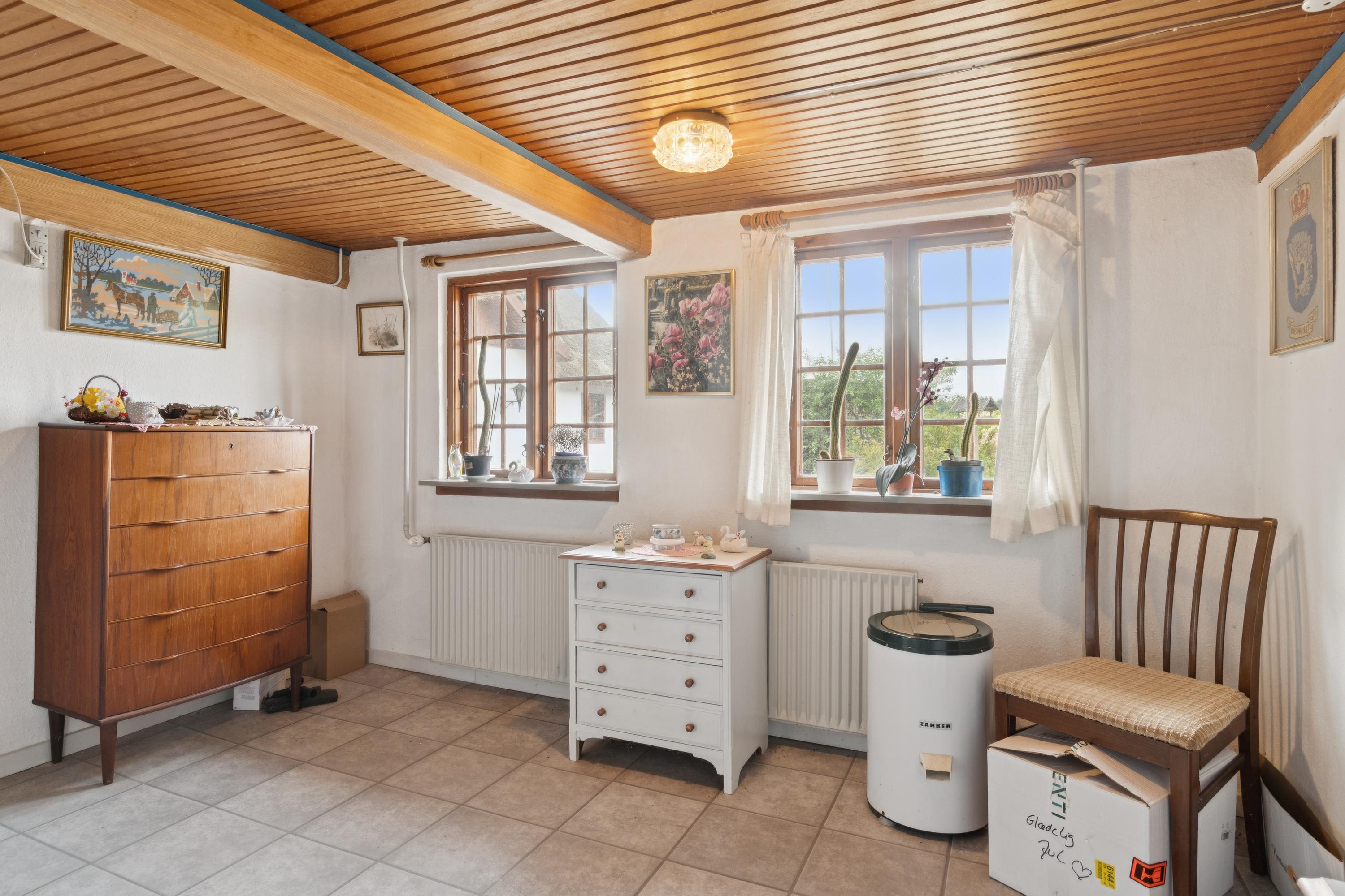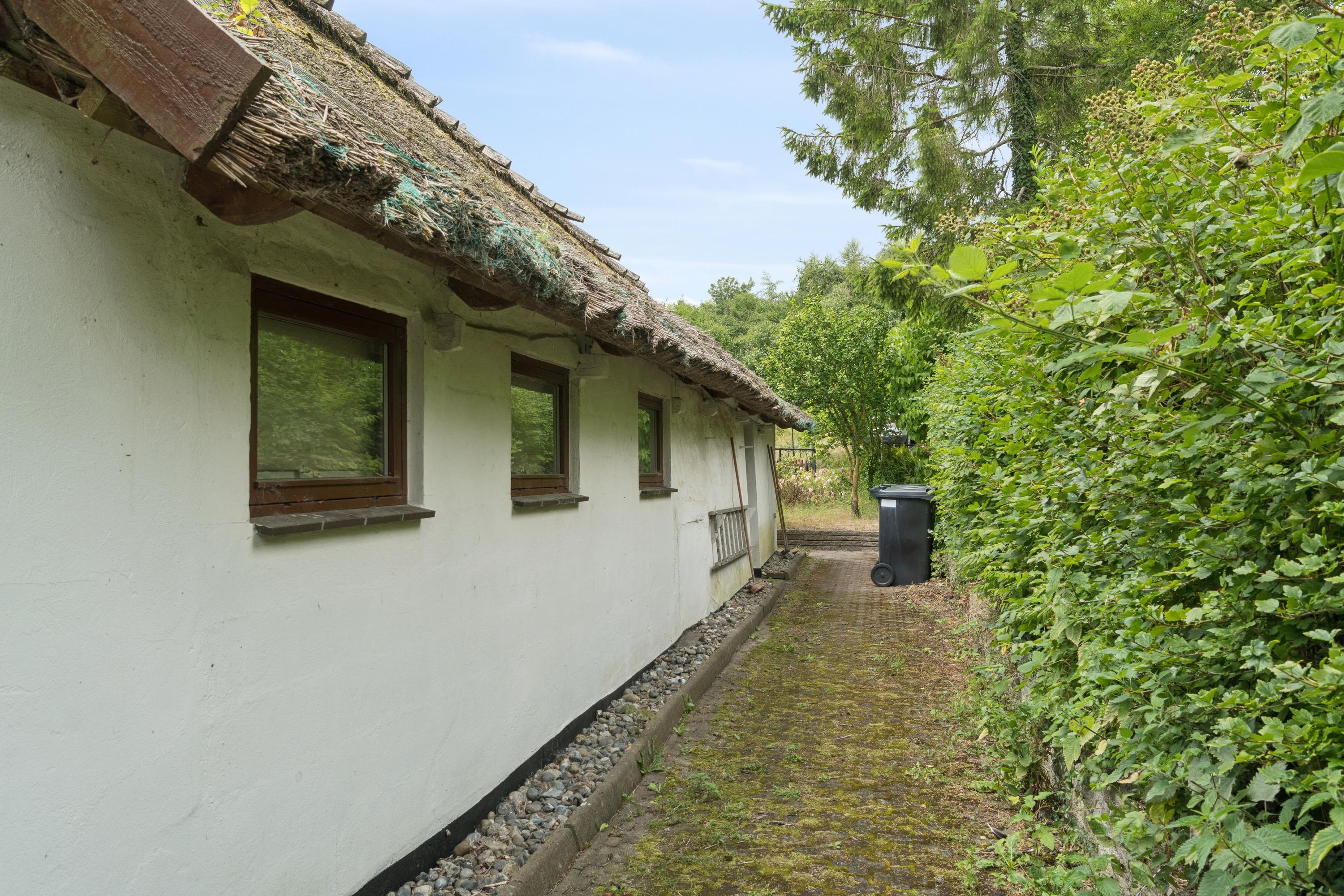 I det hyggelige Svenstrup ligger denne særlige bindingsværksejendom, hvor den hvide facade smyger sig over stok og sten. Dette passer som fod i hose til udtrykket med de mørkebrune vinduesrammer og døre og ikke mindst det fine stråtag med kviste. Her kombineres historie og landlig idyl i smuk