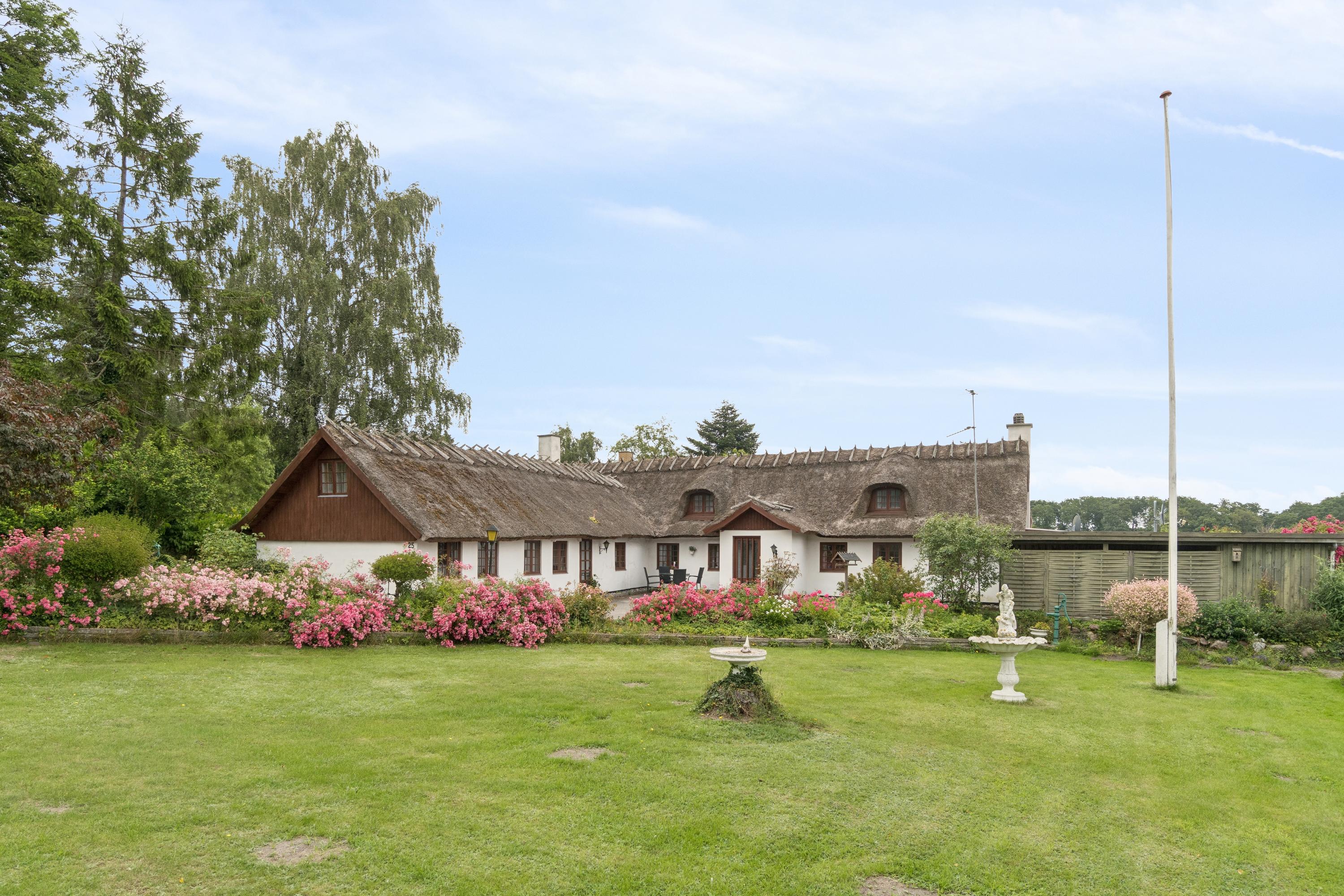 Idyllisk bindingsværksdrøm med stråtag og fredelige omgivelser