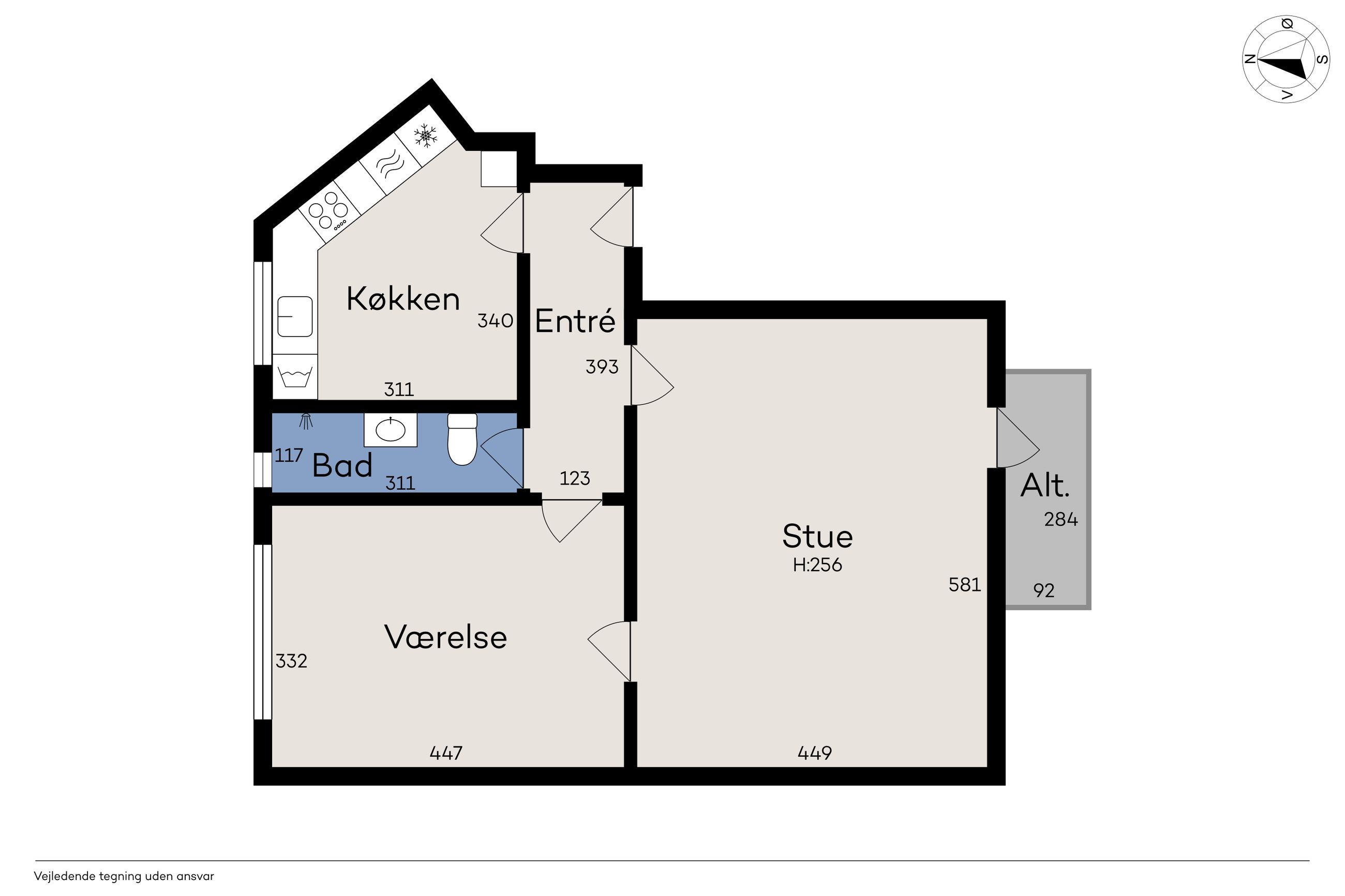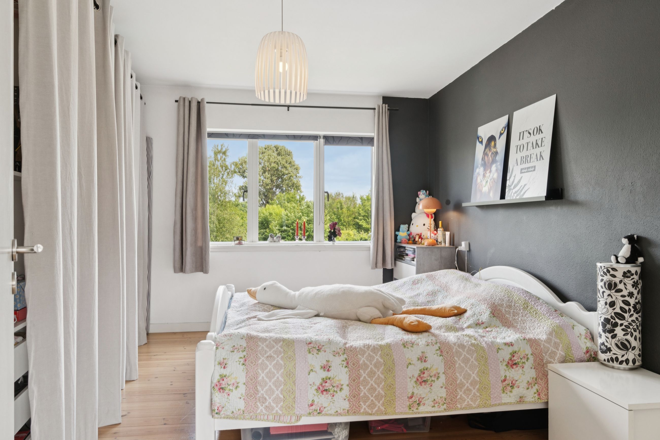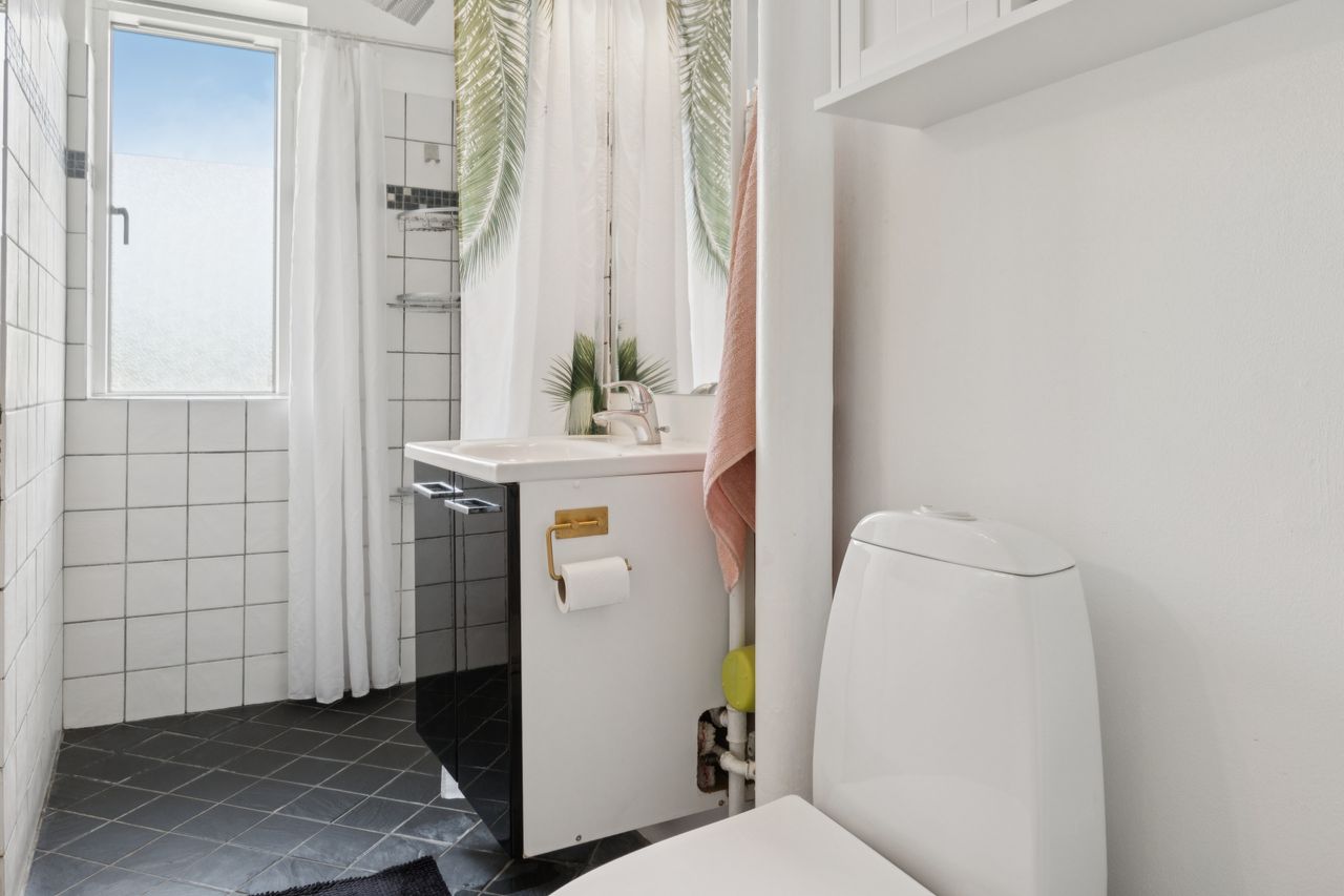 Soveværelset er også ganske rummeligt, så du får plads til dobbeltsengen og skabsløsninger, mens badeværelset sætter prikken over i’et med sit separate bruseafsnit og vinduet, der lukker lys og luft ind.