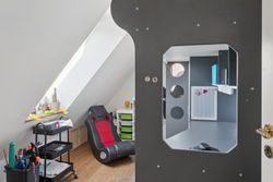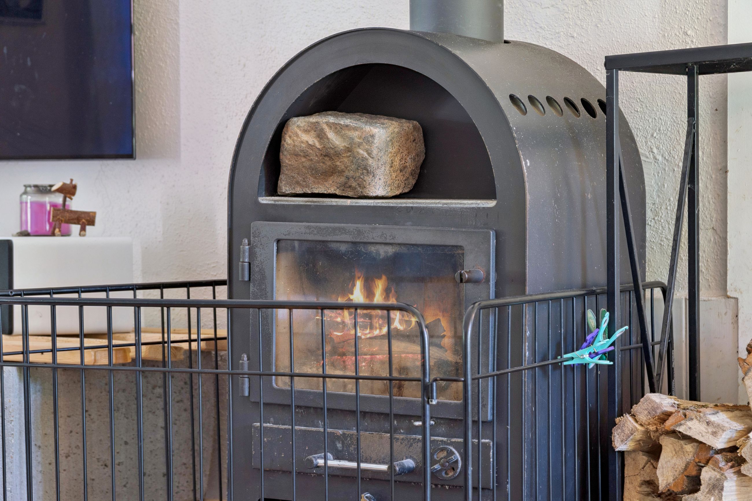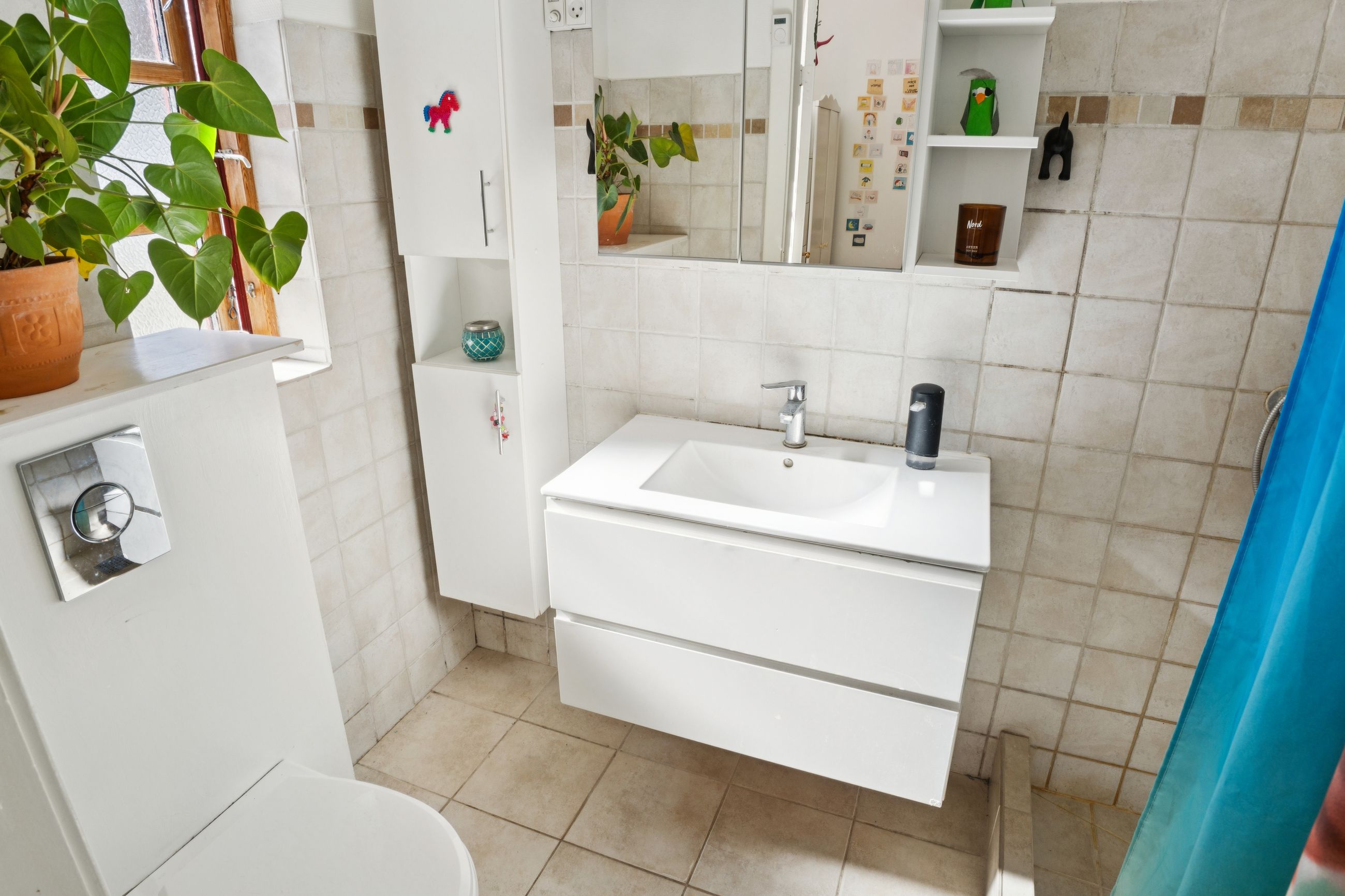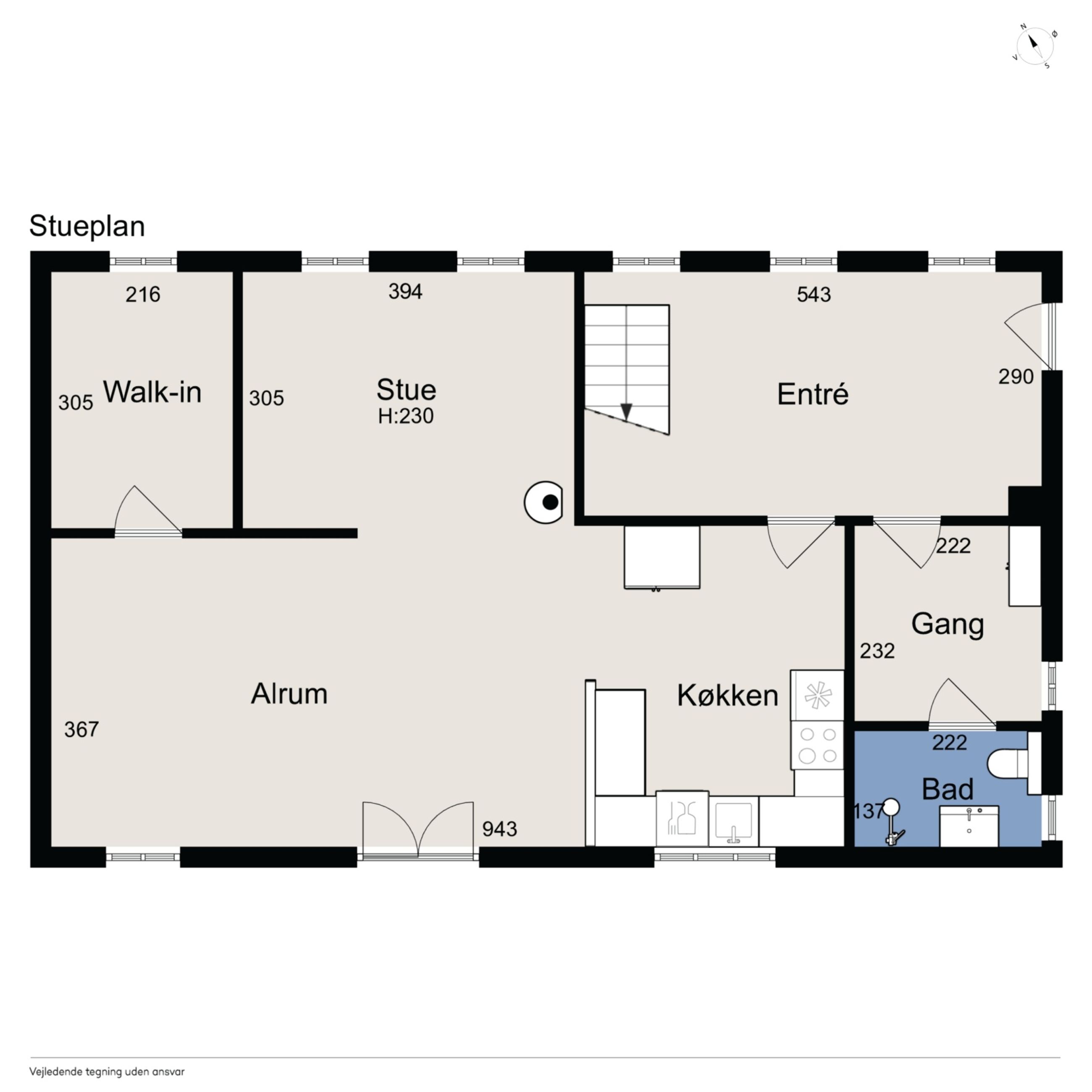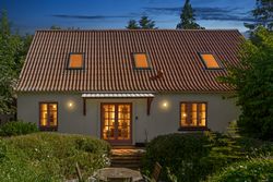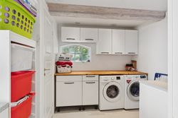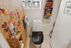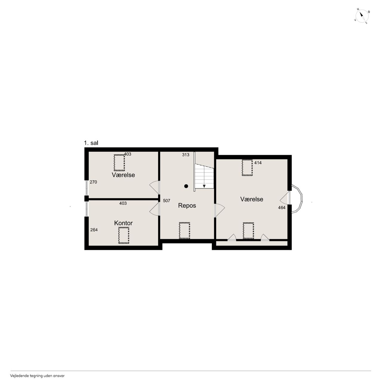 Villaen fremstår med et nydeligt udtryk. Den pudsede facade er hvid, og taget er rødt. De sprossede vinduer understreger den fine stil, og som I træder inden for, vil I finde æstetikken videreført på to etager med et samlet beboelsesareal på 166 kvadratmeter. I midten af det hele råder I over et markant opholdsrum med stue og køkken i åben forbindelse. Sidstnævnte er opstillet i en hesteskoform, mens der i de to stueafsnit opleves et behageligt lysindfald. En brændeovn understreger den charmerende atmosfære. Det resterende af boligen er i stueplan allokeret til et walk-in-closet, et badeværelse og en entré, hvorfra der er passage til førstesalen. Her venter et møblerbart repos og tre regulære værelser.