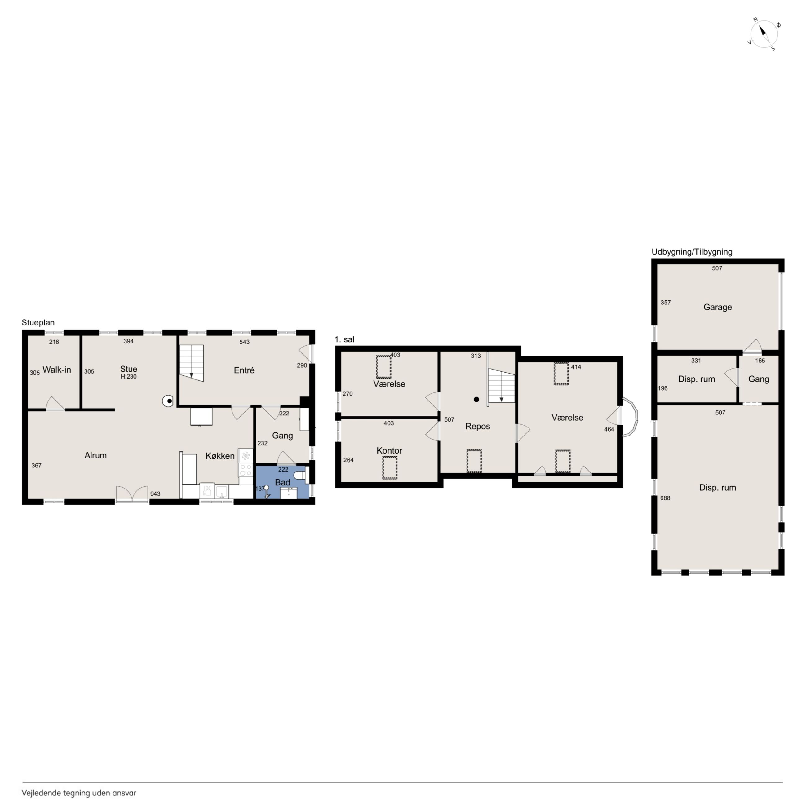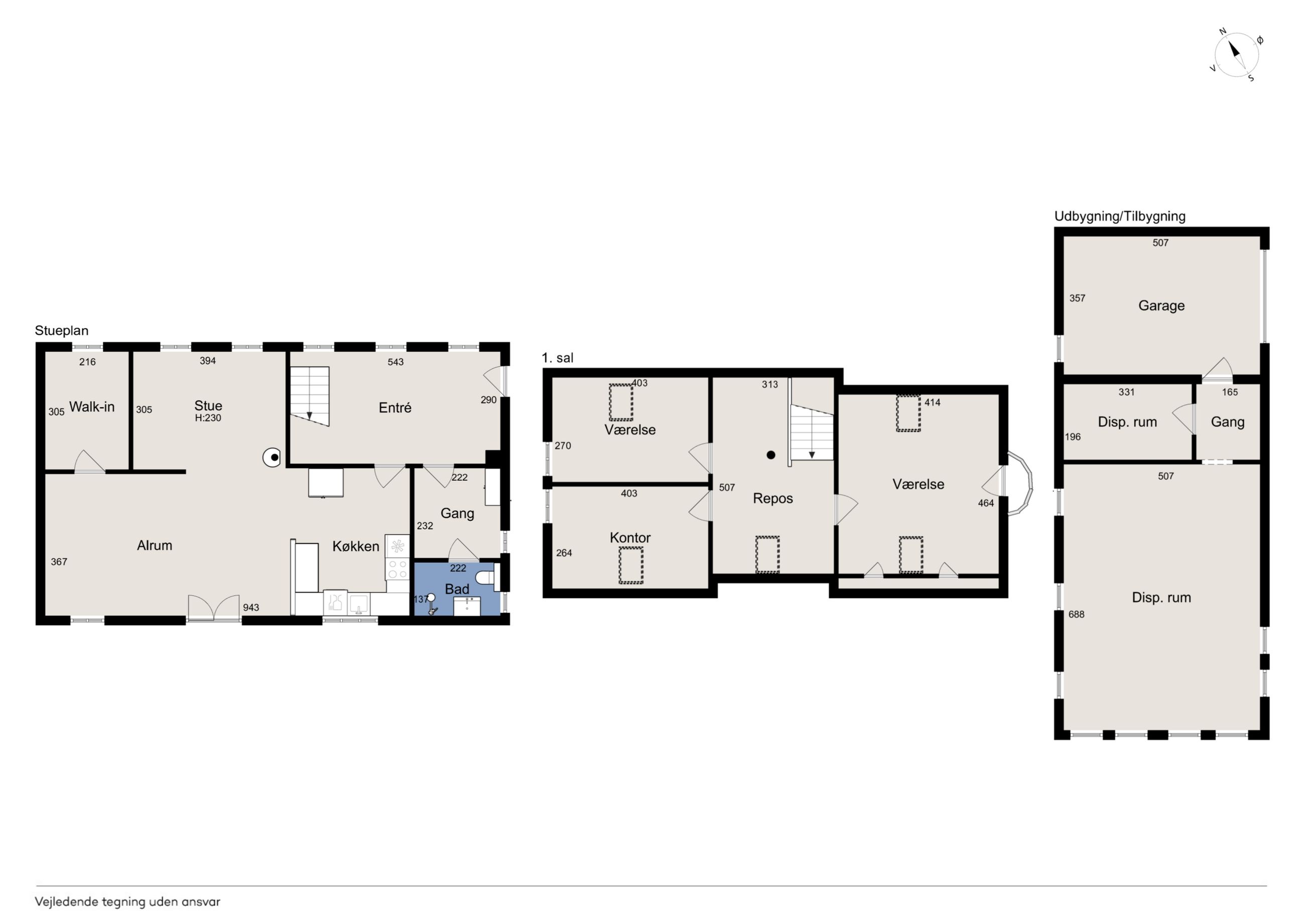 Ejendommen består slutteligt af flere udbygninger med mange muligheder. Her i blandt en stor lade, hvor en stor del er indrettet som festsal. Denne kan rumme 50 gæster og er indrettet med køkkenelementer. Den resterende del af laden er oplagt til opbevaring og indeholder også værksted.