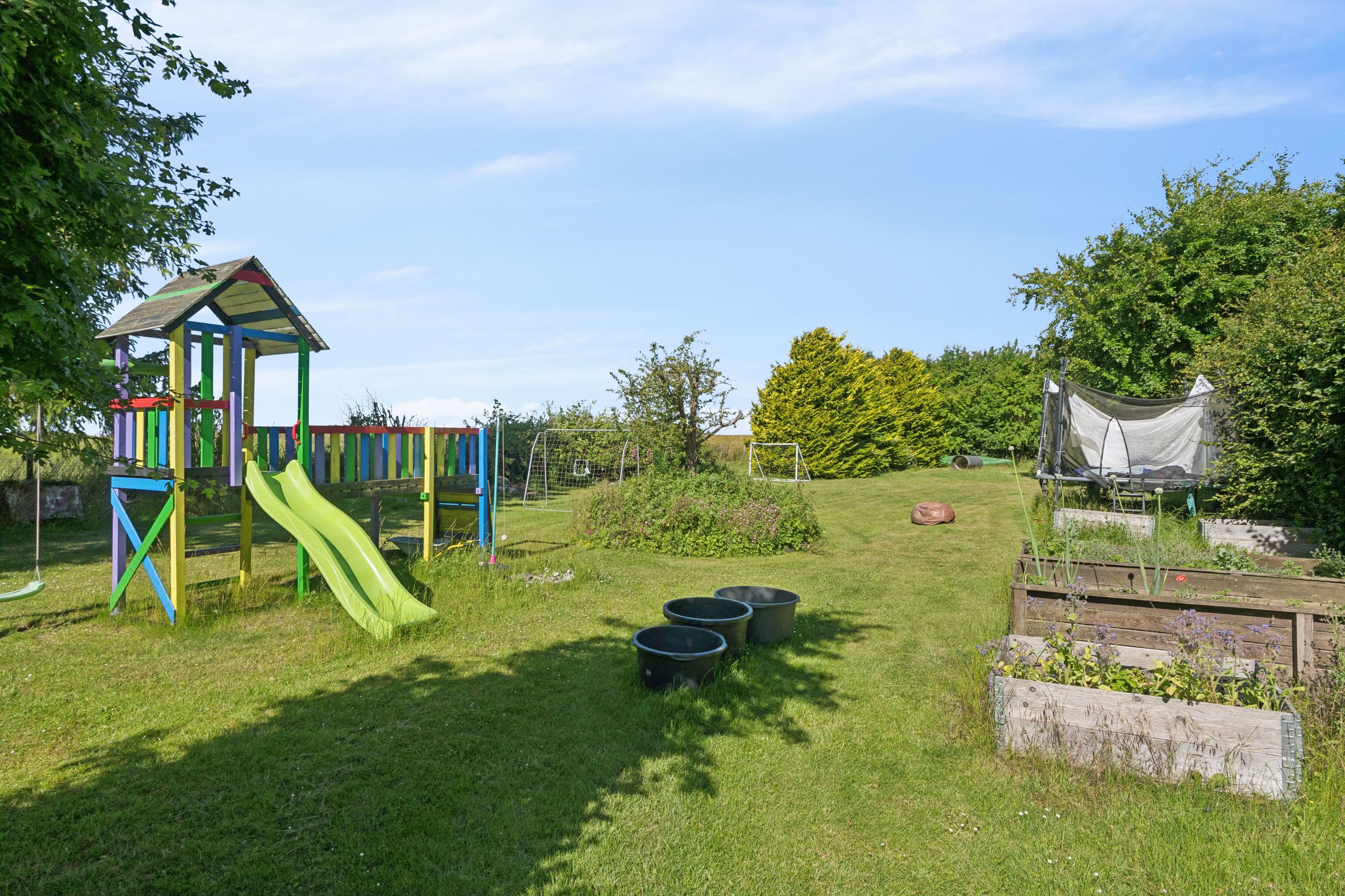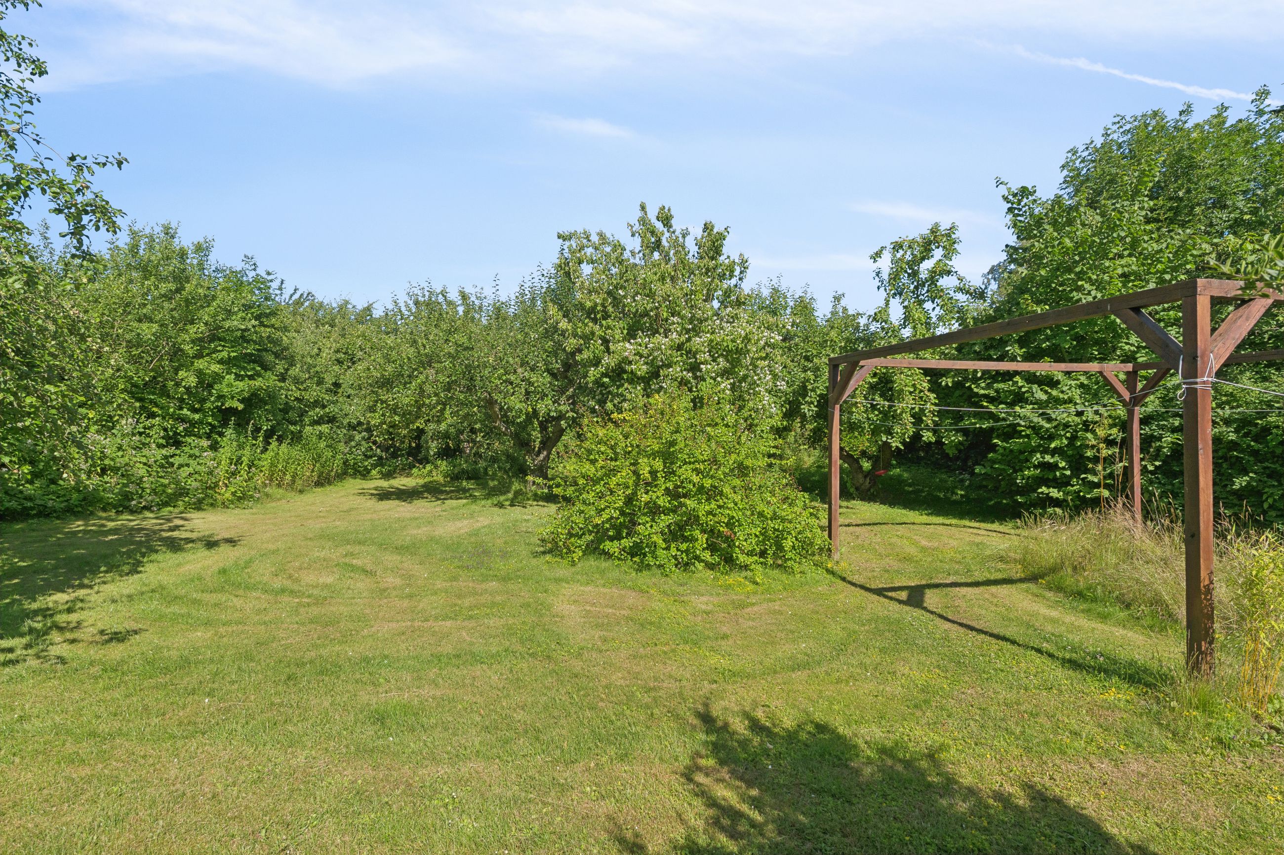 Grunden er med sine lige knap 4.000 kvadratmeter anseelig af størrelse. Her er frodigt og solrigt og masser af steder, hvor I kan nyde udsigt og den lune, danske sommer.