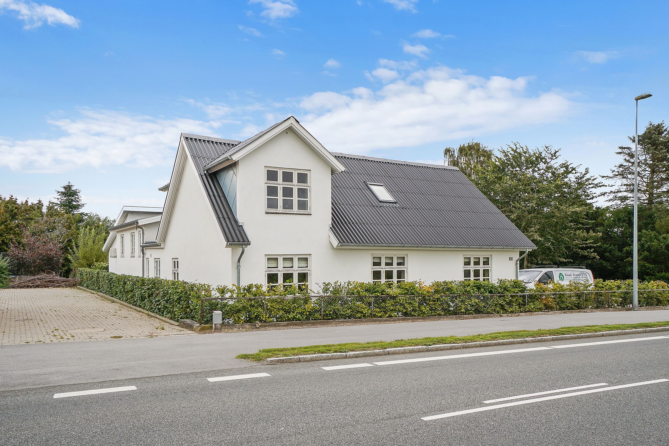 her er mulighed for autolift. Endnu en garage, denne på 38 m2, byder sig til, og endeligt kan I se frem til en hyggelig gårdsplads samt en nem have med græsplæne.