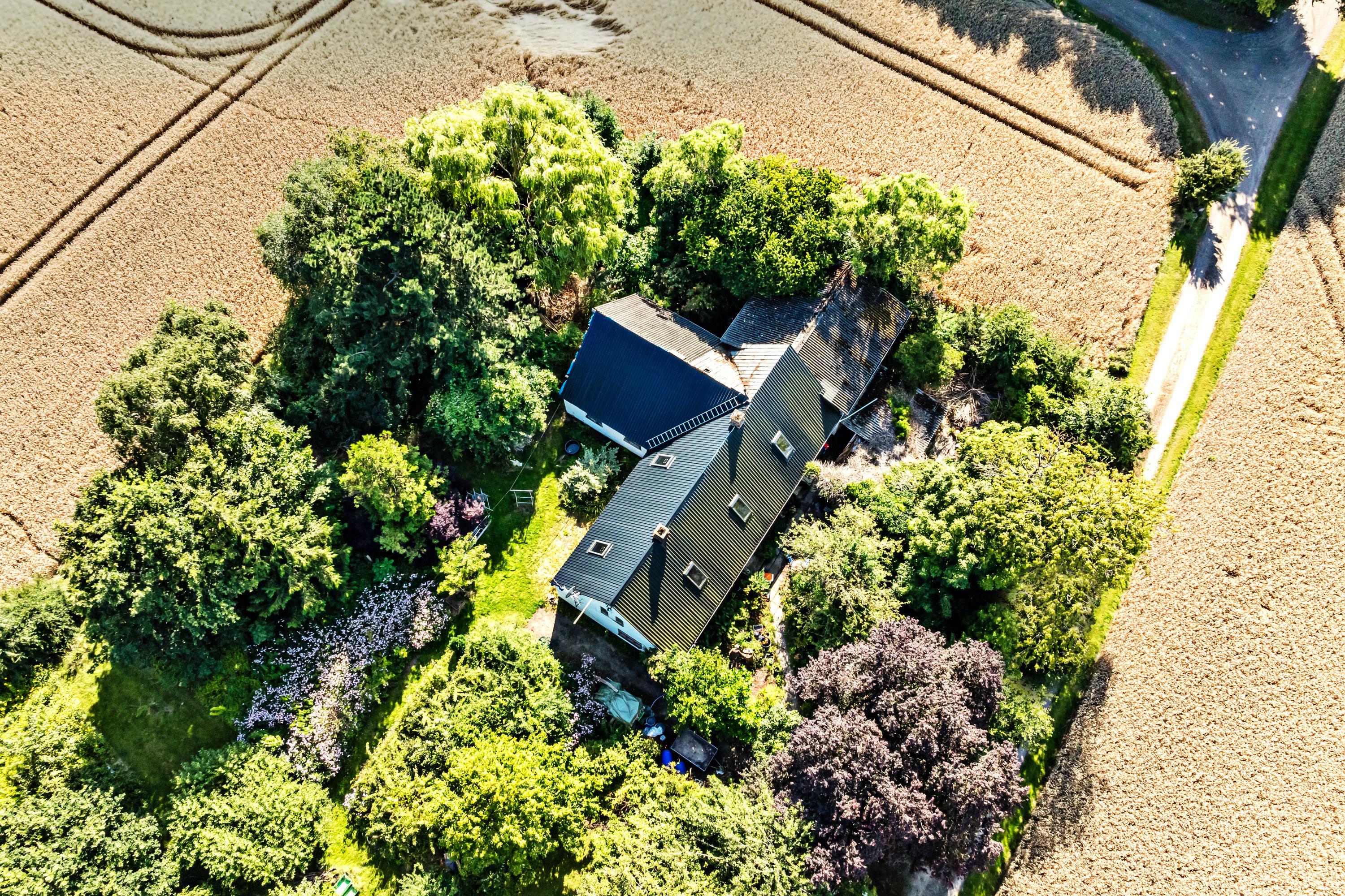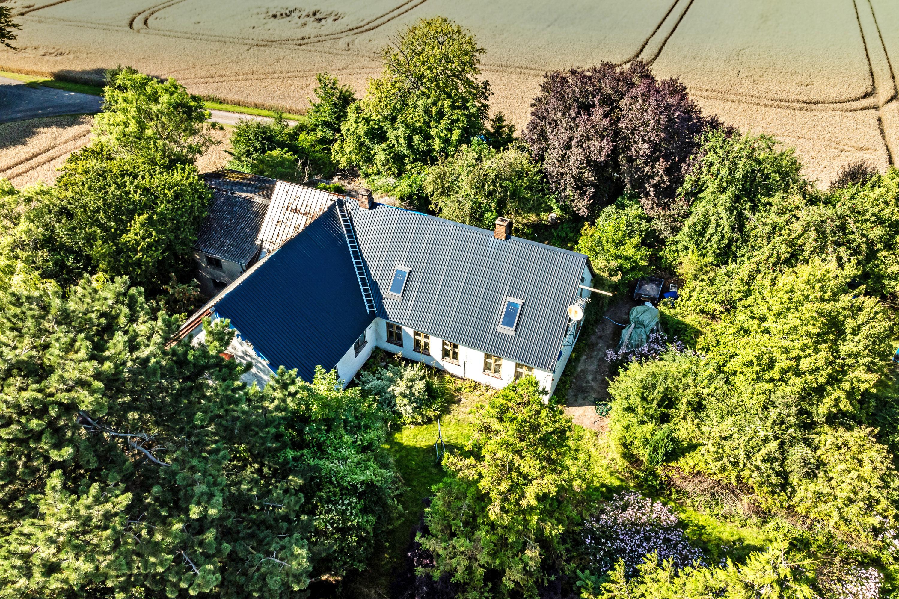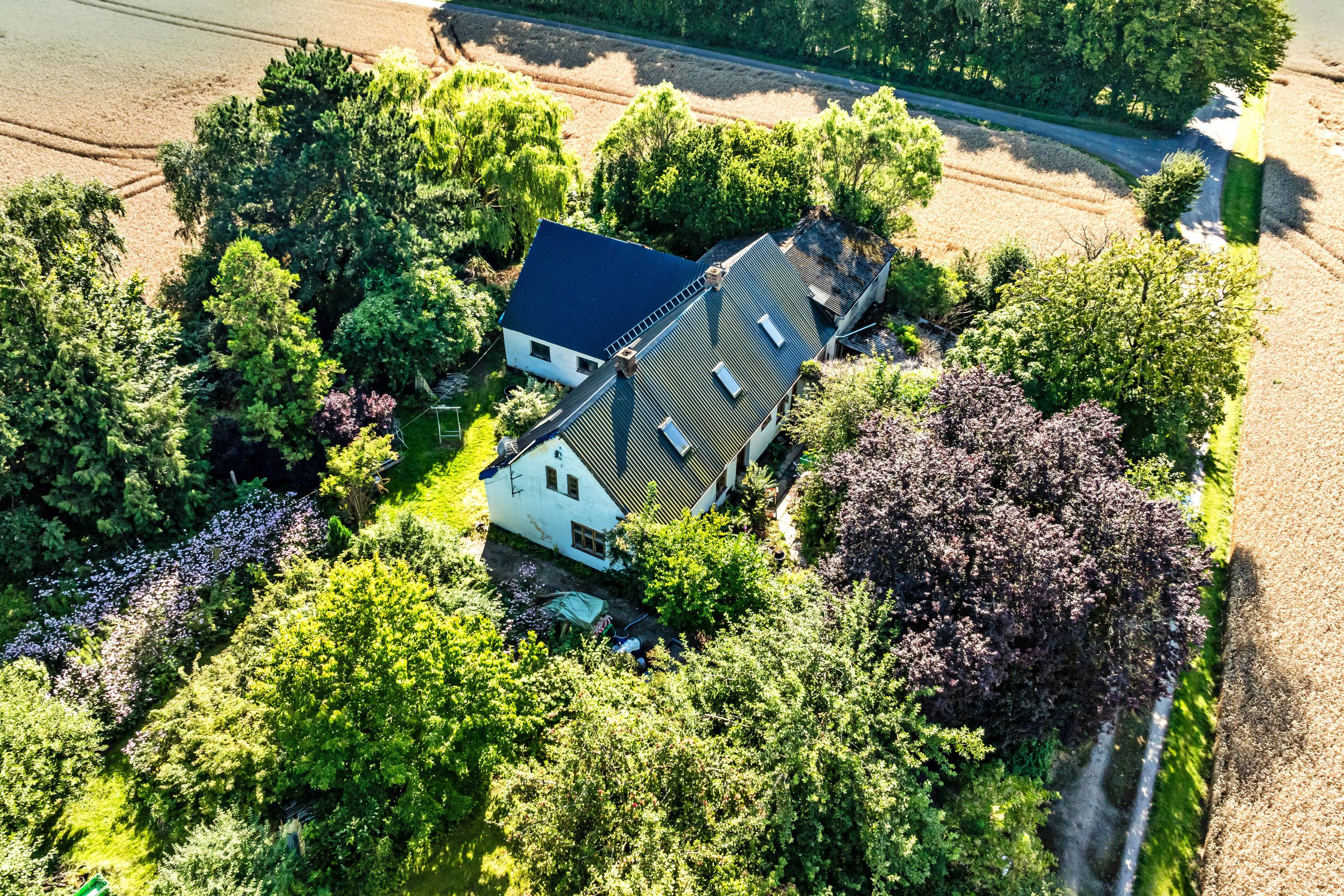For enden af lille grusvej ligger denne landejendom, som trænger til en gevaldig modernisering eller til opførelse af noget helt nyt.