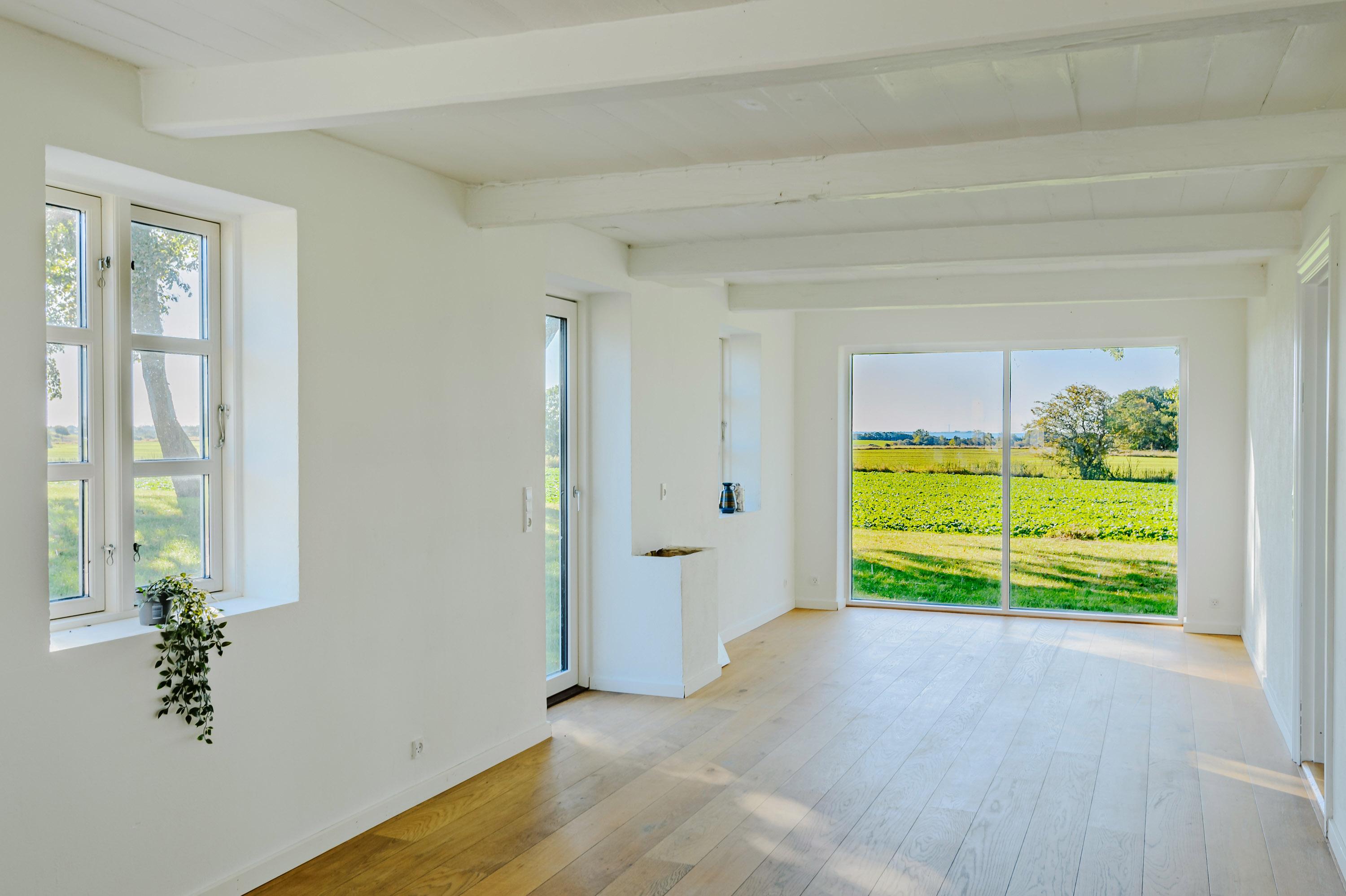 STOR FRITLIGGENDE LANDVILLA MED PLADS TIL HESTEFOLD LIGE UDEN FOR VINDUERNE - ÅBNE MARKER OG DEN SKØNNESTE UDSIGT TIL VANDET