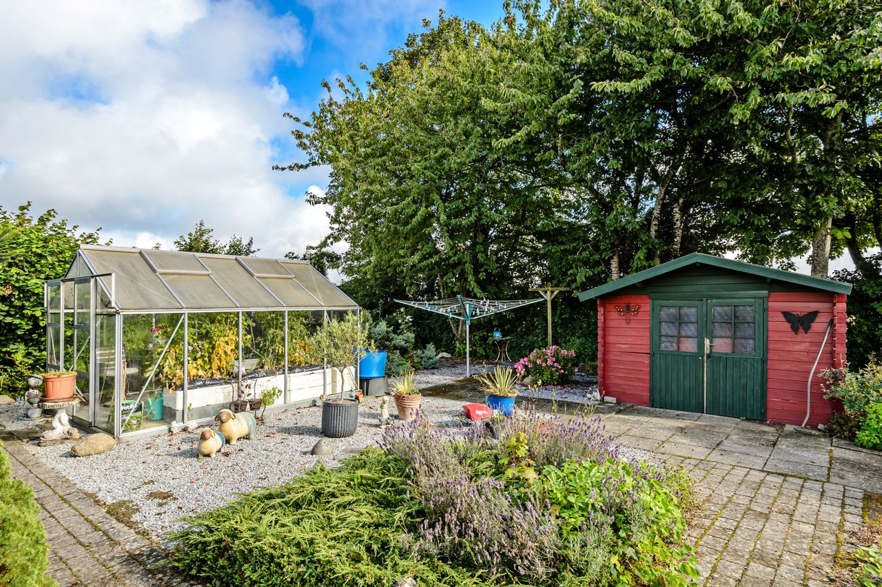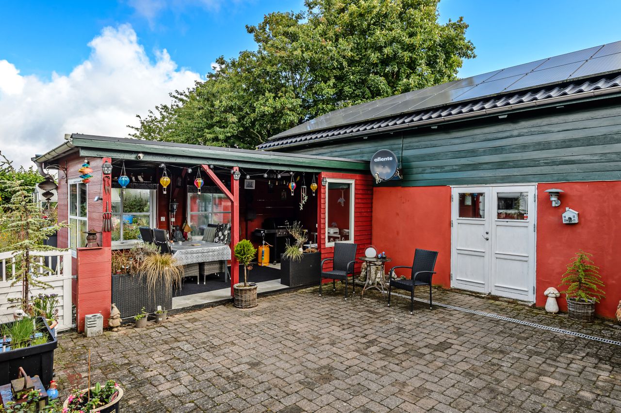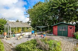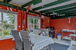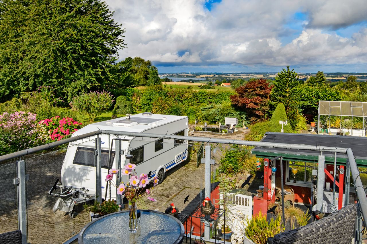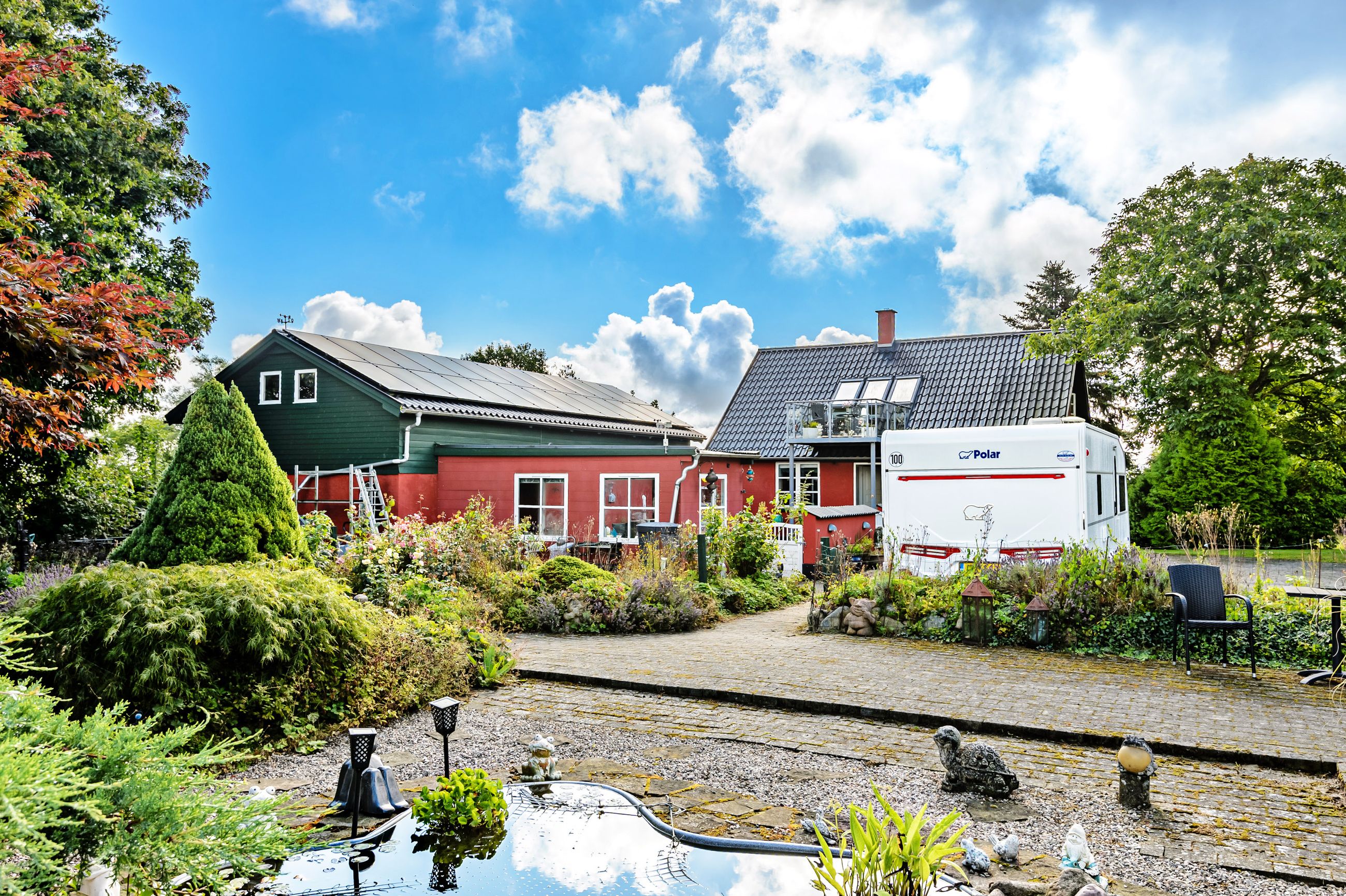 Haven ligger sydvestvendt og direkte op til åbne marker, og selve jendommen ligger tilbagetrukket fra lille vej - helt ugeneret og med kun 1 direkte nabo. Haven er fuld med blomster, buske, træer, bede, frugttræer, fiskebassin, afdeling med vilde blomster, og ved boligen er der anlagt en dejlig, charmerende gårdhave samt en overdækket, læfyldt "havestue". Ved indkørslen ligger en stor p-plads med plads til både biler, campingvogn m.m. Haven er indhegnet og meget velegnet til f.eks. hunde.