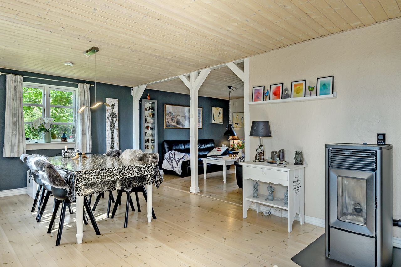 Opvarmes med varmepumpe fra 2025, pilleovn fra 2024 med varmeflytning, og så er der hjælp til elregningen med den store 6 kWh solcelleanlæg. Indlagt fibernet.