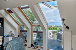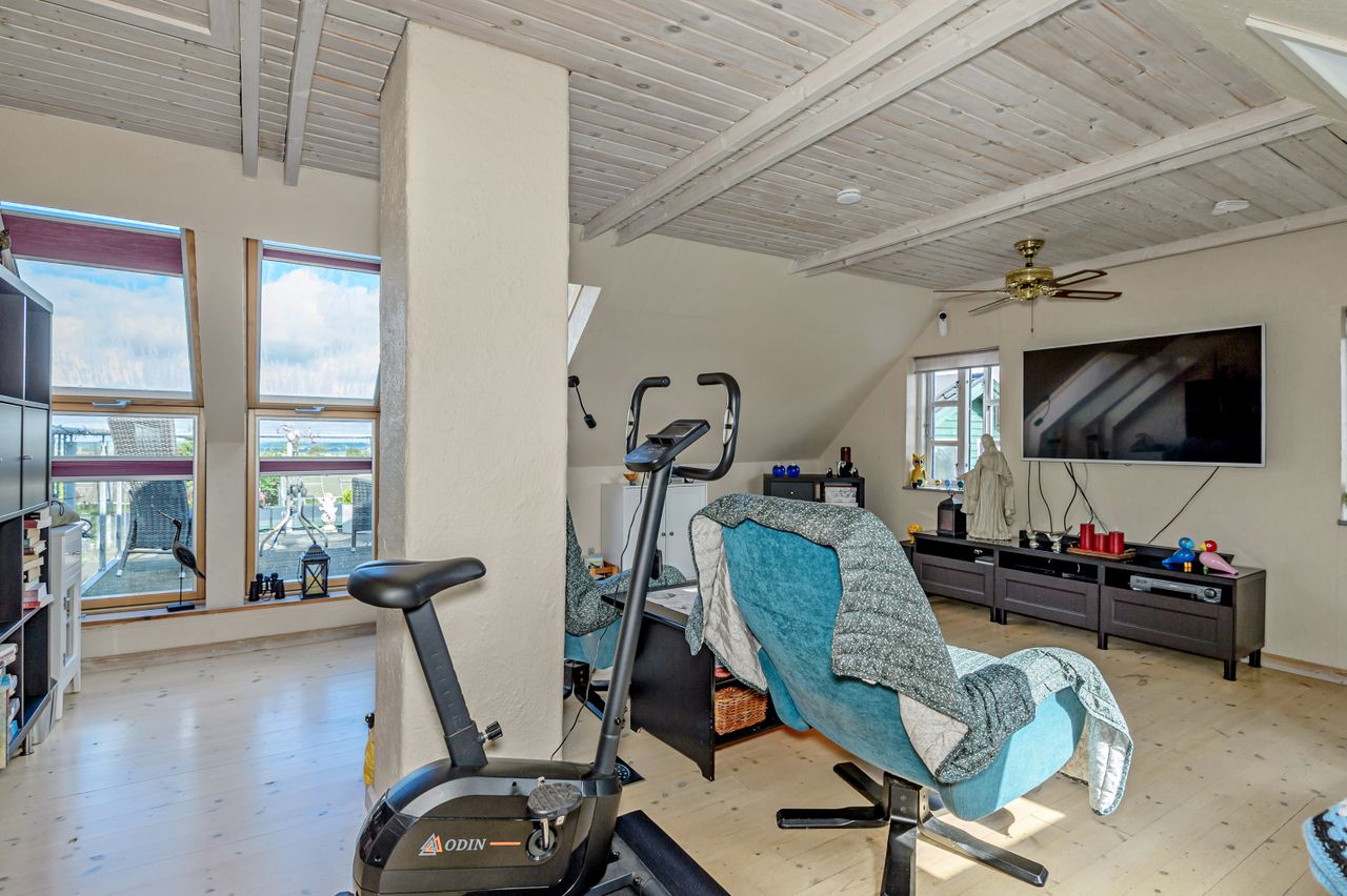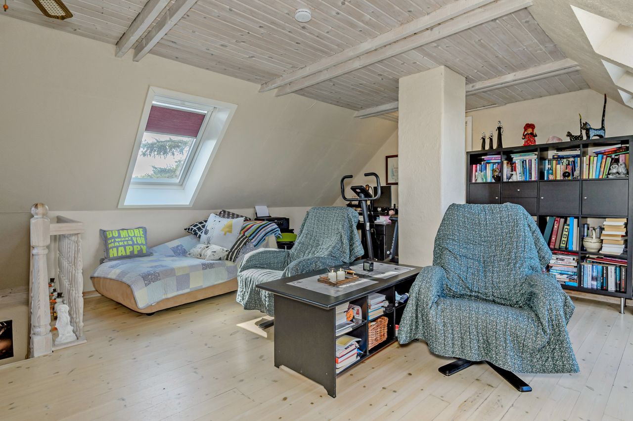 På 1.sal er der et stort soveværelse og en ekstra stue med udgang til stor altan med den smukkeste udsigt over landskabet til selve Tissø med den smukke natur. Der kan tilbringes mange vidunderlige timer på altanen, hvor naturen virkelig kan nydes.