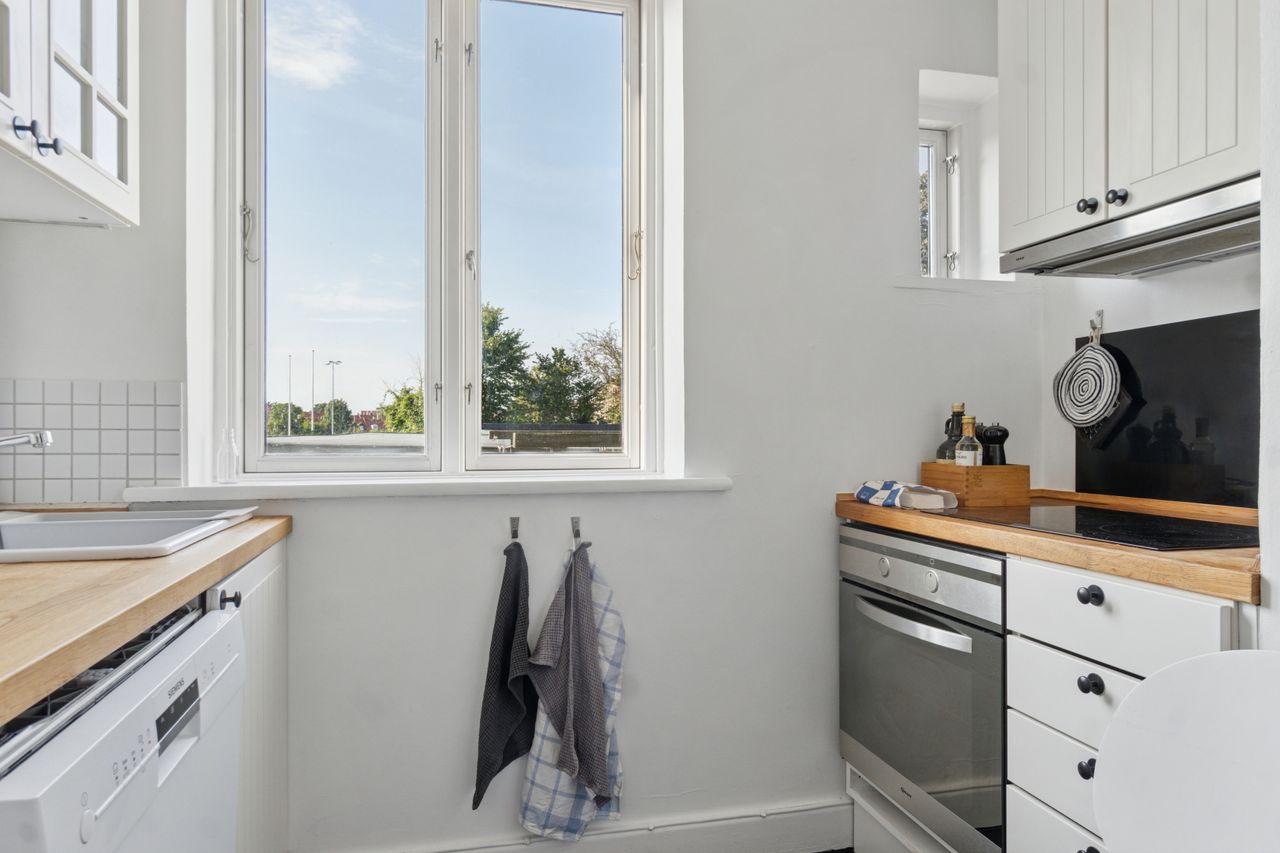 Singlen eller parret vil hurtigt finde sig tilrette på denne beliggenhed, der er tæt på alle byens glæder og praktiske faciliteter. Dermed finder du både shopping, indkøb, togstation og en flot park inden for kort gåafstand. Har du bil, og er du pendler, kan du køre til motorvejen på blot fire minutter.