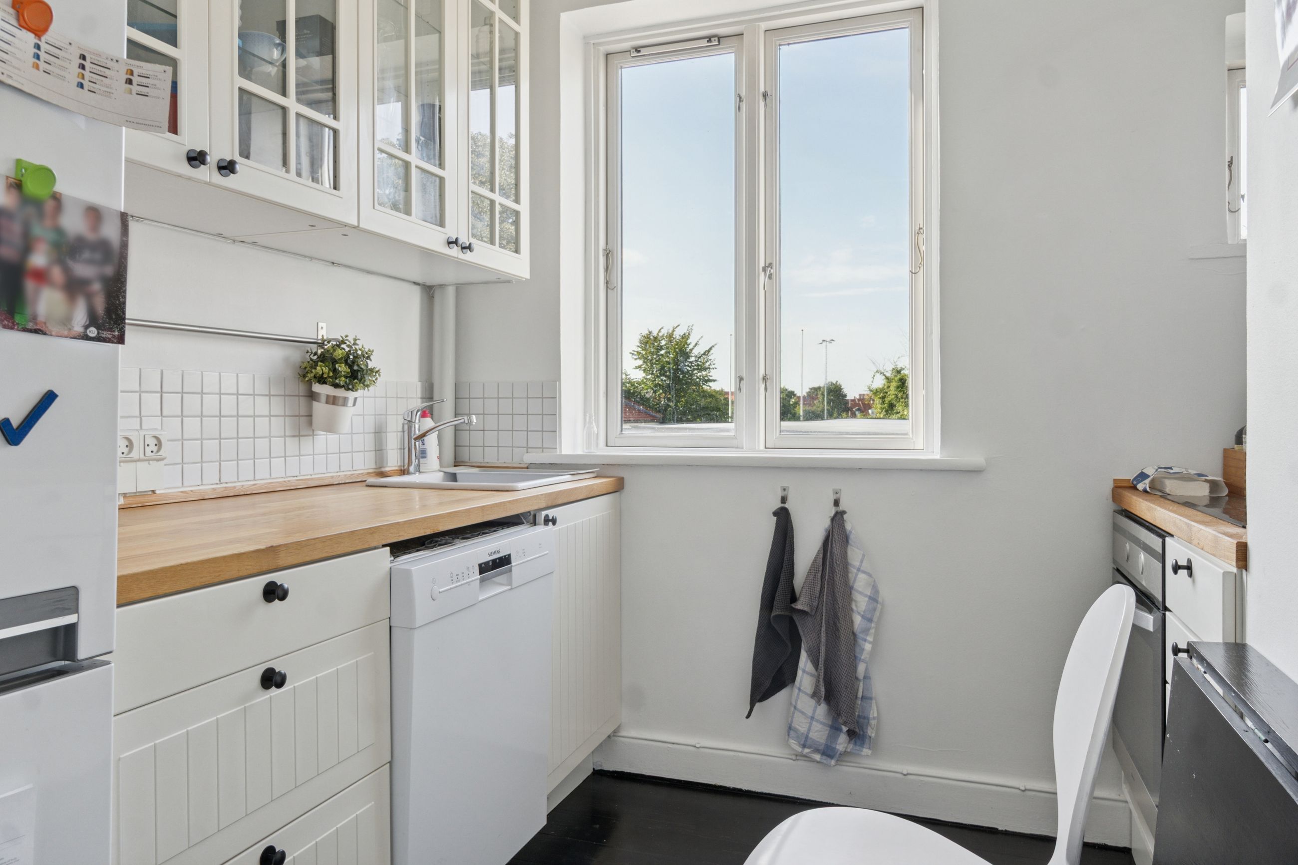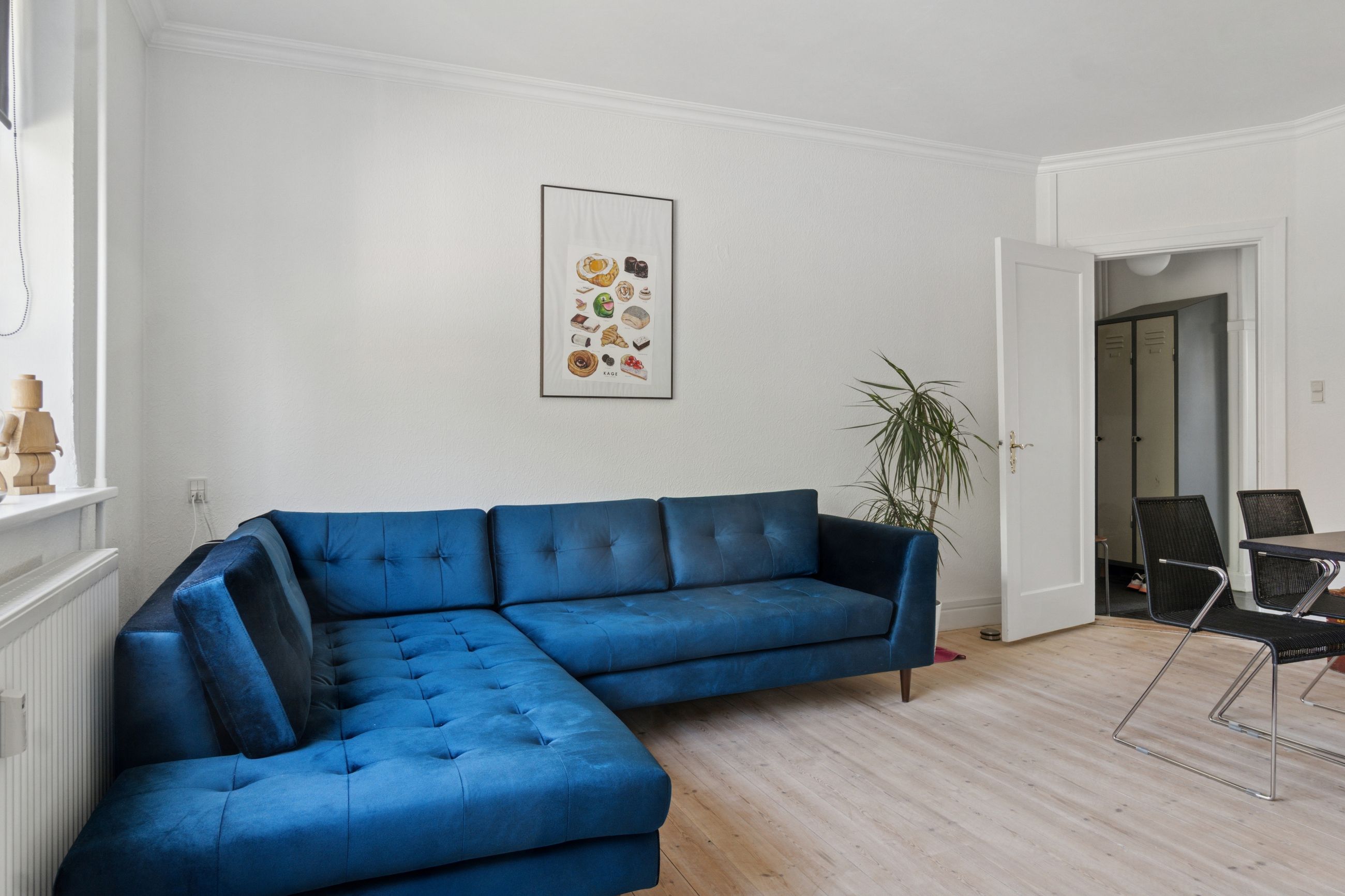 Velkommen indenfor til en lejlighed, der er blevet løbende istandsat siden 2016. Blandt andet har køkkenet, badeværelset og samtlige gulve, lofter og vægge fået en overhaling. Planløsningen byder på et pænt badeværelse, et lyst køkken samt et rummeligt værelse med et charmerende indhak forenden, som er oplagt at bruge til opbevaring eller hyggekrog. I stuen kan du se frem til at indrette dig med sofagruppe og spisebord og nyde lyset, der får lov at strømme ind gennem det store vindue. Til lejligheden hører også et privat kælderrum og loftsrum.