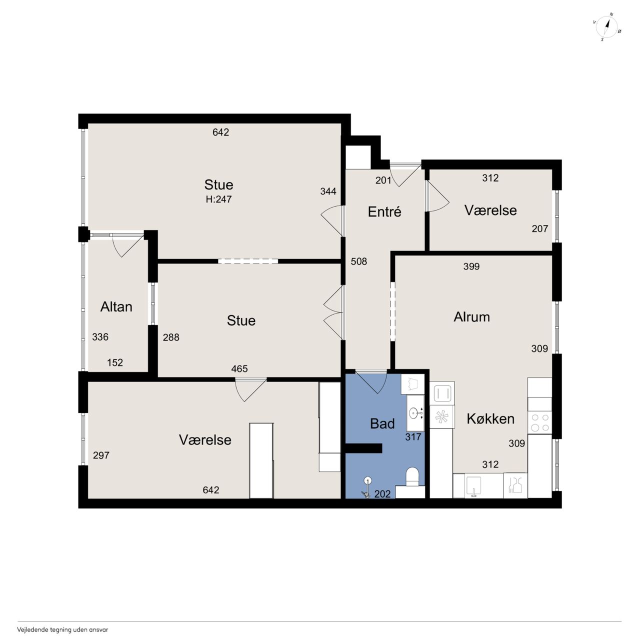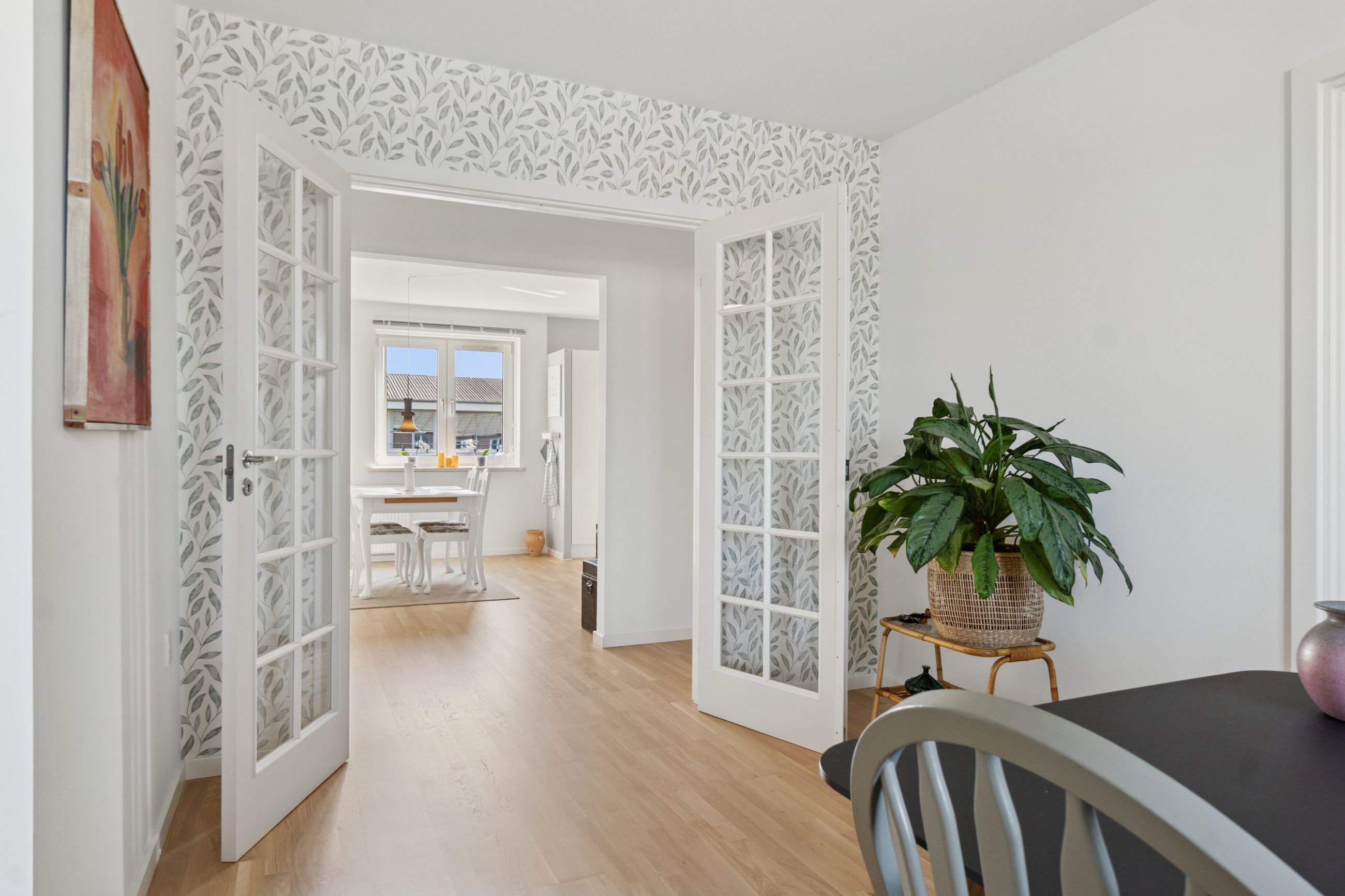 Fra stuen er der udgang til en lukket altan, og udover stuen består lejligheden af to værelser, som ligger i hver deres ende. Dermed er der masser af forskellige indretningsmuligheder i boligen, som har en veldisponeret planløsning, der fuldendes af et badeværelse.