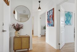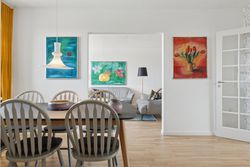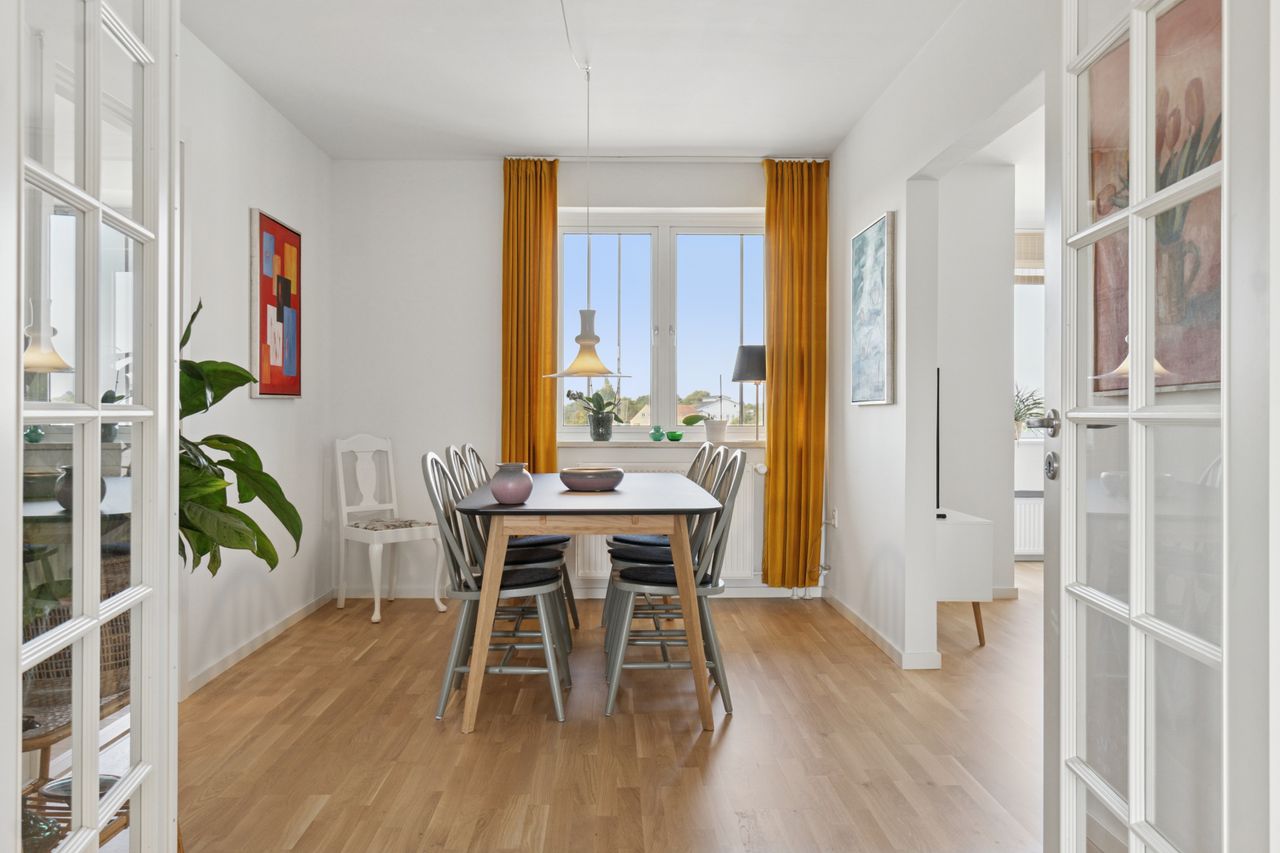 I 2024 blev der lagt nyt egetræsparketgulv i stuen, entréen og køkken-alrummet, og det har bidraget til et gennemført udtryk i hjemmet.