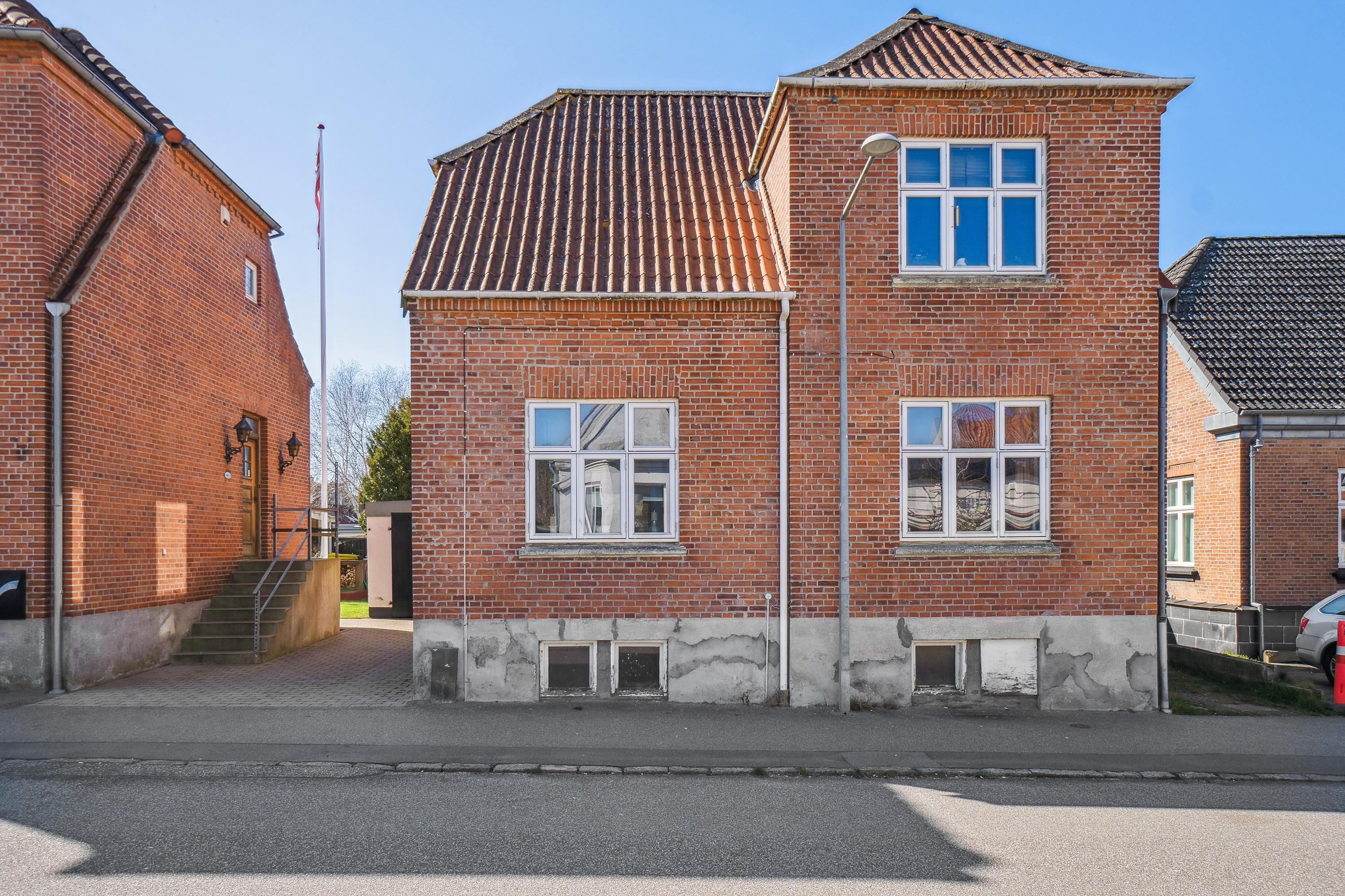 Ejendommen, som er en rødstensvilla med eternittag, fremtræder udvendigt i god og fornuftig stand. Ejendommen opvarmes med fjernvarme, og har en lille indgangsvej langs gavlen samt lille have, som er