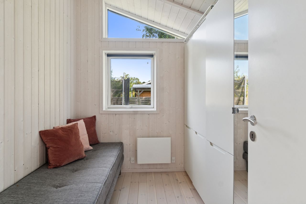 Tilbagetrukket for enden af en stille, lukket vej lige i nærheden af Næsby Strand finder du dette moderne og charmerende sommerhus, som forener klassisk sommerhusstemning med komfort. Her er du omgivet af naturskønne omgivelser ud til Storebælt, mens ishuset ligger lige på den anden side af vejen. Den gode badestrand er kun 200 meter væk, hvilket er perfekt til solrige stranddage og lange gåture i vandkanten.