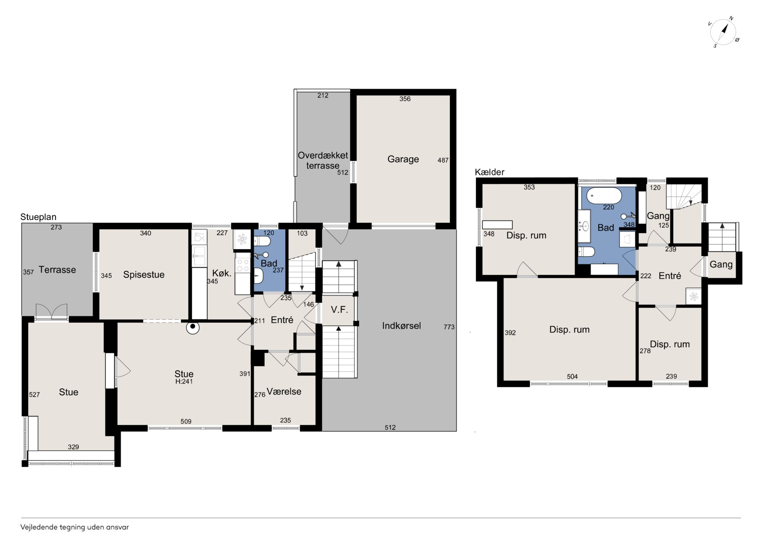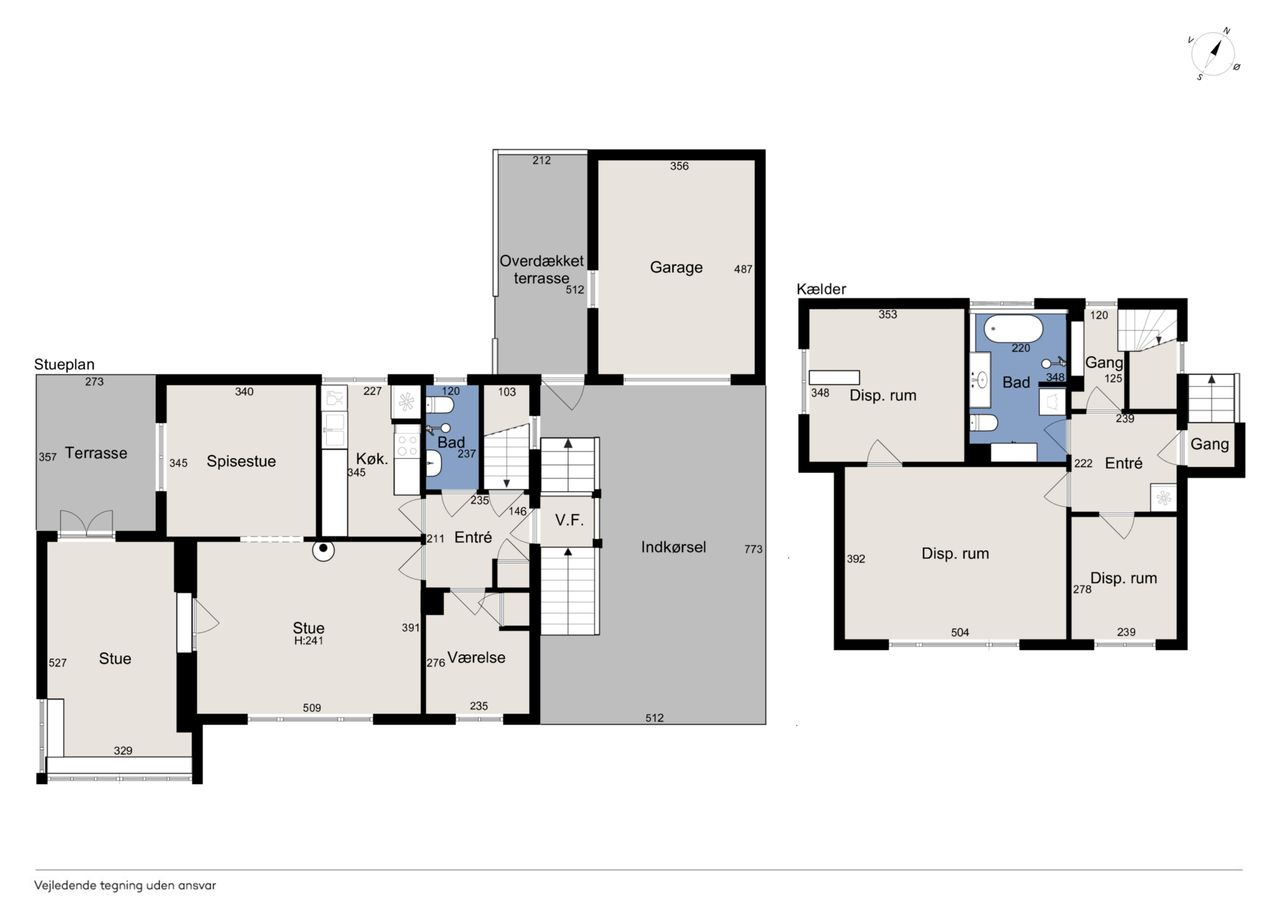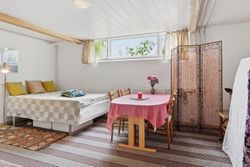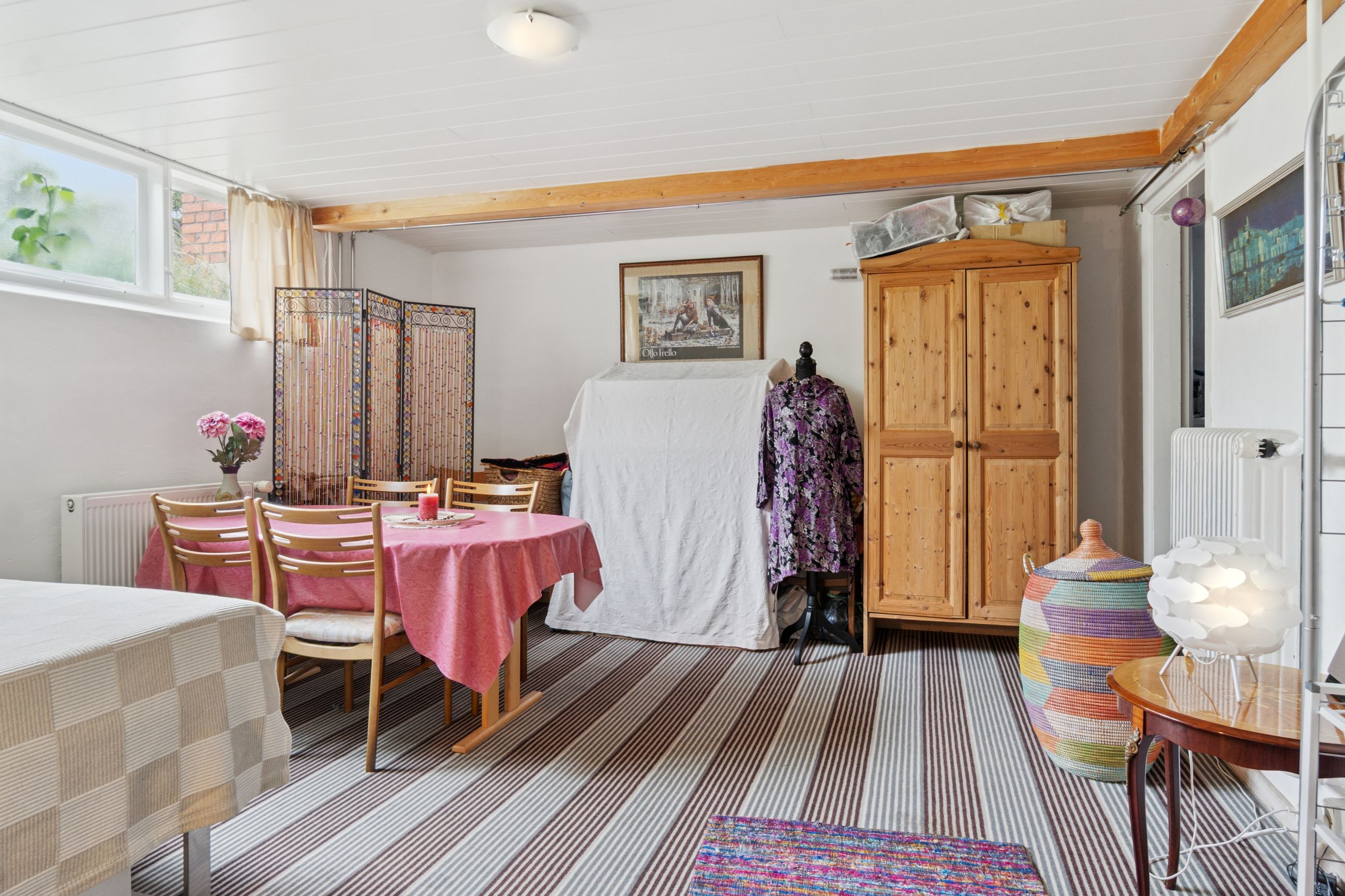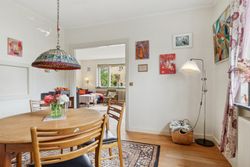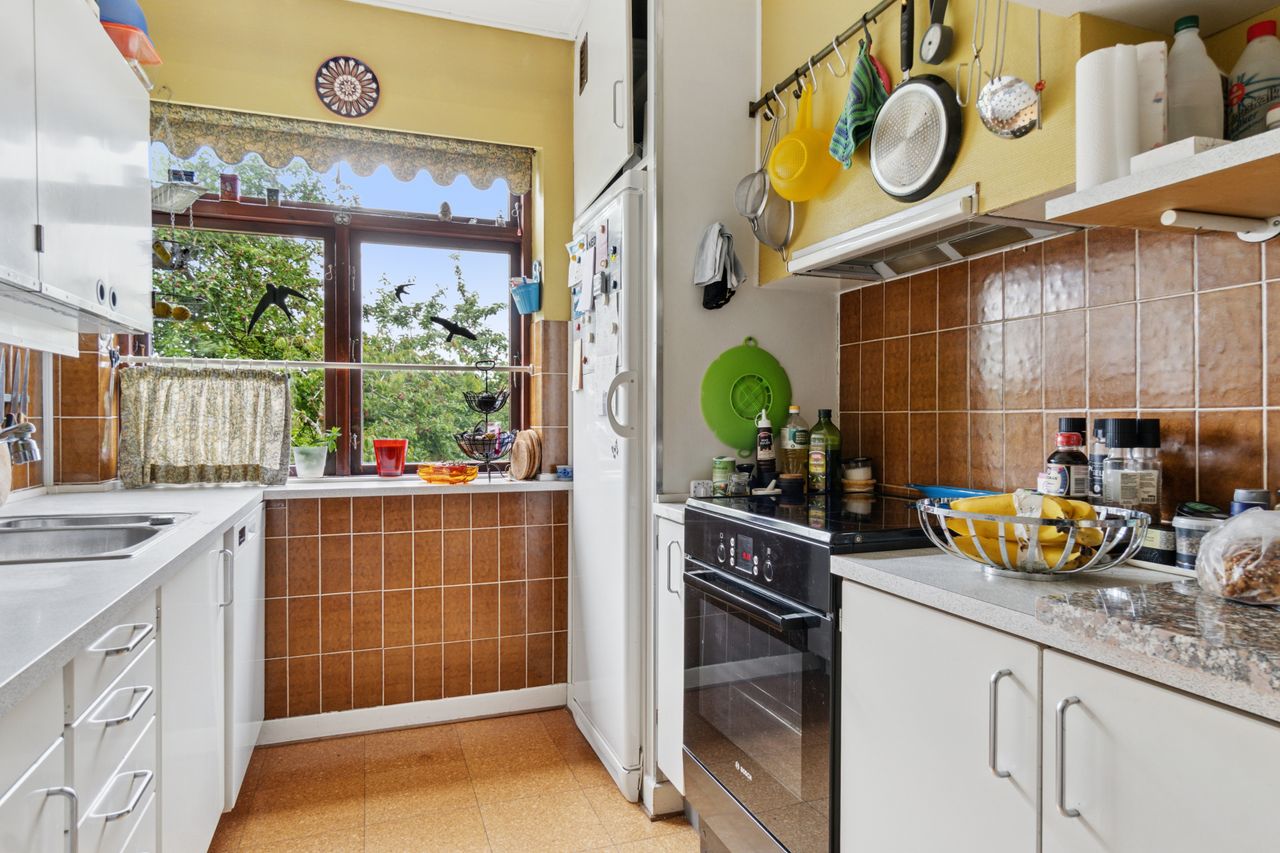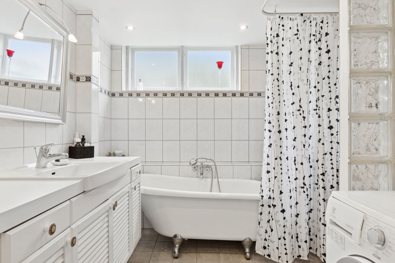 Indenfor leder entréen til køkkenet, som er funktionelt, mens I også kan se frem til to stuer og en spisestue. Den ene stue har desuden en hyggelig og stemningsskabende brændeovn, som I kan tænde op i på de sene aftentimer. Stueplan afrundes af et værelse og et badeværelse med gulvarme, før I kan tage turen ned i den yderst gode kælder. Hernede har I endnu et badeværelse med badekar og gulvarme, mens der også er tre disponible rum, som kan anvendes og indrettes helt efter behov. Alle rum i kælderen har en god lofthøjde og der er desuden udgang til husets udeareal.