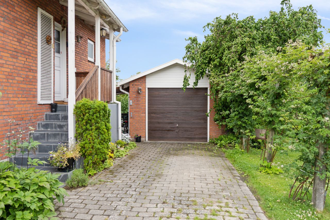 Foran boligen er der plads til at parkere bilen, ligesom der også er en garage. Boligen har fjernvarme som sikre en billig og stabil varme året rundt.