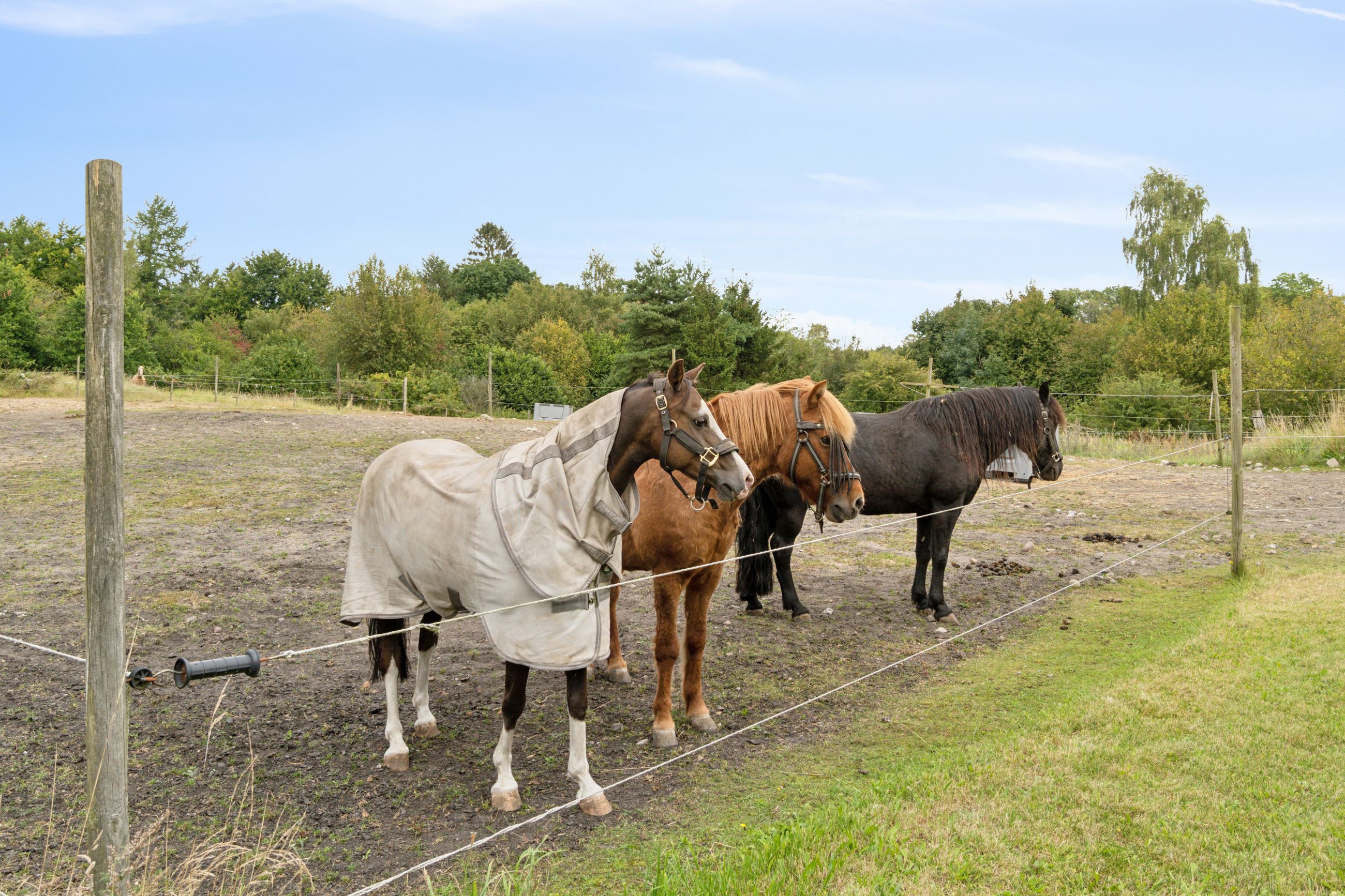 Flere slags dyrehold kan drives på den store grund, og allerede fra første færd er der sørget godt for hestene. Ni hestebokse, egen ridebane og gode folde i varierende størrelser venter alt sammen på jer, der elsker dyr og det aktive udeliv. Og apropos udeliv – der er naturligvis også anlagt hyggelige siddekroge og gode græsarealer til afslapning i solen, ligesom I stadig har til gode at slentre en tur gennem den gamle æbleplantage.