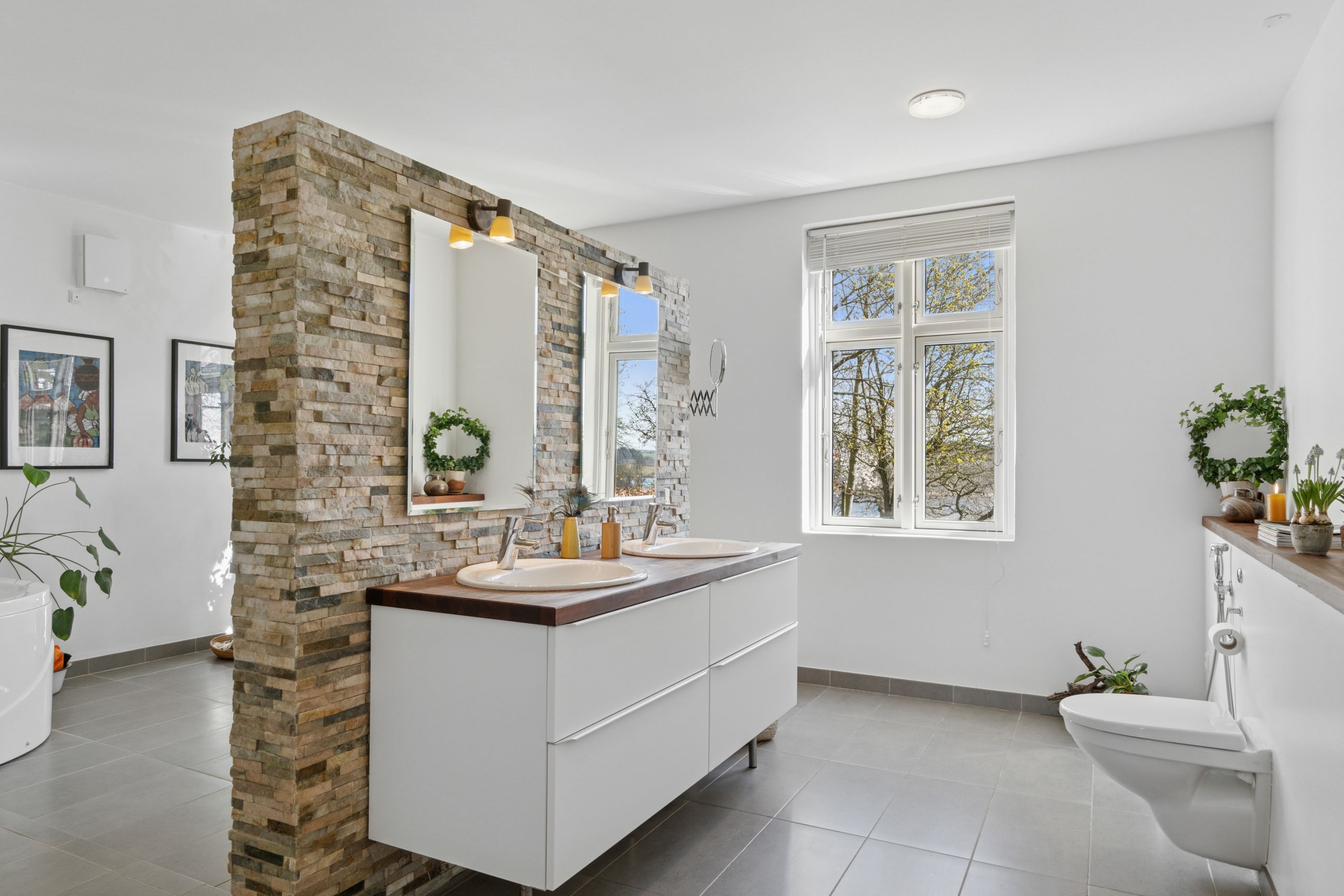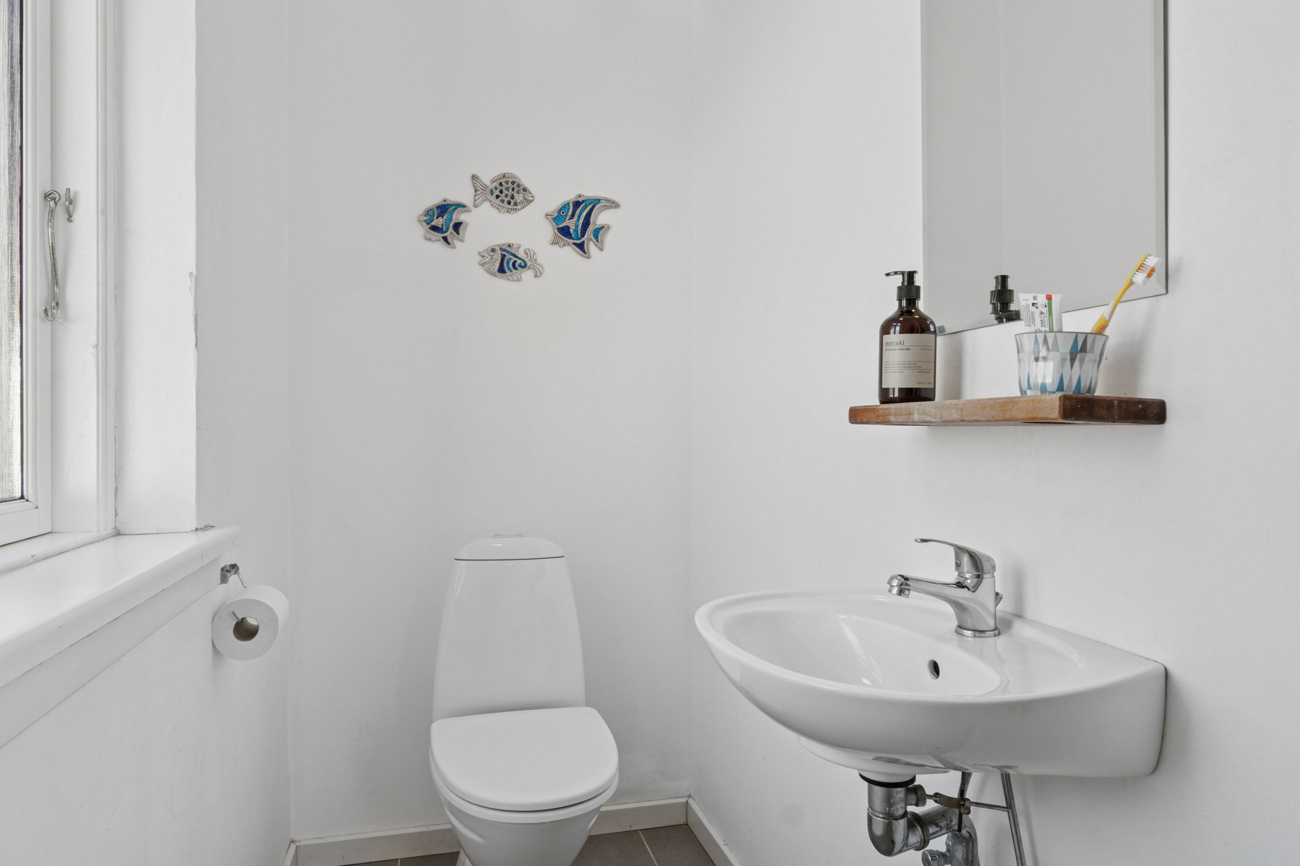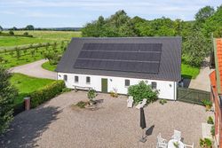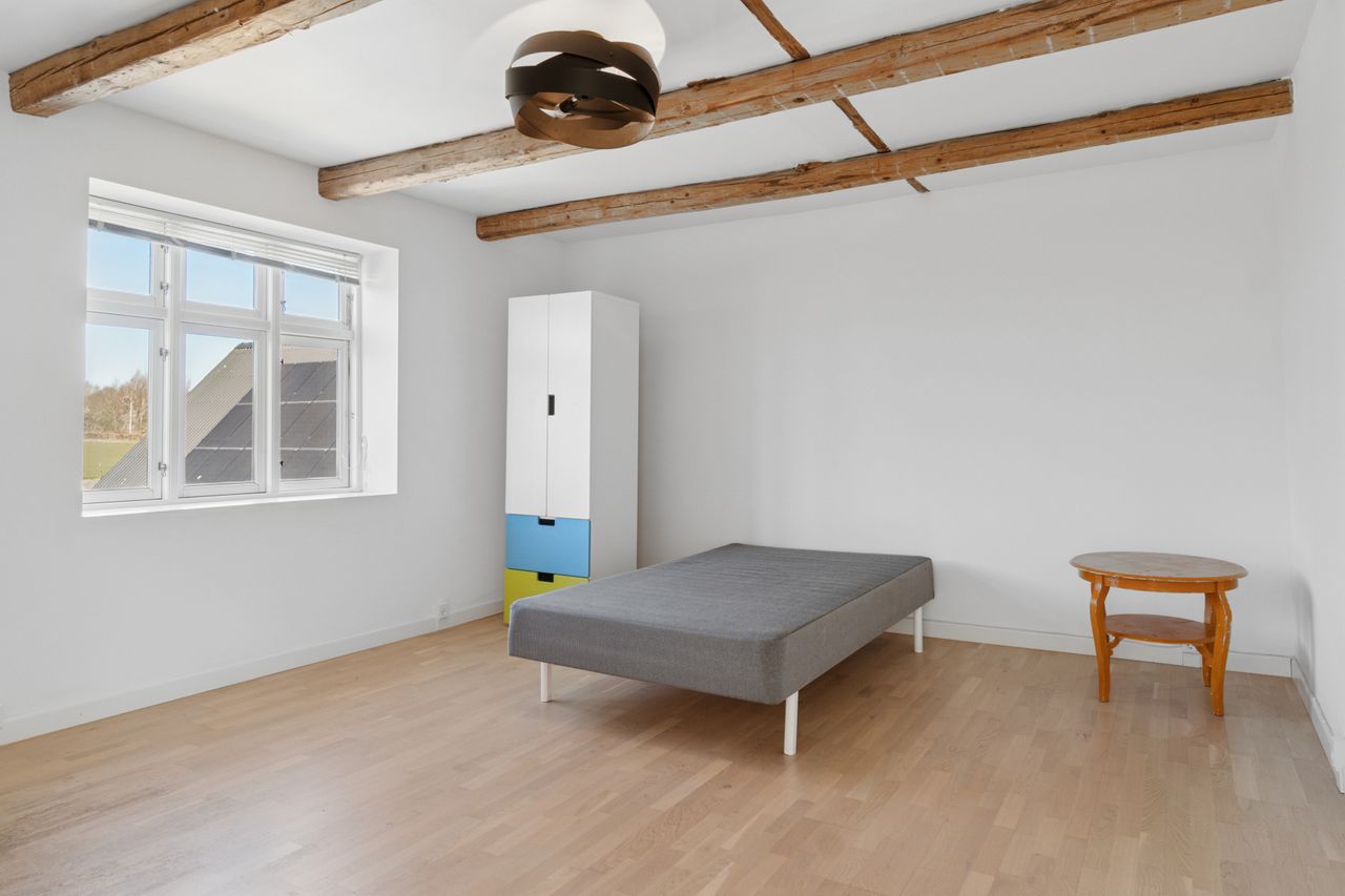 Stuehuset præsenterer sig med et klassisk udtryk. Den røde murstensfacade ledsages af et rødt tegltag og hvide vinduer, og inden døre er det for alvor tydeligt, at huset blev gennemistandsat i 2013/2014. I stueplan er hjemmet centreret omkring det anseelige opholdsrum med stue og køkken i et, mens I også råder over et værelse, et bryggers og et luksuriøst badeværelse. Førstesalen består af en stilren repos med store vinduespartier, tre værelser og et badeværelse. Alt i alt får I 255 kvadratmeter bolig.
