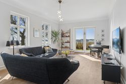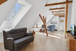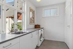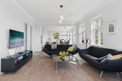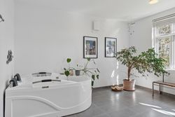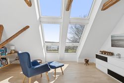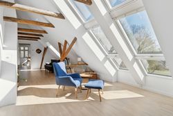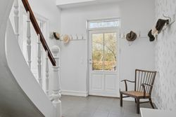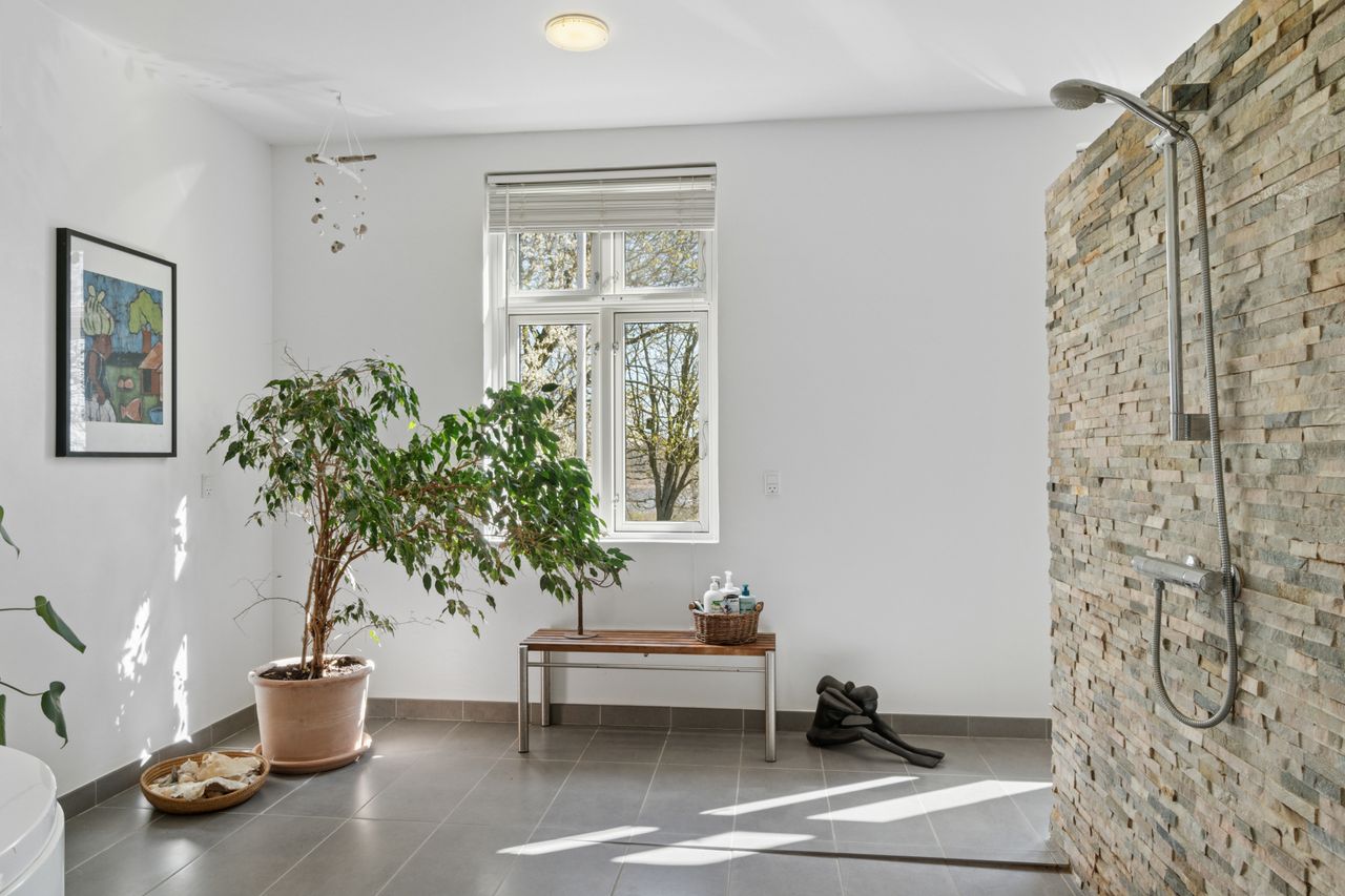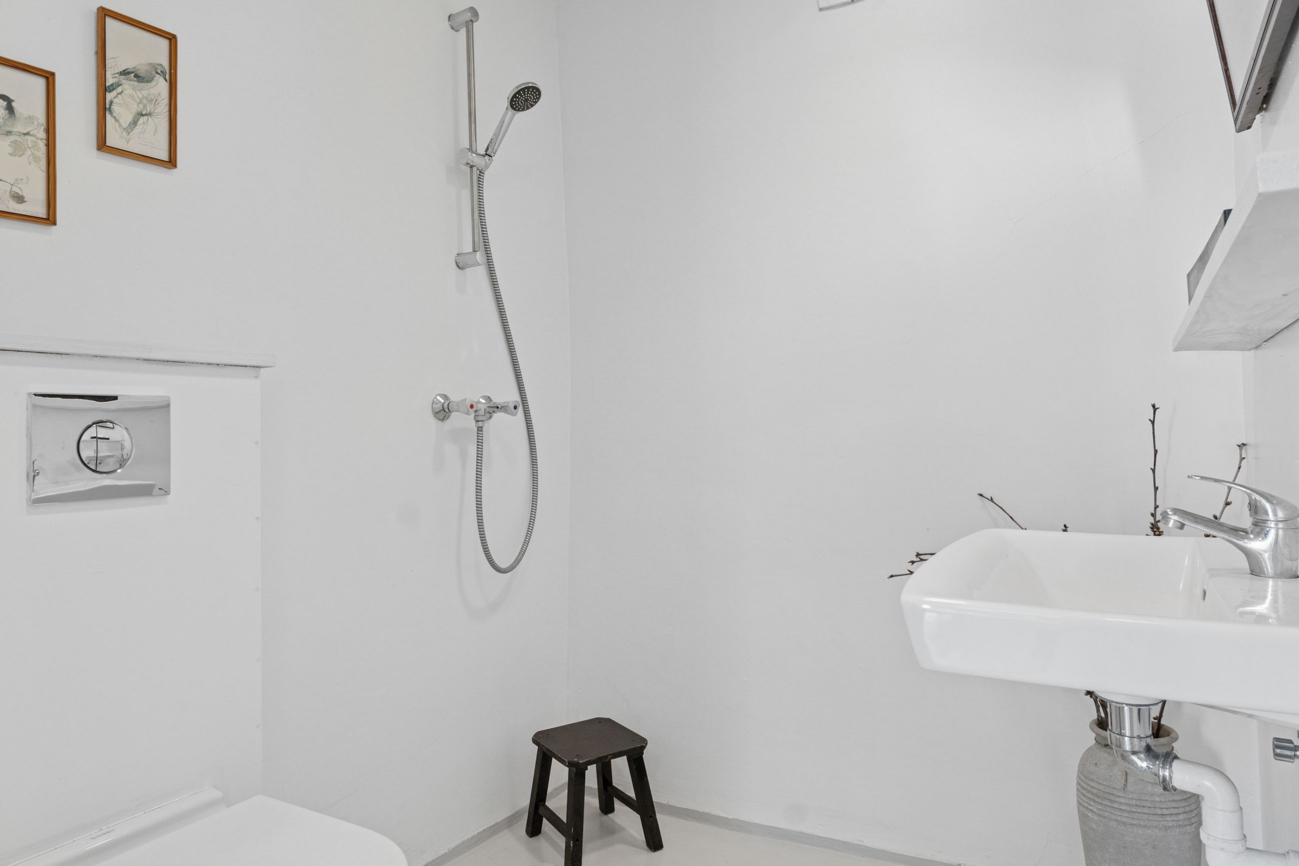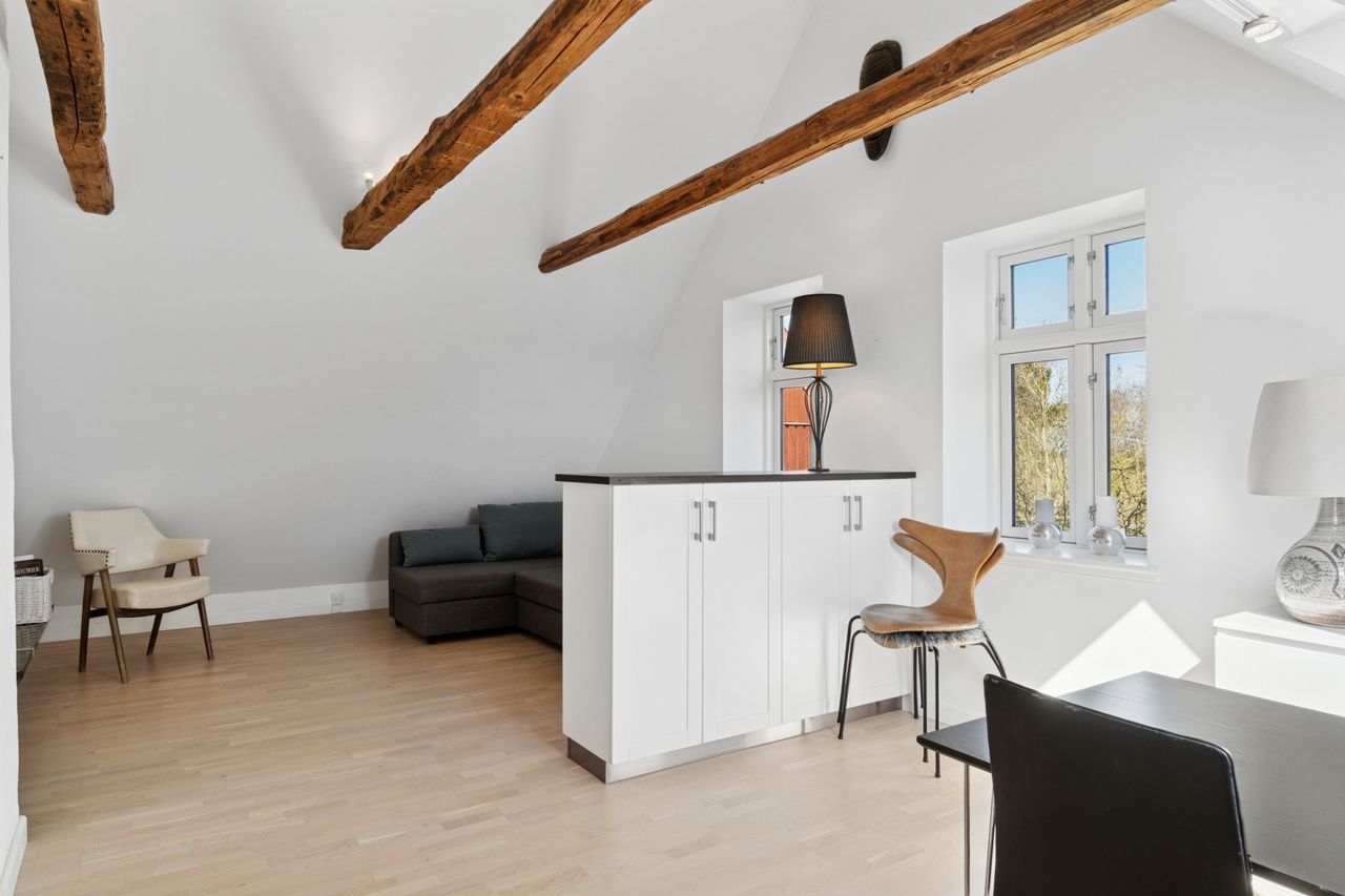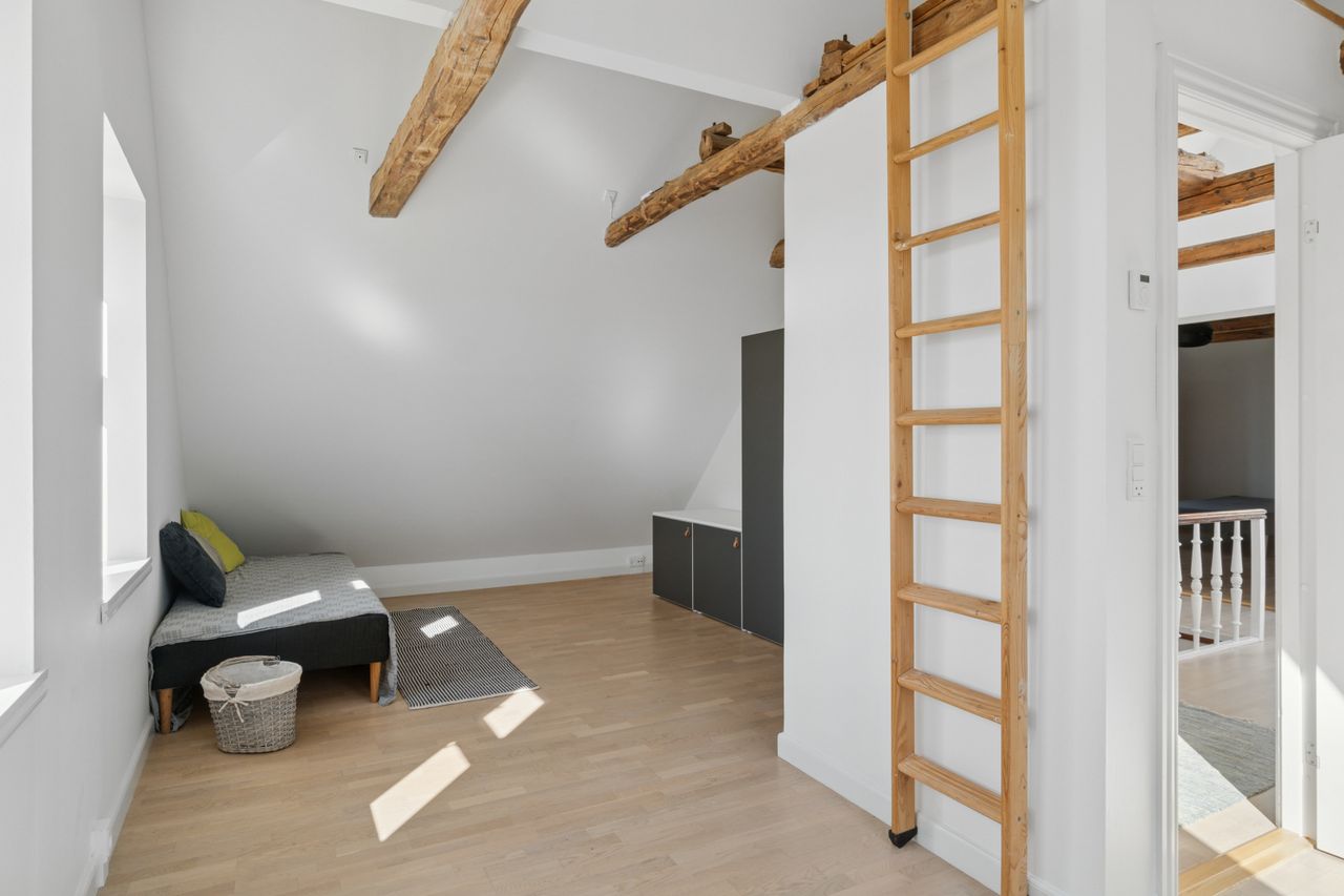 Stuehuset præsenterer sig med et klassisk udtryk. Den røde murstensfacade ledsages af et rødt tegltag og hvide vinduer, og inden døre er det for alvor tydeligt, at huset blev gennemistandsat i 2013/2014. I stueplan er hjemmet centreret omkring det anseelige opholdsrum med stue og køkken i et, mens I også råder over et værelse, et bryggers og et luksuriøst badeværelse. Førstesalen består af en stilren repos med store vinduespartier, tre værelser og et badeværelse. Alt i alt får I 255 kvadratmeter bolig.