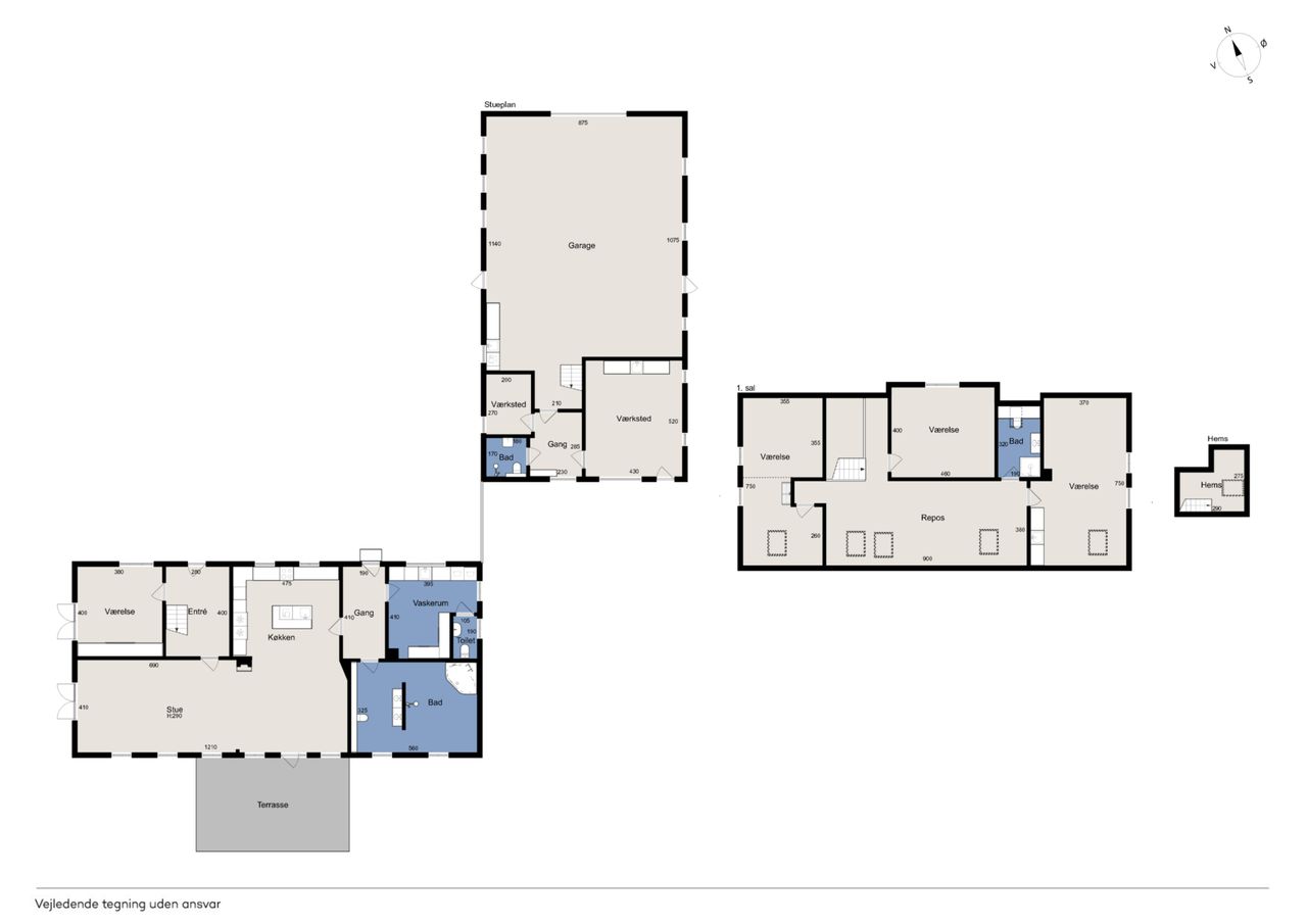 Udbygningerne er ligesom stuehuset sat godt i stand. Der er et maskinhus og et stort værksted/garage med mulighed for gårdbutik og med solceller på taget, der understøtter en mængde energimæssige tiltag såsom energibank og jordvarme.