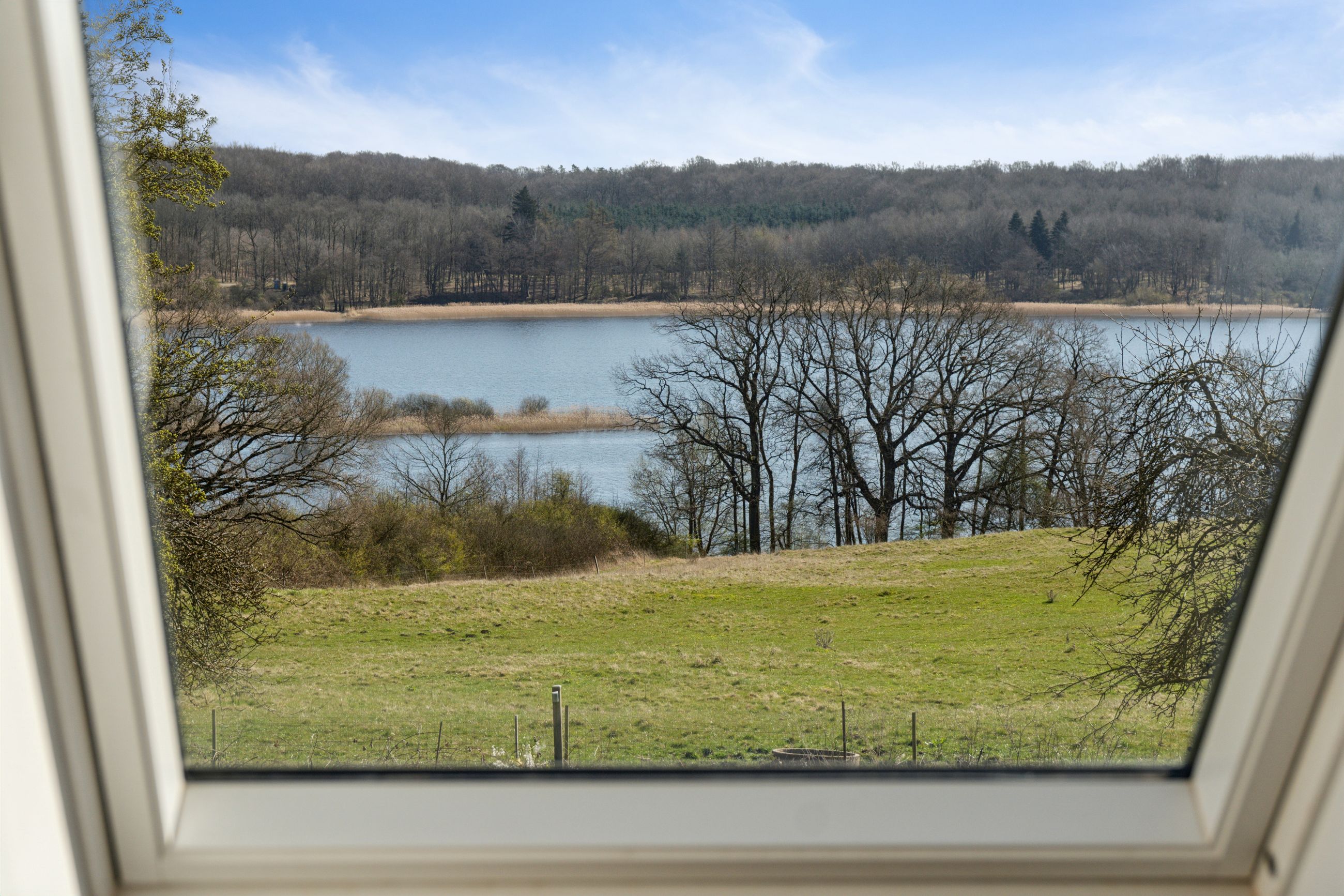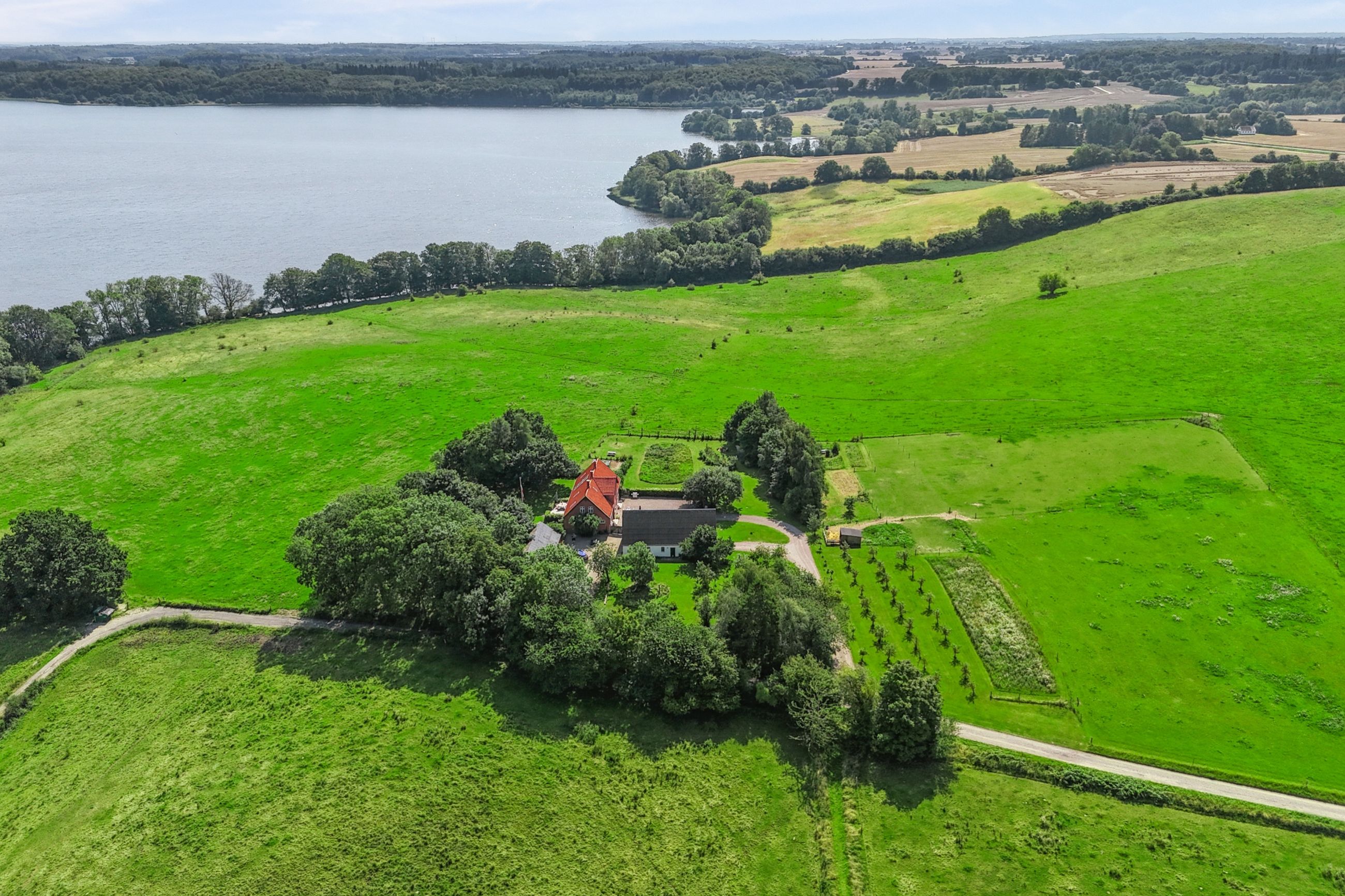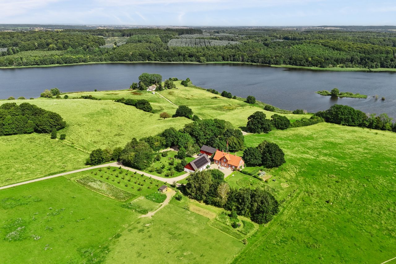 Det er en helt unik beliggenhed, det drejer sig om. Landskabet er skabt af den seneste istid, og omgivelserne er helt og aldeles fredelige. Der er direkte adgang til søen, hvor der er potentiale for alskens udelivsaktiviteter, hvad der også er tilfældet i de store skove, som ligger omkring søen. På grundens 17.000 kvadratmeter er der et rigt potentiale for dyrehold. Alt, hvad I skal bruge i dagligdagen, finder I i Fuglebjerg eller I Sorø, hvor I kan komme til med bil på ca. 15 minutter.