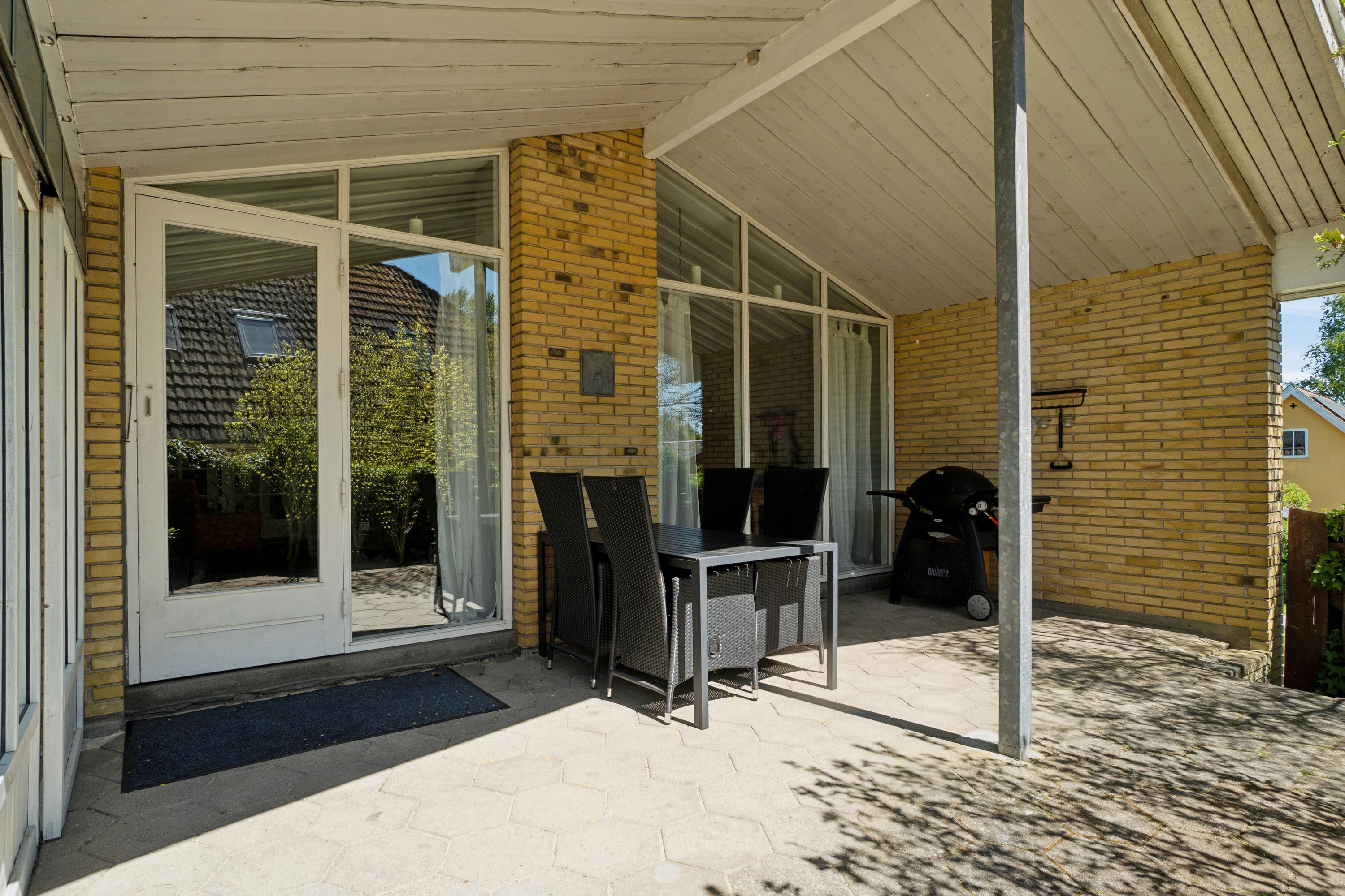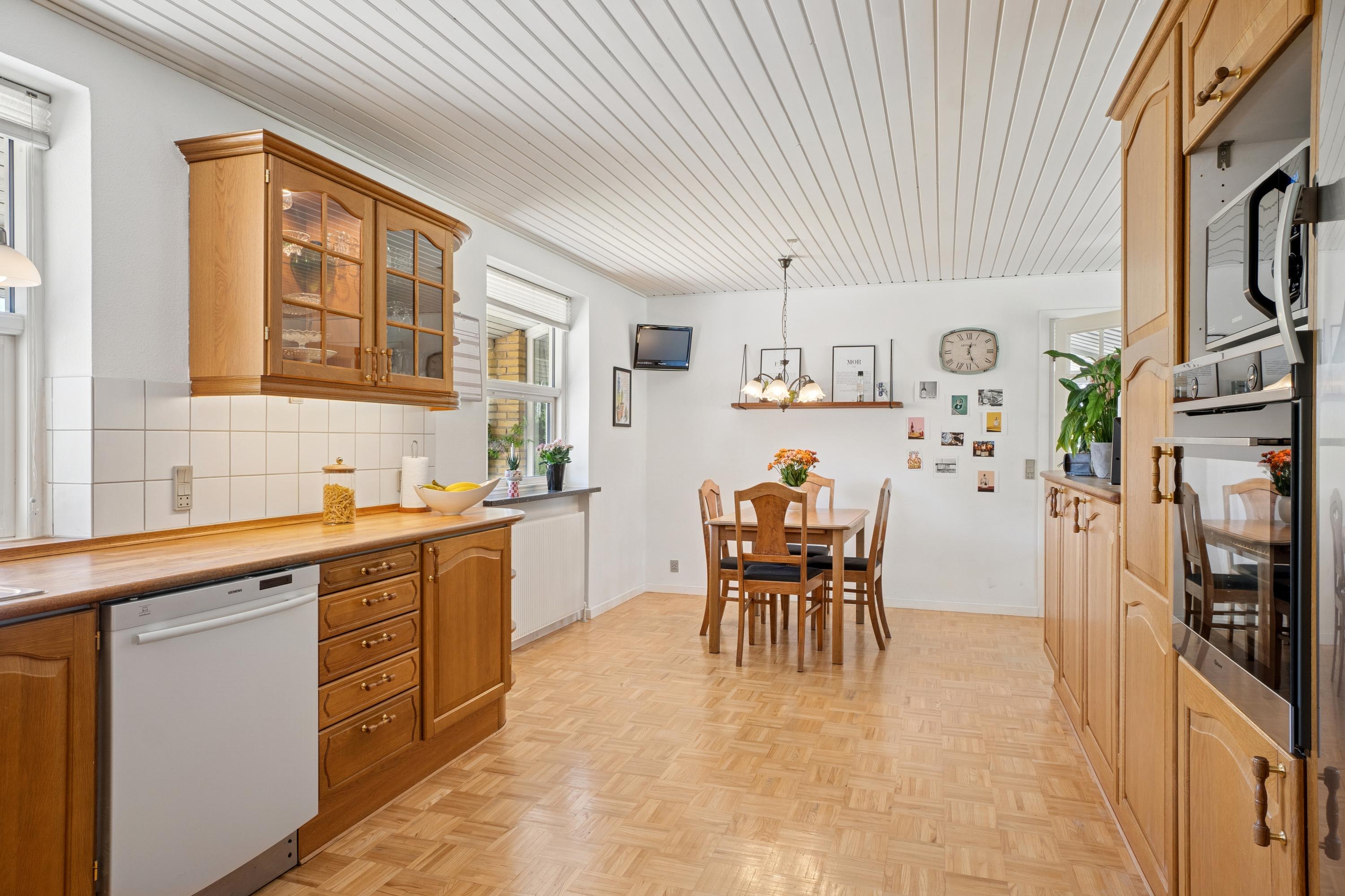 På en stille lukket vej i et fredeligt kvarter udbydes denne dejlige gulstensvilla opført i brændte mursten.