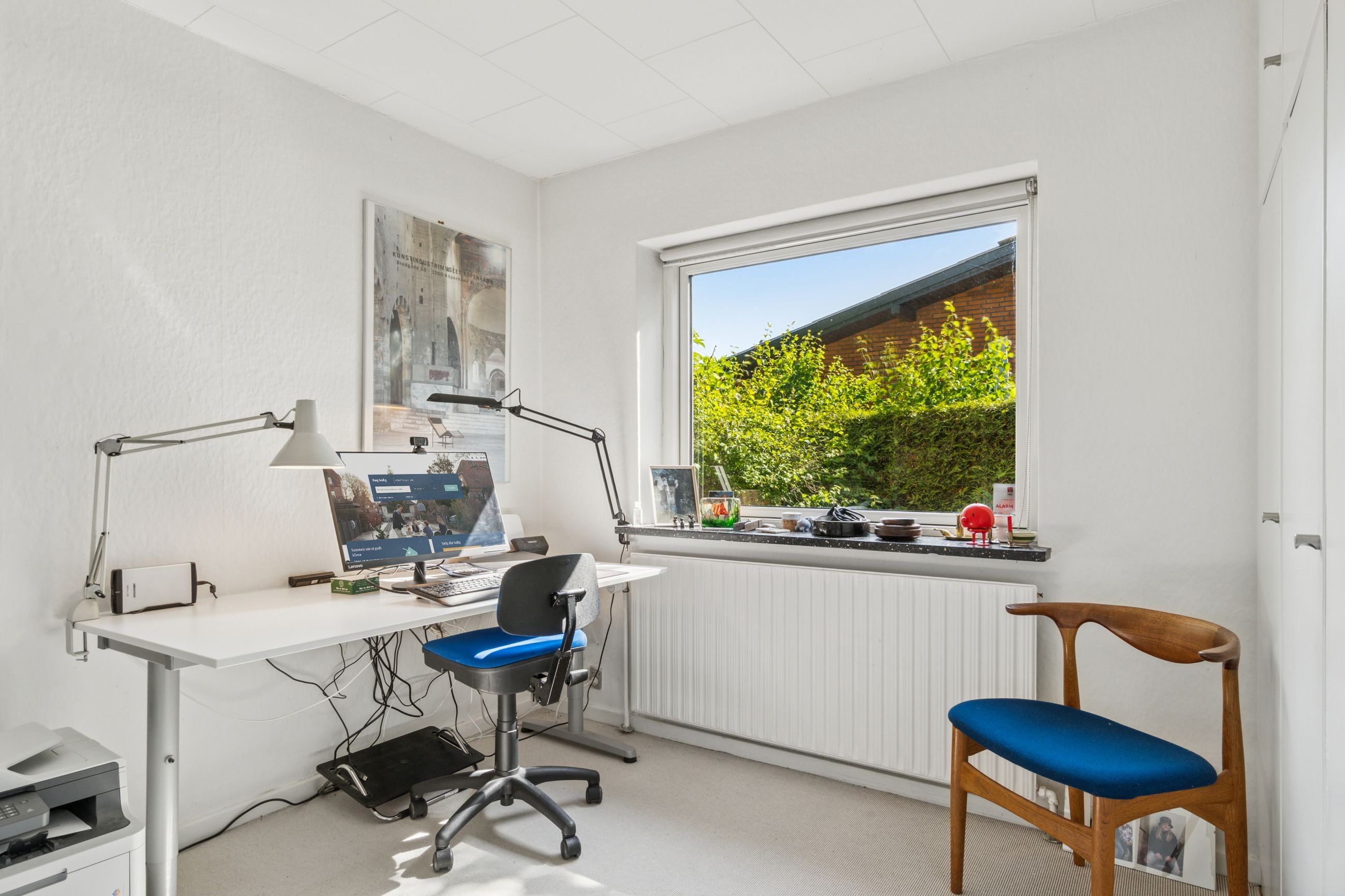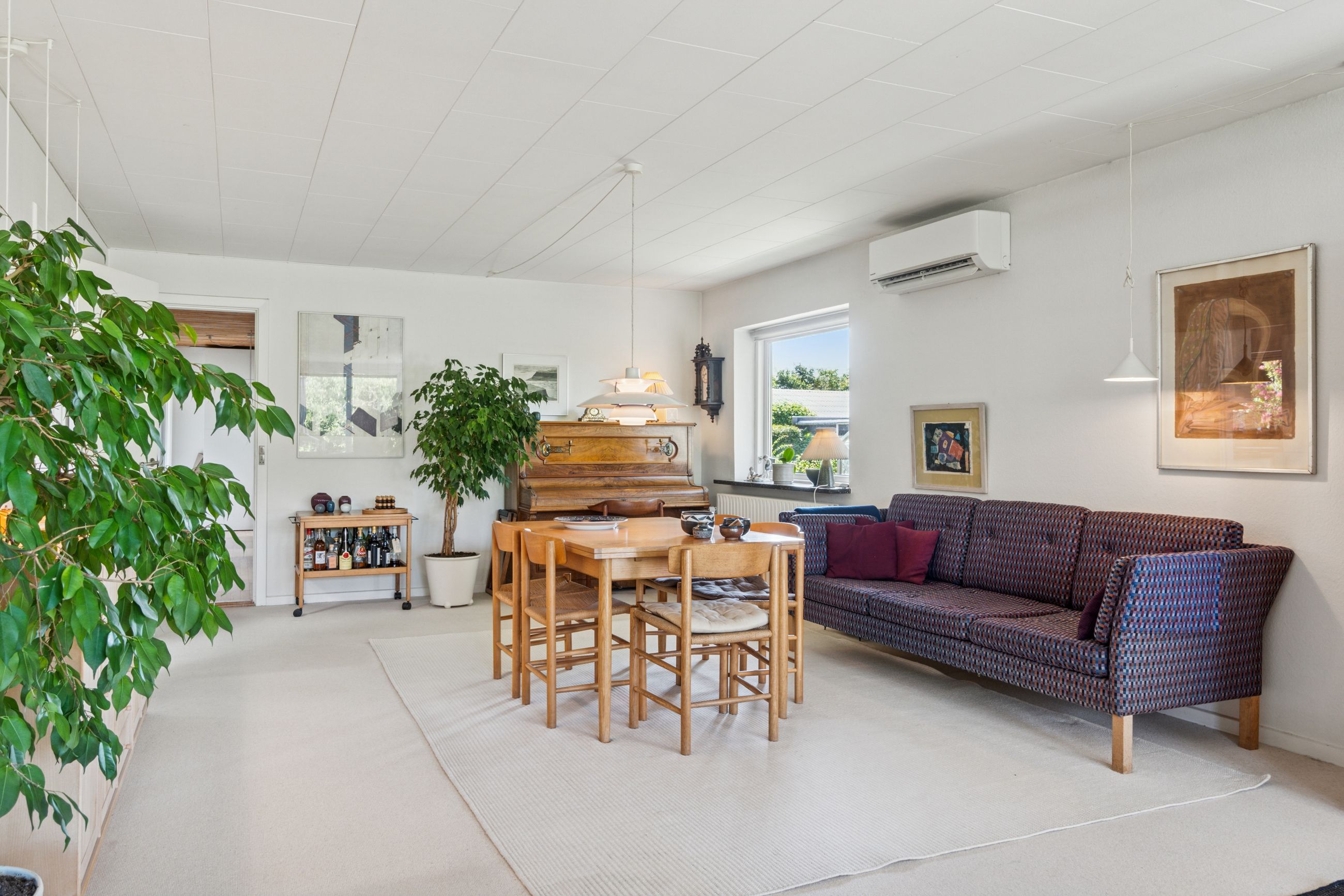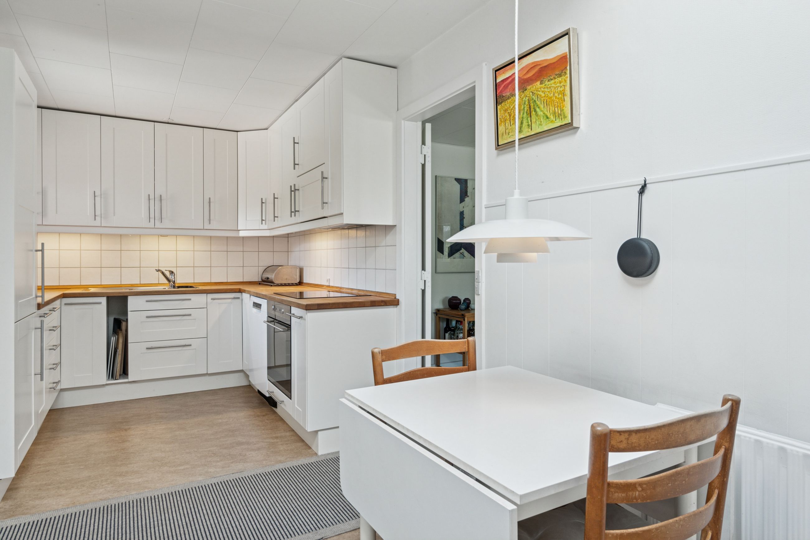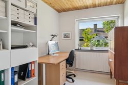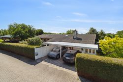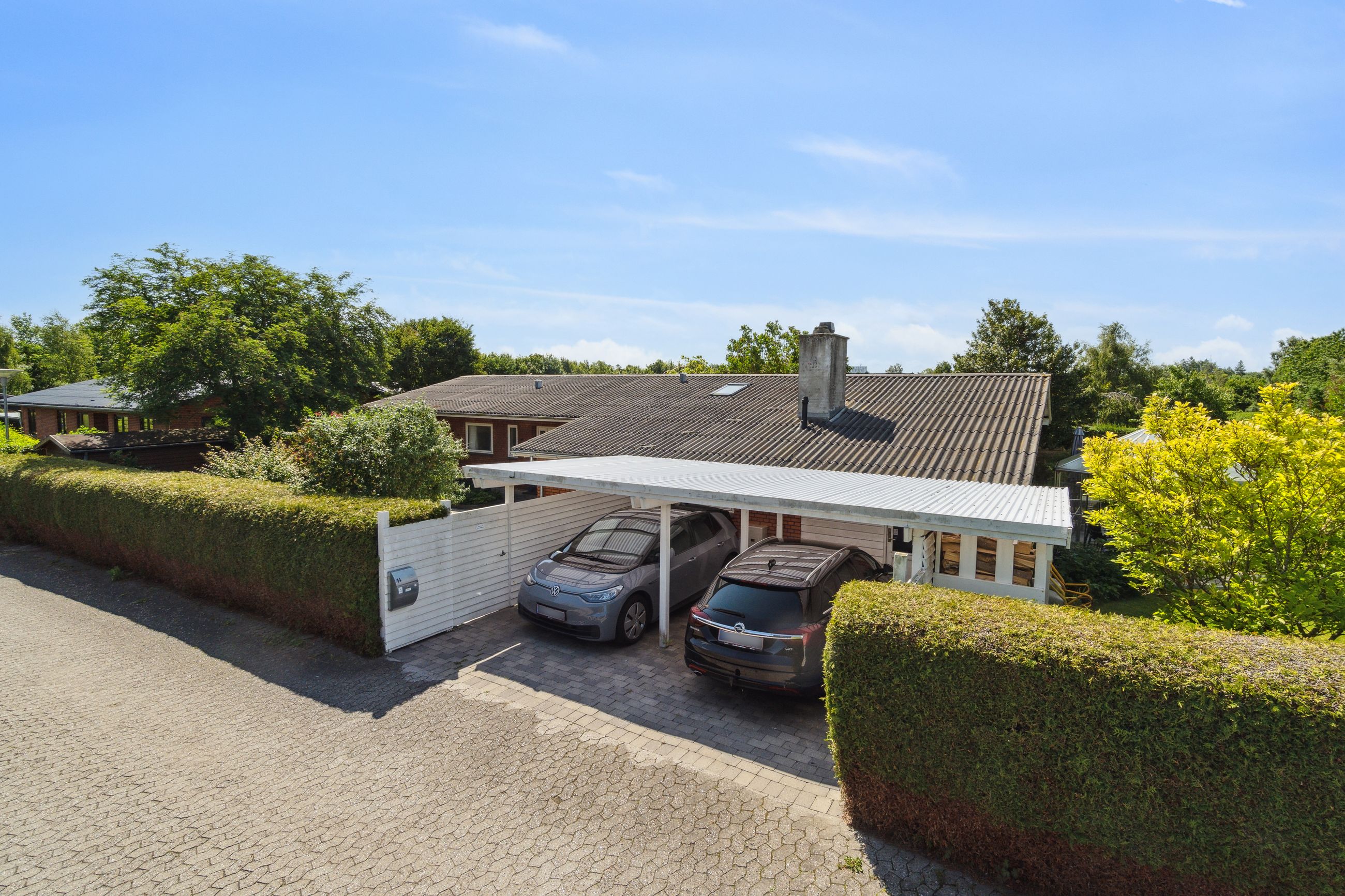 Foran boligen har I en dobbelt carport med ellader og skur, hvor bilerne parkeres, inden I bevæger jer indenfor – enten via entréen eller det praktiske bryggers, som er utroligt rummeligt med gode skabsløsninger og plads til vaskefaciliteterne. Bryggerset åbner op til køkkenet, hvor der er mulighed for en mindre spisekrog, så I kan nyde hinandens selskab på tværs af madlavning og samtaler. Den tilstødende vinkelstue fremtræder indbydende med skønne lysindfald gennem det brede vinduesparti, ligesom I vil bemærke den stemningsskabende pejs, der kan tændes op i de sene aftentimer. Modsat opholdsrummene finder I værelsesafdelingen, som består af fire gode værelser, et gæstetoilet samt et badeværelse.