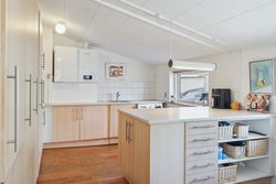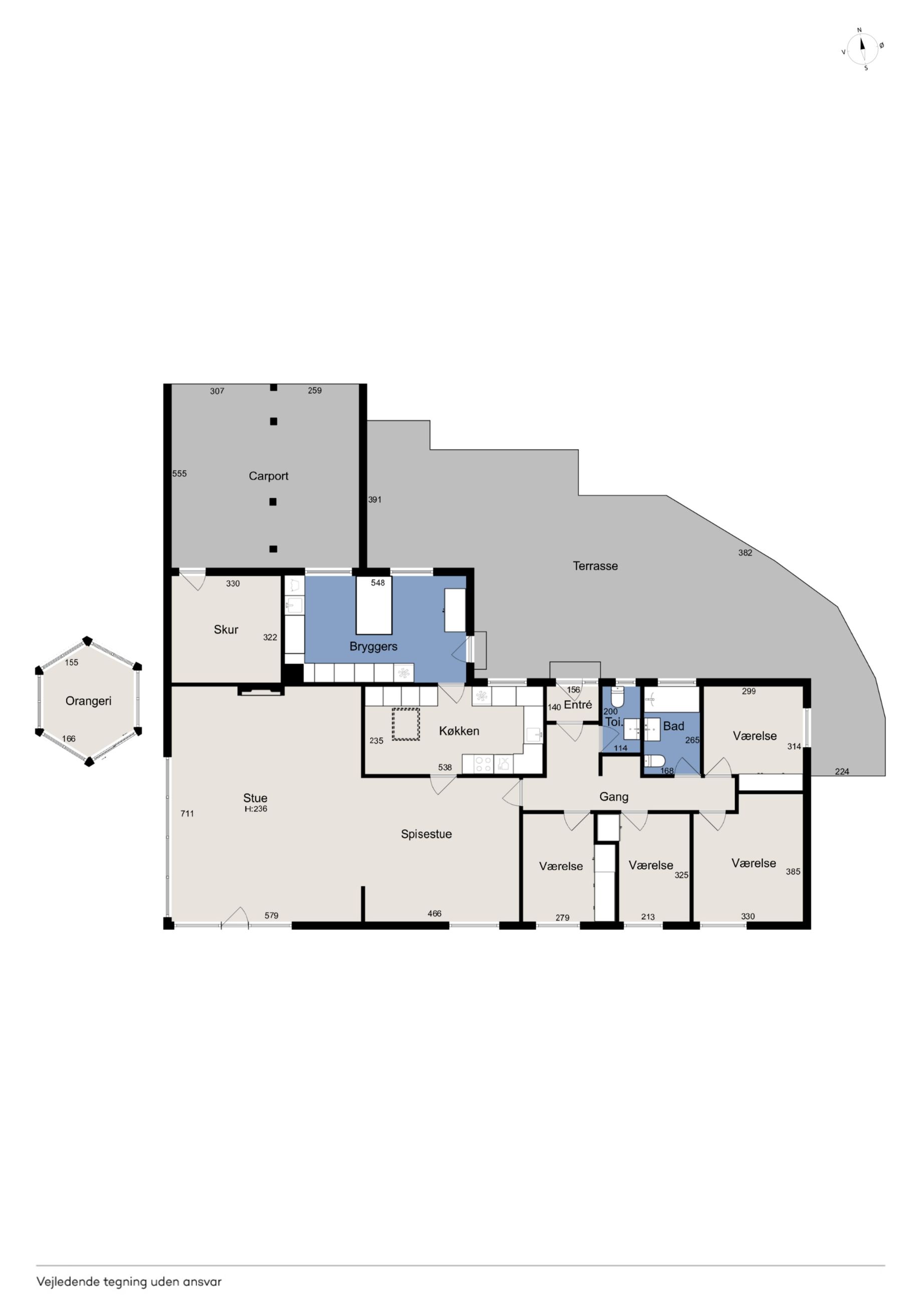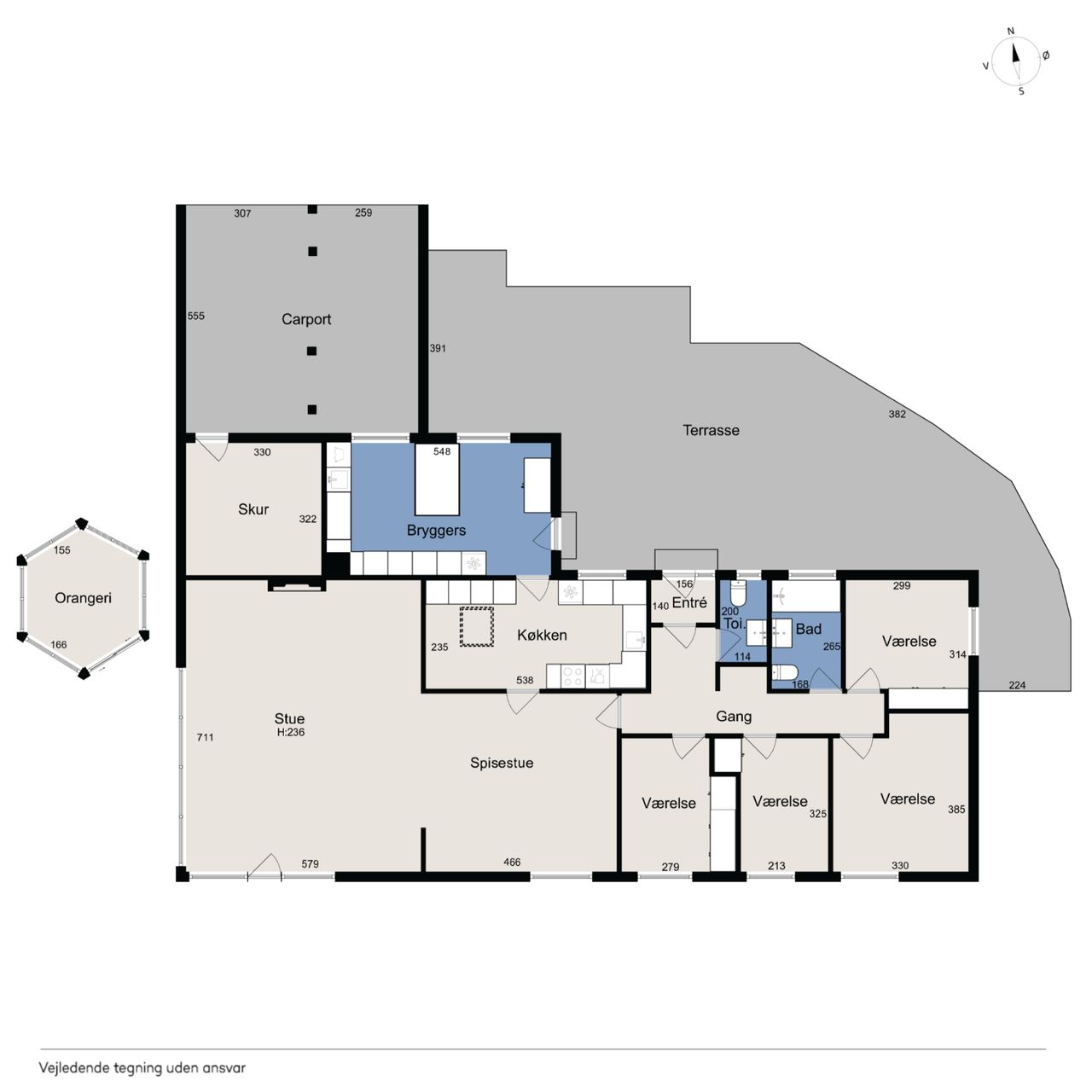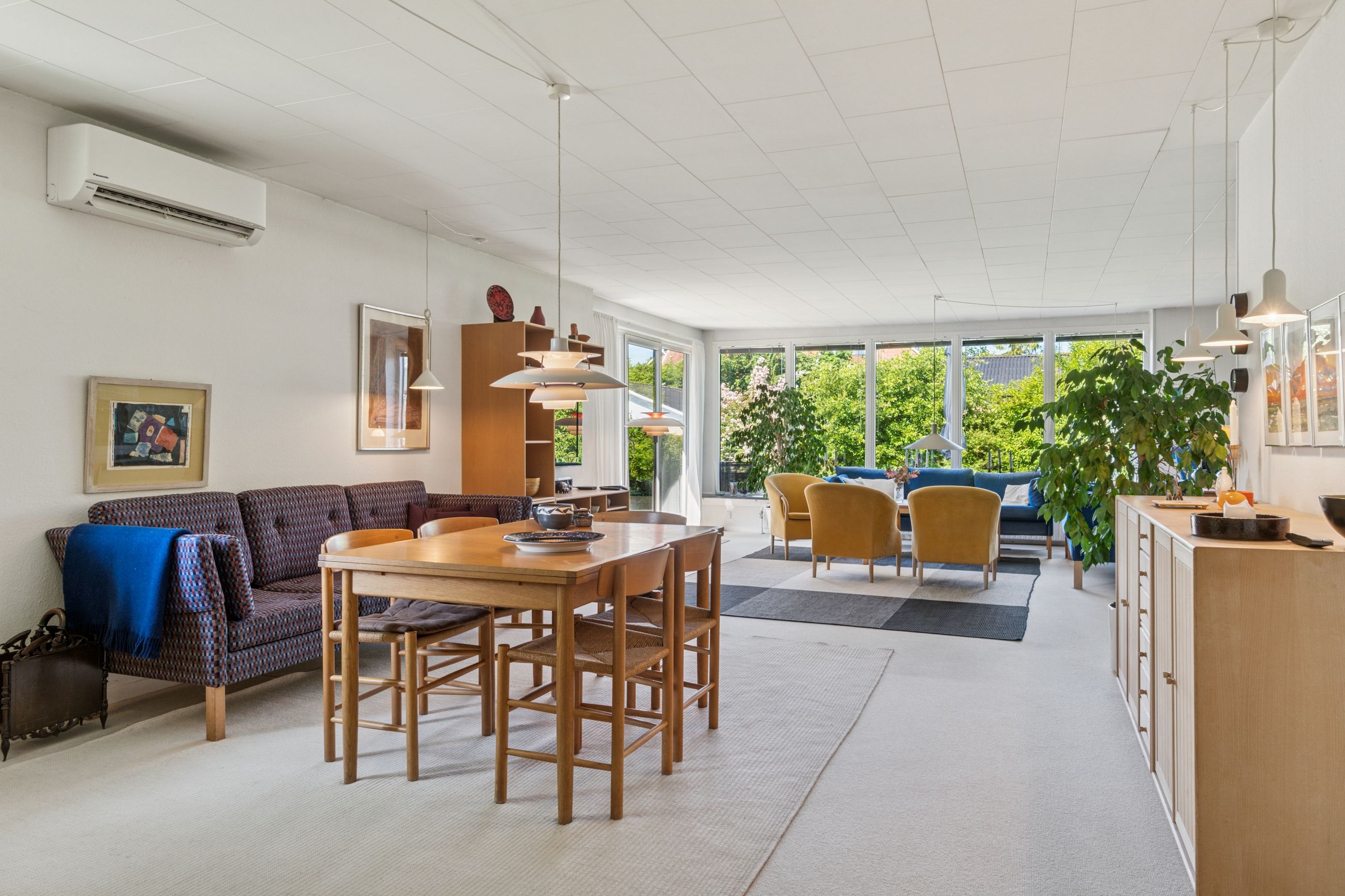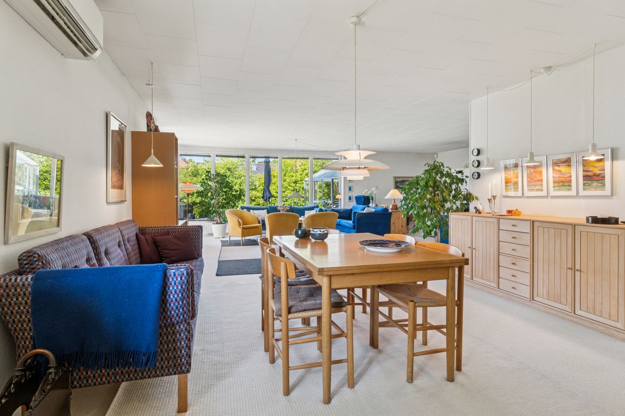 Foran boligen har I en dobbelt carport med ellader og skur, hvor bilerne parkeres, inden I bevæger jer indenfor – enten via entréen eller det praktiske bryggers, som er utroligt rummeligt med gode skabsløsninger og plads til vaskefaciliteterne. Bryggerset åbner op til køkkenet, hvor der er mulighed for en mindre spisekrog, så I kan nyde hinandens selskab på tværs af madlavning og samtaler. Den tilstødende vinkelstue fremtræder indbydende med skønne lysindfald gennem det brede vinduesparti, ligesom I vil bemærke den stemningsskabende pejs, der kan tændes op i de sene aftentimer. Modsat opholdsrummene finder I værelsesafdelingen, som består af fire gode værelser, et gæstetoilet samt et badeværelse.