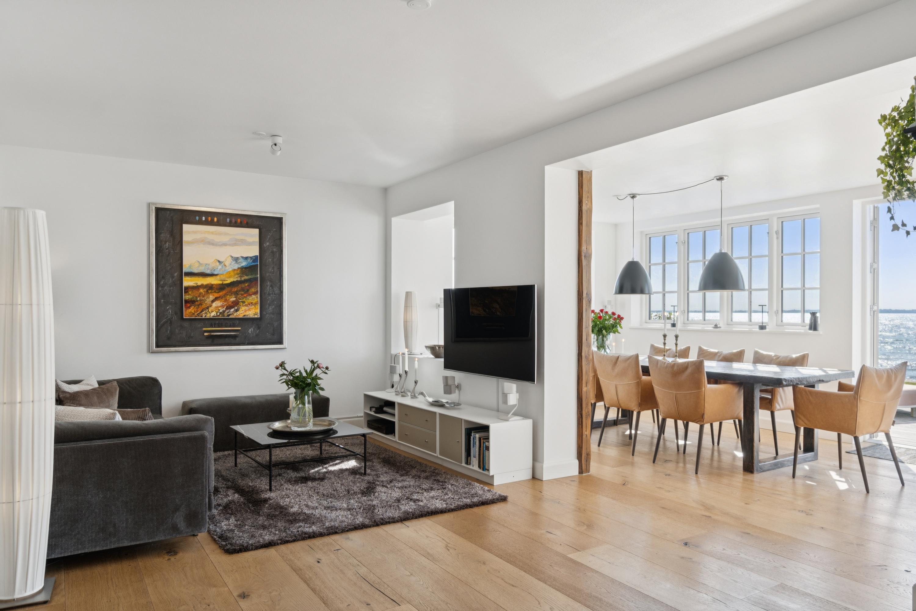 Forestil dig at vågne op til lyden af bølger, solopgangen over Hven og det åbne Sund som nærmeste nabo. Direkte adgang til sandstrand og panoramaudsigt fra den svenske kyst, over Hven og helt til København det er præcis, hvad denne unikke ejendom i Espergærde tilbyder. Et liv i første række til