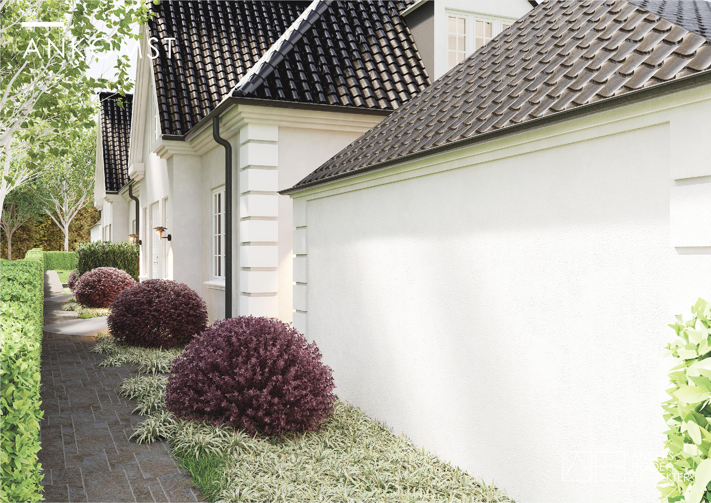 Med indkørsel fra henholdsvis Kystvej og Gl Strandvej, sælges nyopført arkitekttegnet projekt, uden bopælspligt, som to halve dobbelthuse i den mest eksklusive del af Gl Strandvejskvarteret i Humlebæk. Fjernt fra trafikstøj på Strandvejen, men dog alligevel 5 minutter fra alt.
