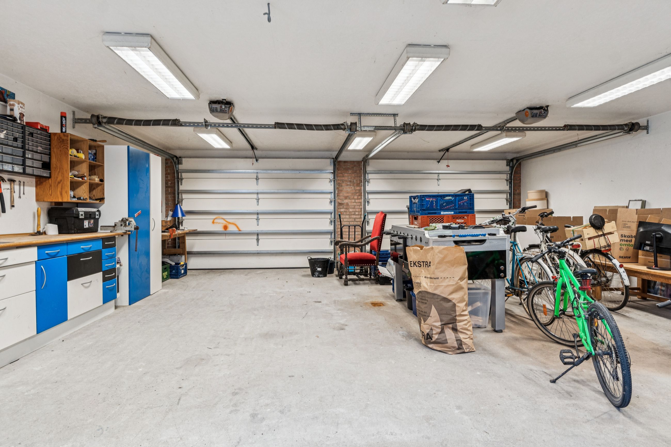 Endelig er der den store murede garage på 80 kvm, som kan bruges til hobbyværksted, bilentusiaster, lille håndværksvirksomhed, eller lign.