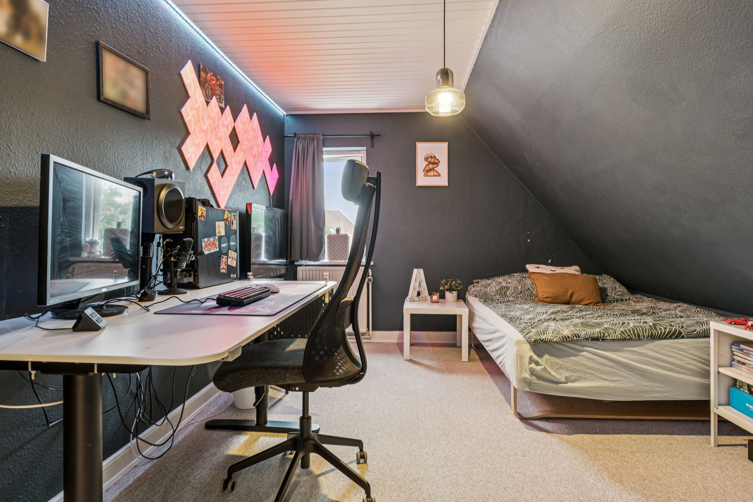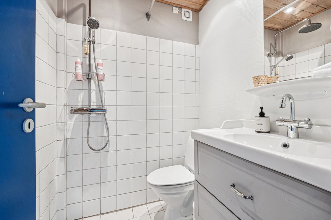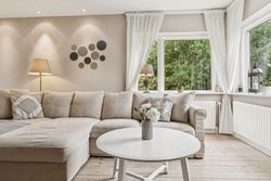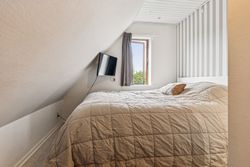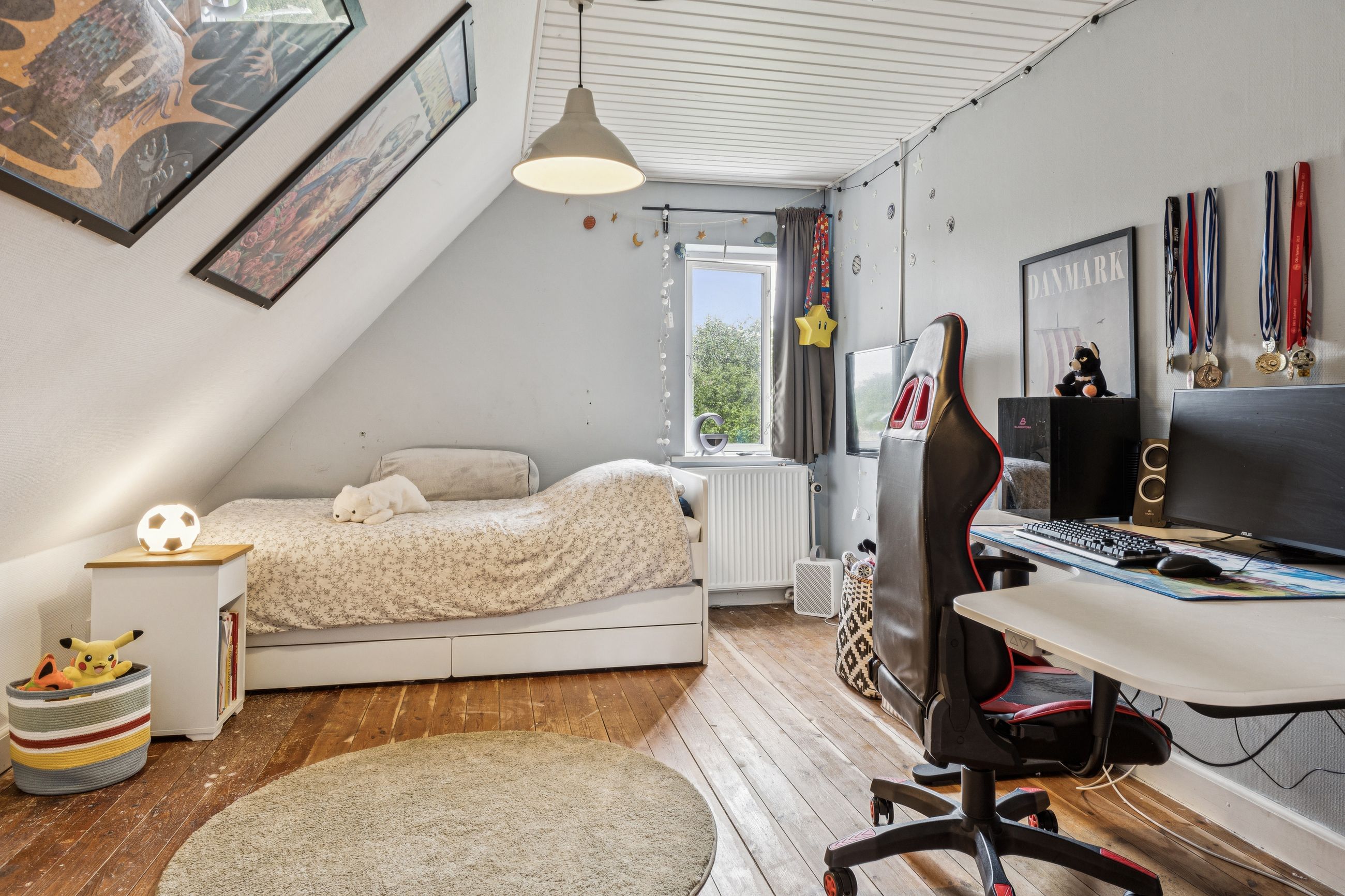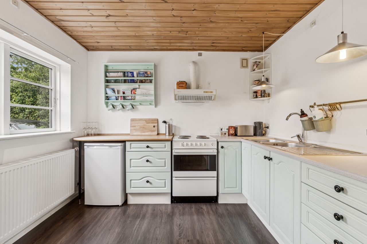 Ved siden af hovedhuset, med egen indgang og lille terrasse, er der en separat lejlighed (ikke beboelse) indrettet med entré, pænt brusebadeværelse, køkken, spiseplads, dobbeltseng, skab og fjernsyn - denne del er ideel til teenageren/ Airbnb/udlejning/gæstebolig m.v.
