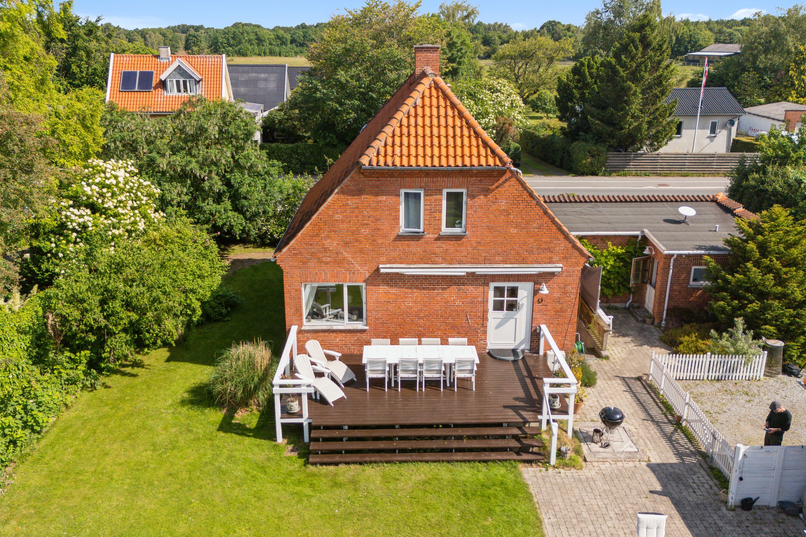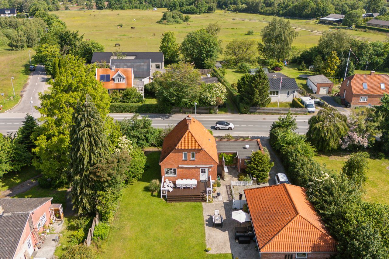 Ejendommen og garagen er opført i røde mursten med tegltag. Der er en stor sydvendt, helt privat have med flere terrasseområder. Her er fred og ro, trods Esrumvej, som man først hører, når man er på forsiden af ejendommen. Gode parkeringsforhold på grunden.