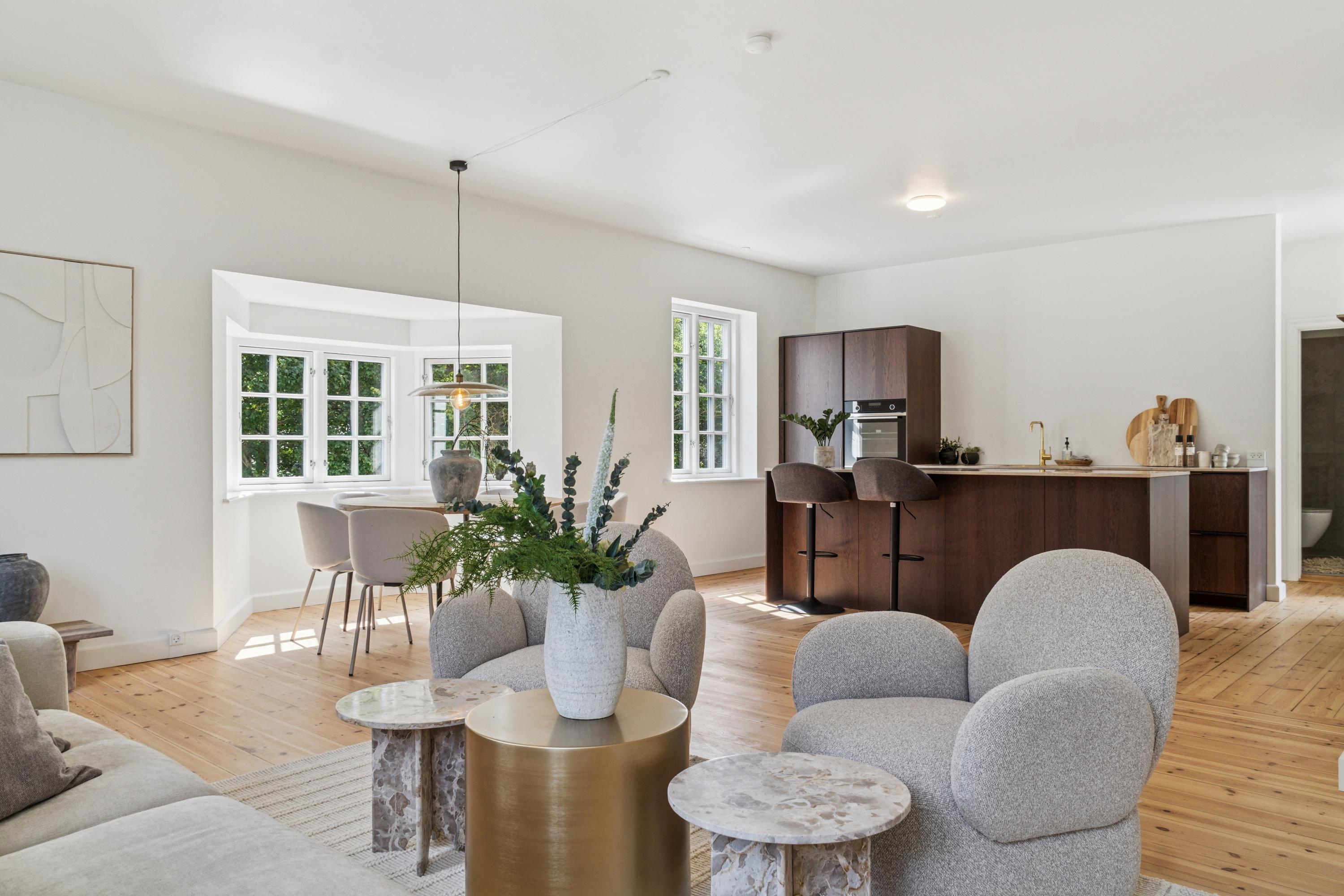 Jernbane Allé 6 er en klassisk palæejendom, der i 2024 og 2025 har gennemgået en omfattende og kvalitetsbevidst totalrenovering. Ejendommen fremstår nu som fire eksklusive ejerlejligheder, hvor moderne komfort, æstetik og funktionalitet er forenet i en helstøbt og harmonisk helhed. Alle lejligheder