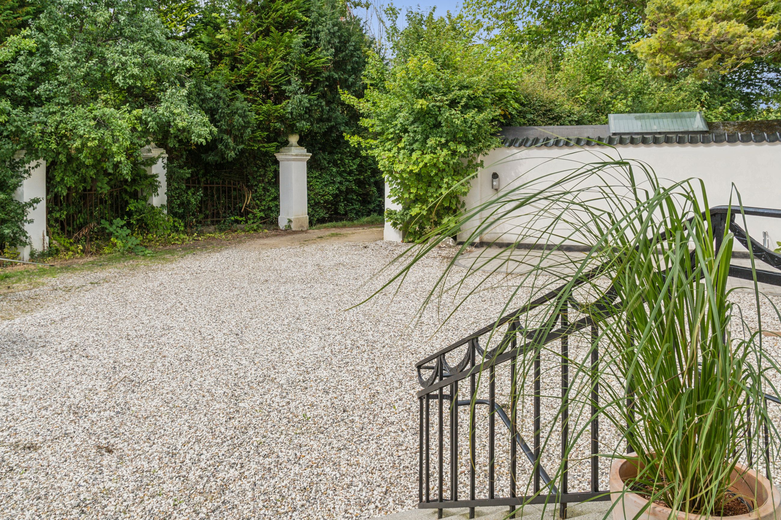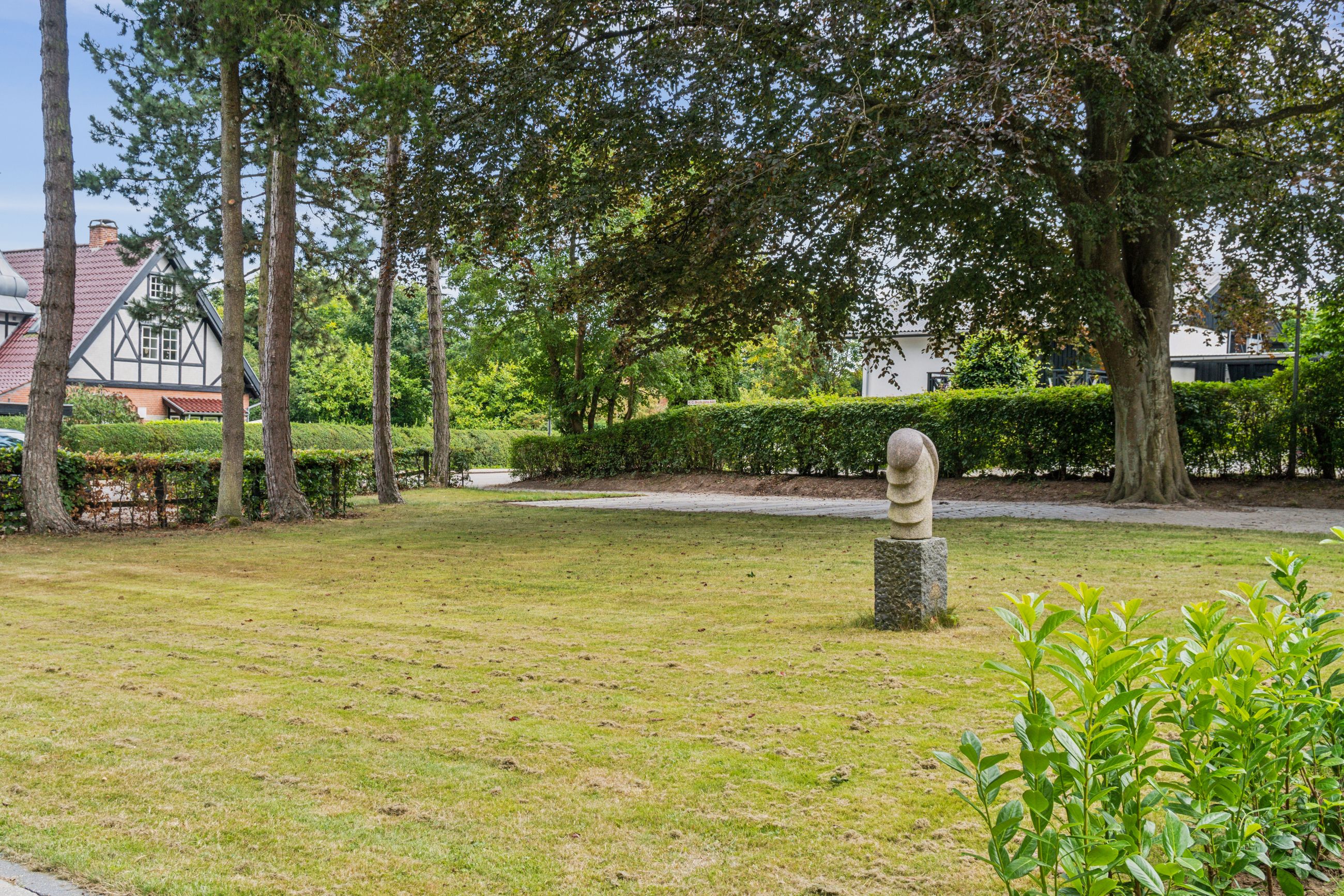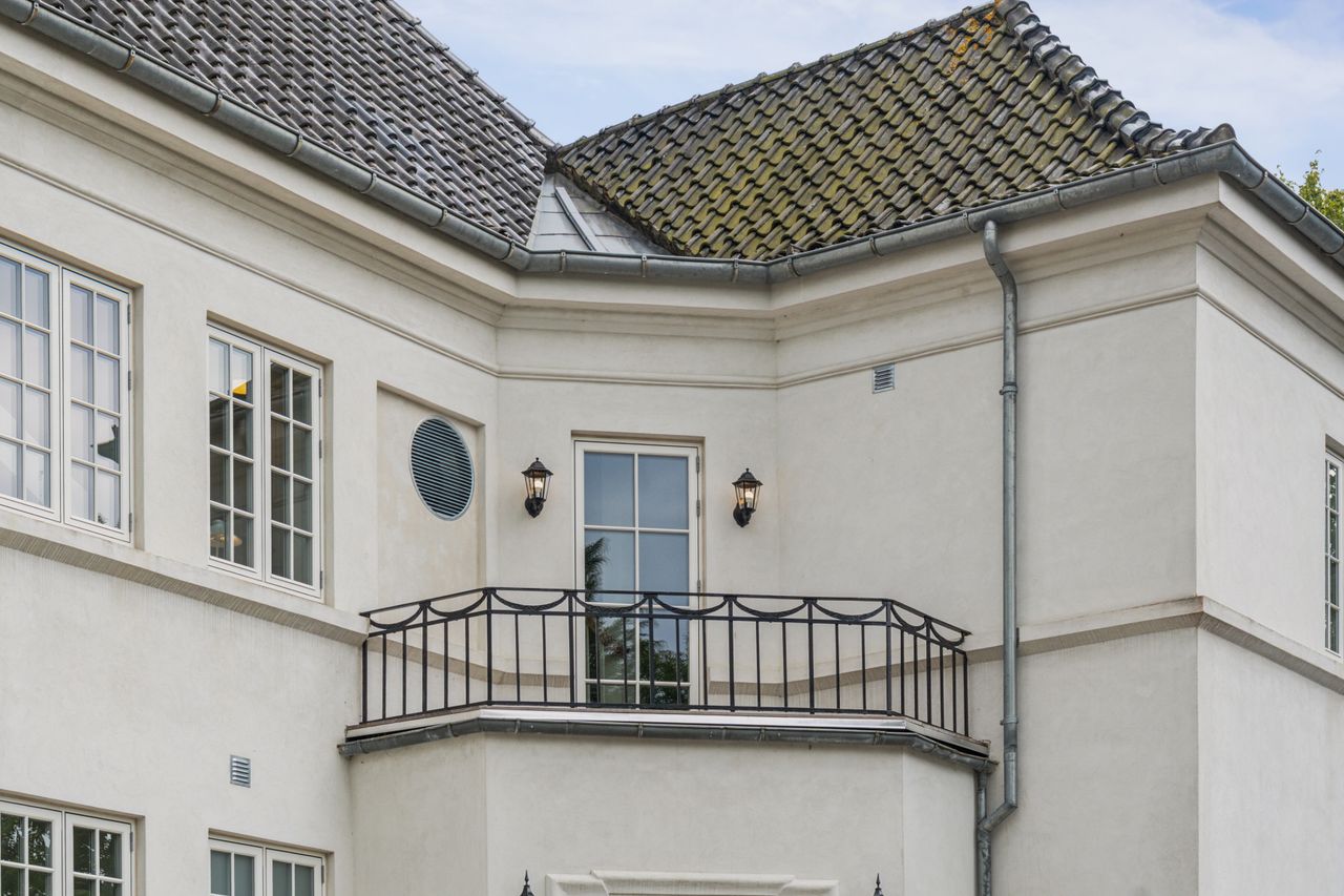 Ved ankomst mødes man af et smuk hvidmalet palæ, omgivet af en stor park med varieret beplantning, plantagetræer, skulpturer og gode parkeringsforhold. En flisebelagt sti fører til hovedindgangen, mens bagsiden af ejendommen byder på en elegant trappeopgang med adgang til den originale hoveddør. Denne åbner op til en rummelig og præsentabel hall belagt med marmor, hvor den klassiske arkitektur møder moderne forfinelse. Hallen giver adgang til de to stuelejligheder samt trappeopgangen til lejlighederne på første sal.