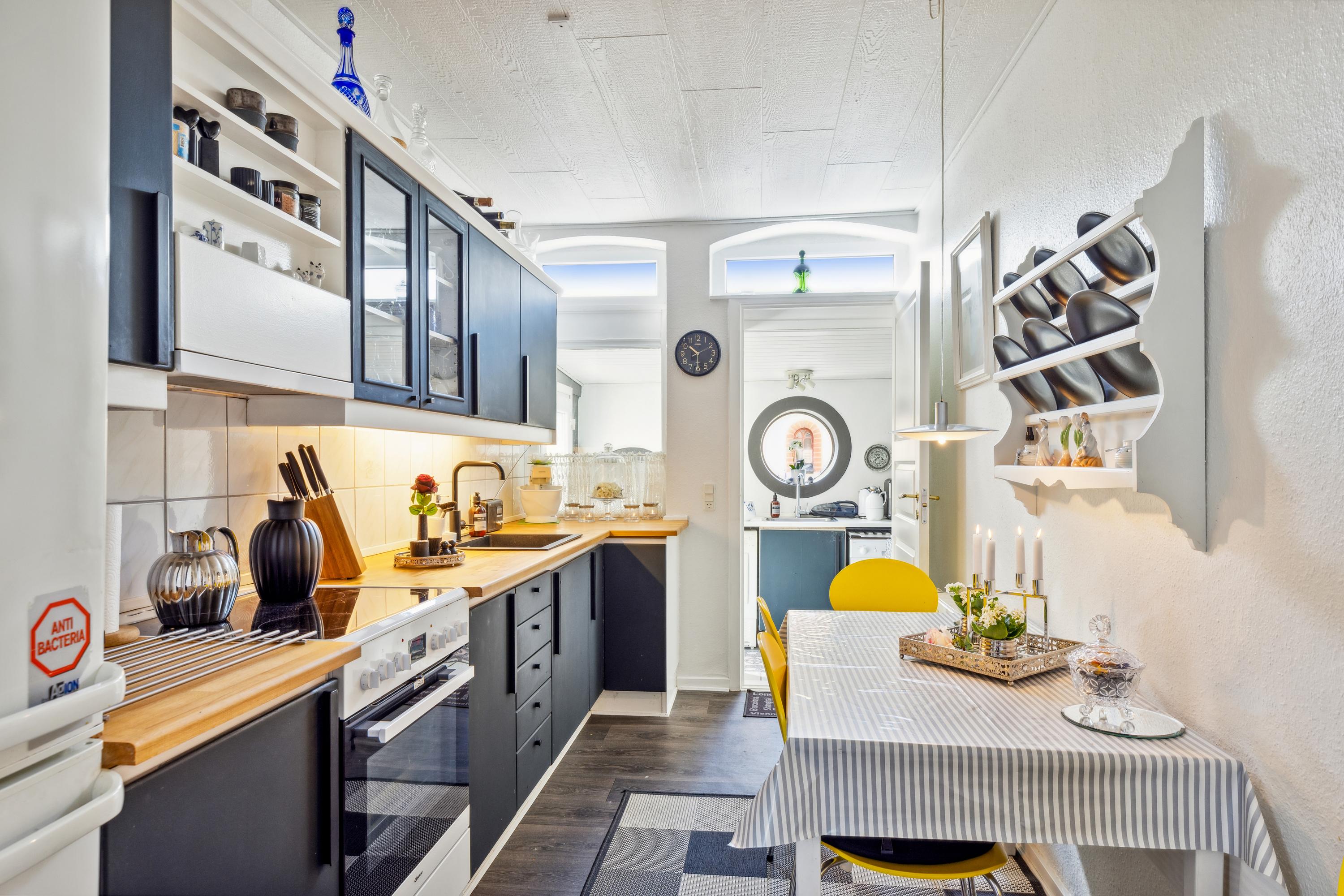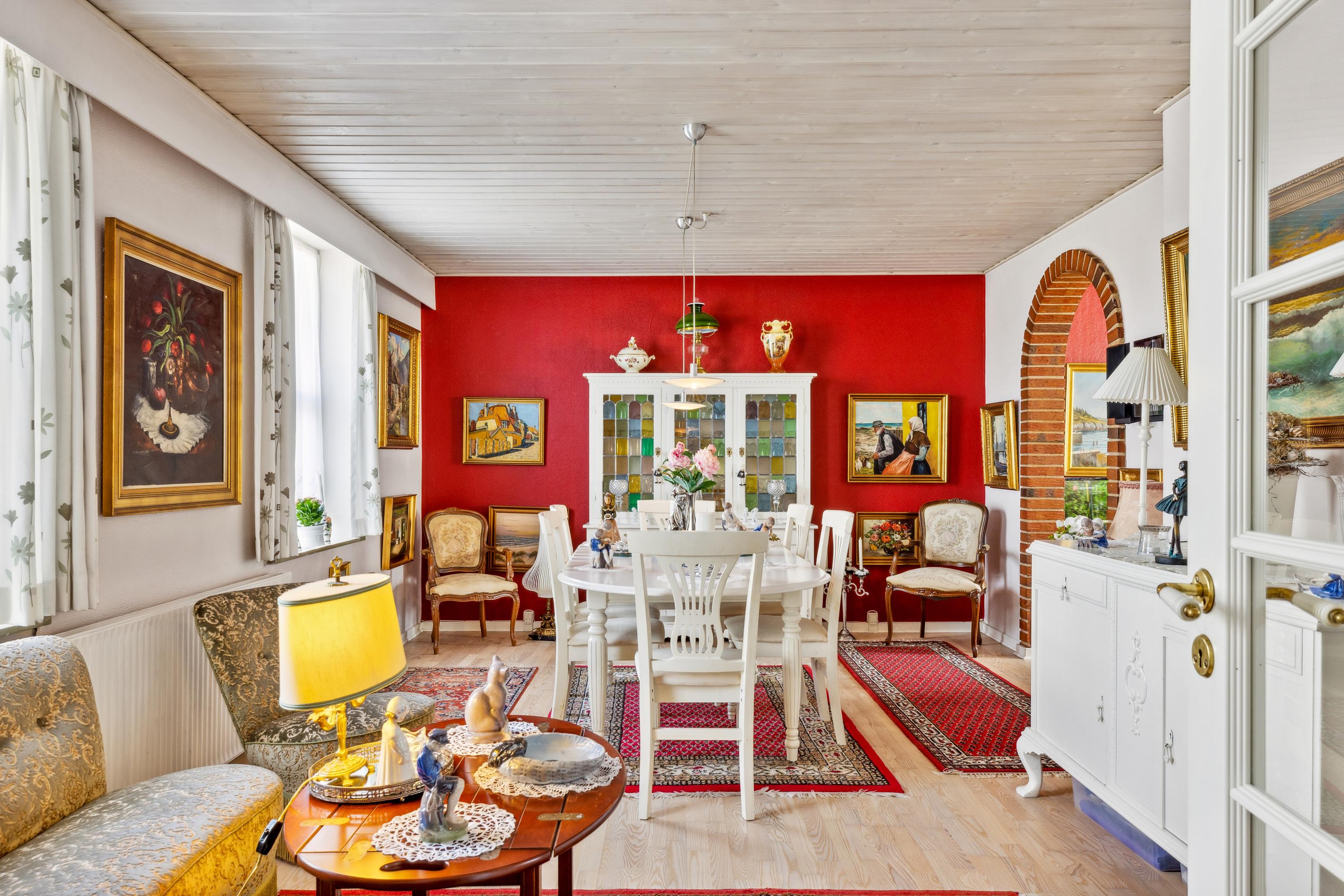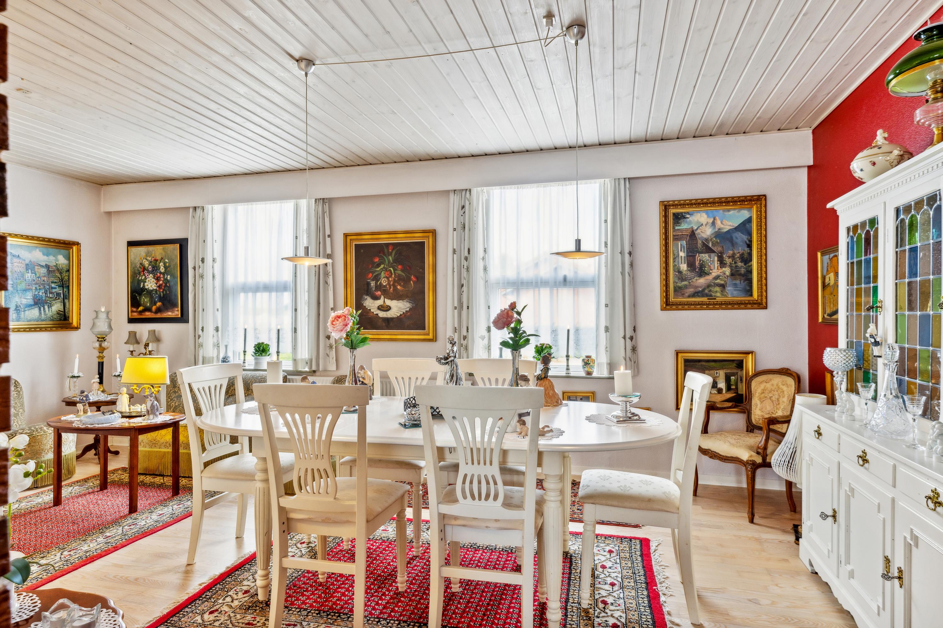 Boligens hjerte er den rummelige spisestue, som ligger i forlængelse af en hyggelig stue