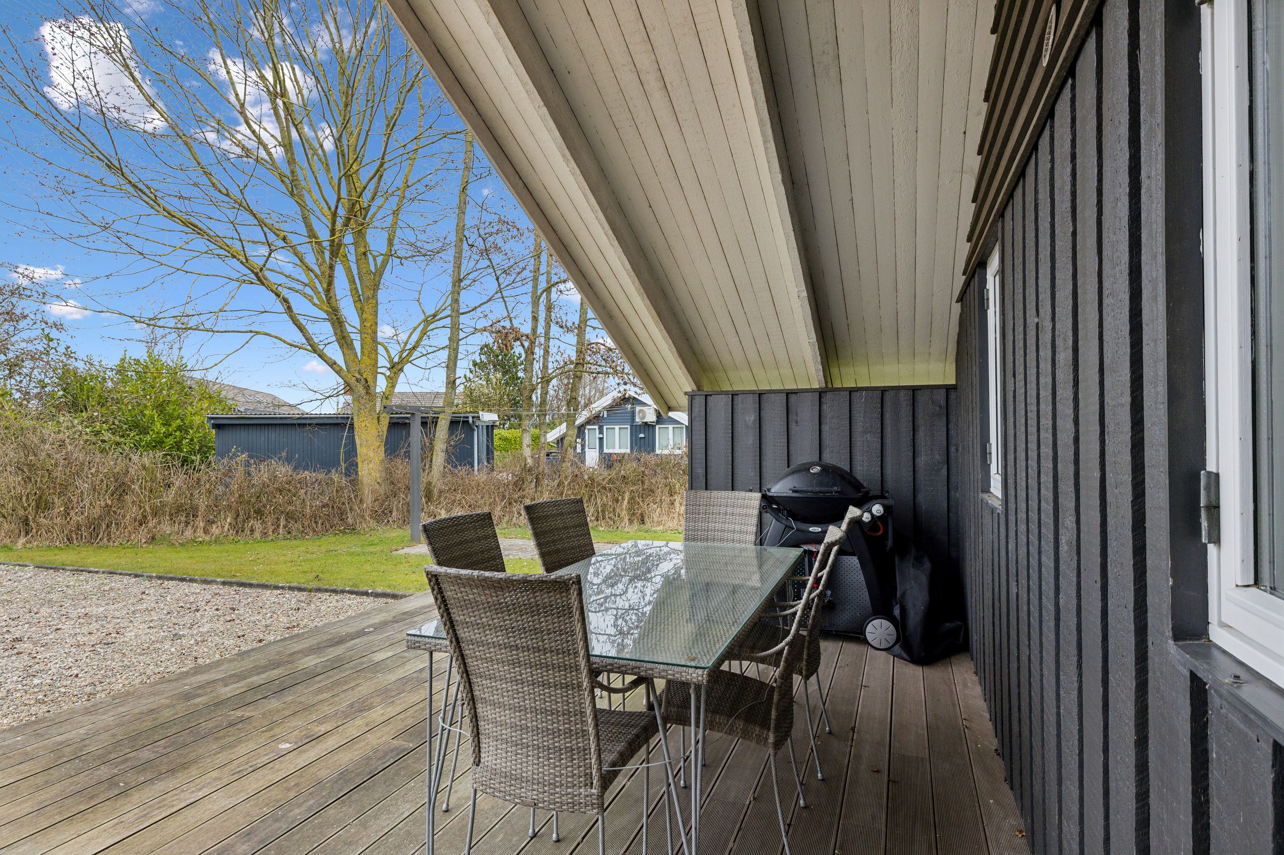 Sommerhuset byder på flere hyggelige terrassemiljøer, hvor du kan nyde solen fra morgen til aften. Den store grund giver masser af plads til børn og voksne, mens den rummelige indkørsel sikrer gode parkeringsforhold. Derudover er der et praktisk skur til opbevaring af havemøbler, cykler og strandudstyr.