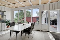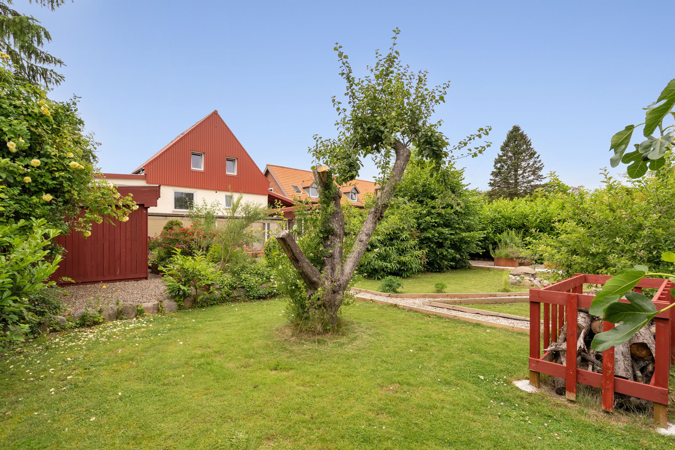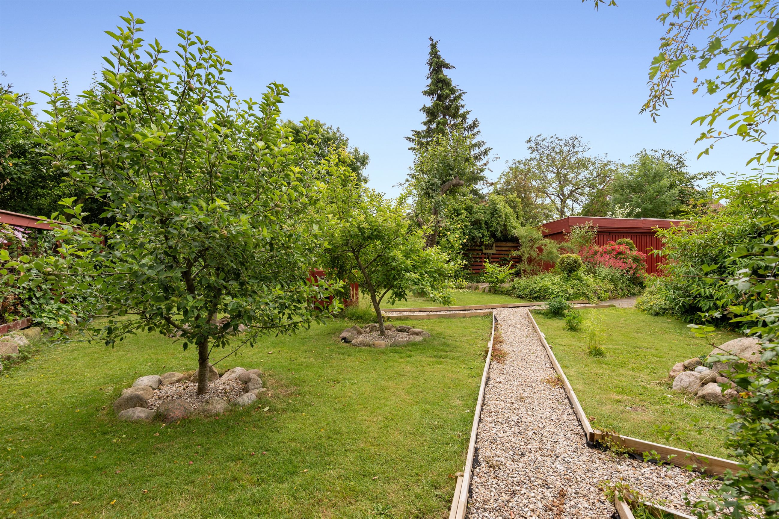 Velkommen til Violvej 22 – en helt særlig boligperle beliggende for enden af en fredelig villavej i Sønderborg. Her bor du ugeneret og tilbagetrukket med en sjælden privat atmosfære, omgivet af en imponerende, parklignende have og skønt gårdmiljø. En perfekt oase for dem, der ønsker fredelige omgivelser, men stadig ønsker at bo i byen. Allerede ved ankomst mærkes den unikke stemning – en stor, præsentabel indkørsel med plads til både familie og gæster fører op til carporten. Fra carporten er der adgang til praktiske redskabsrum, og i forlængelse af huset finder man et dejligt overdækket terrasseområde, hvor udelivet kan nydes i al slags vejr. Haven folder sig ud med naturlig elegance og byder på smukke gamle træer, grønne græsarealer og hyggelige kroge. Her findes også en skøn udestue med stort vinduesparti og udsigt til den parklignende have – ideel til alle årstider.