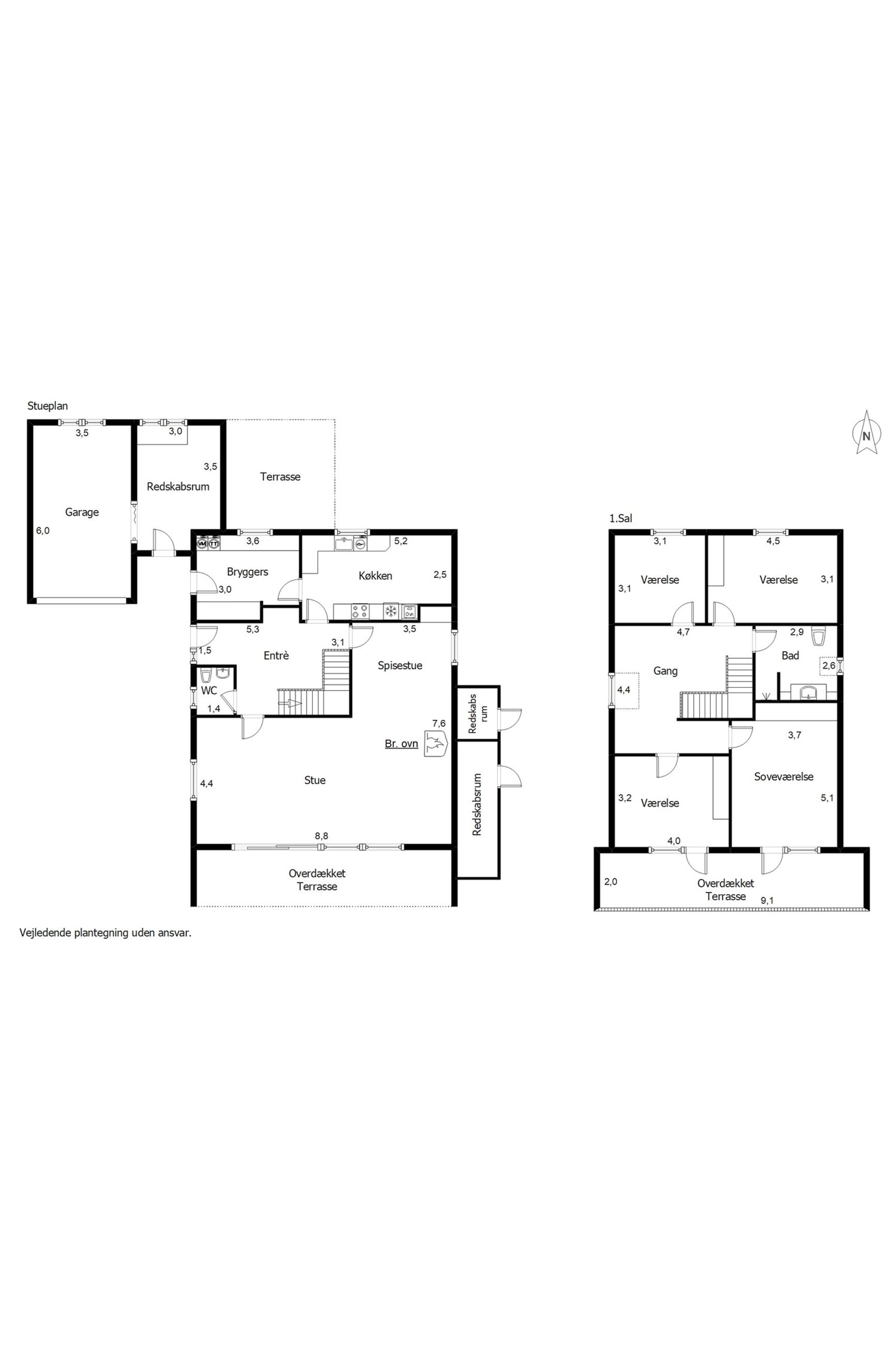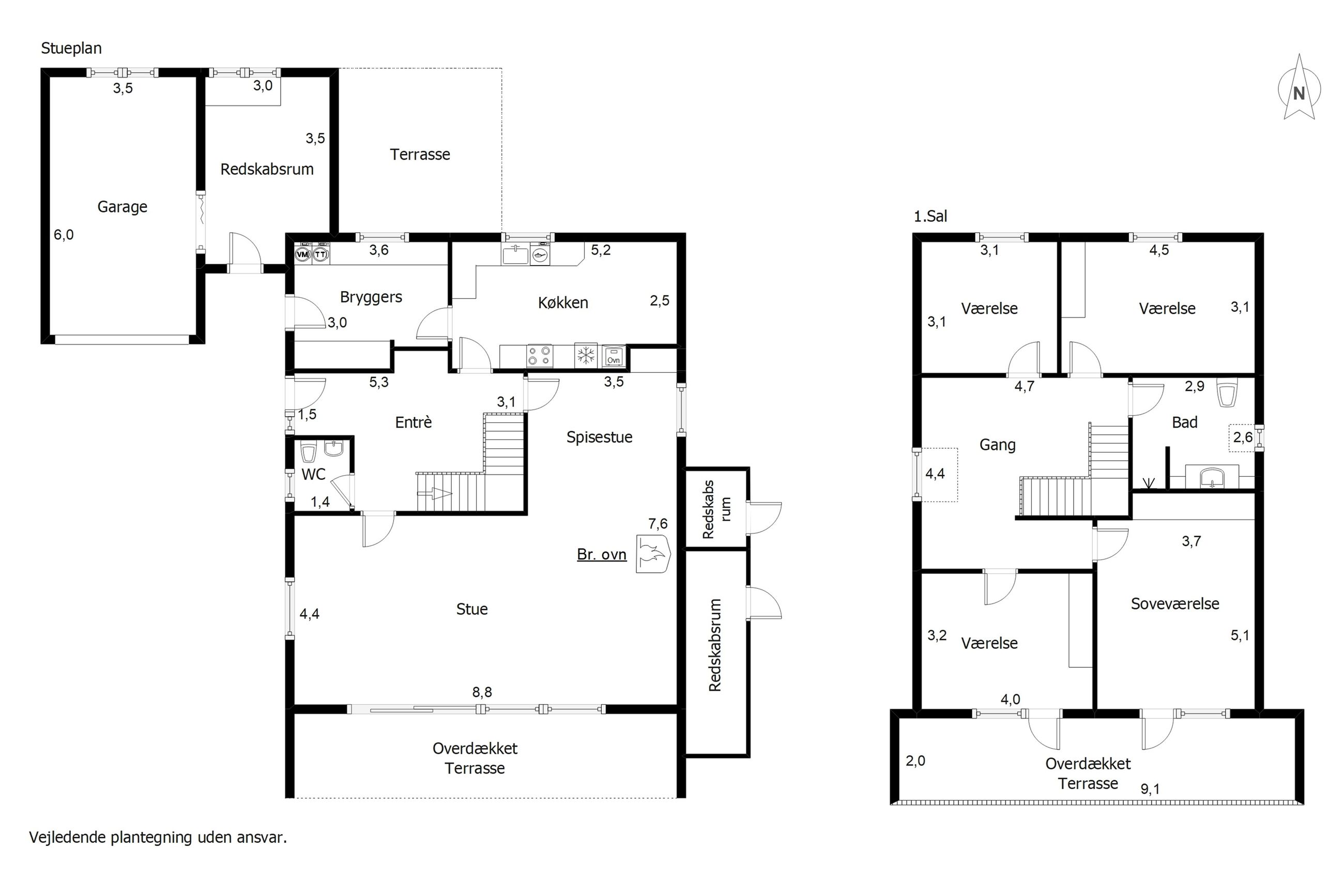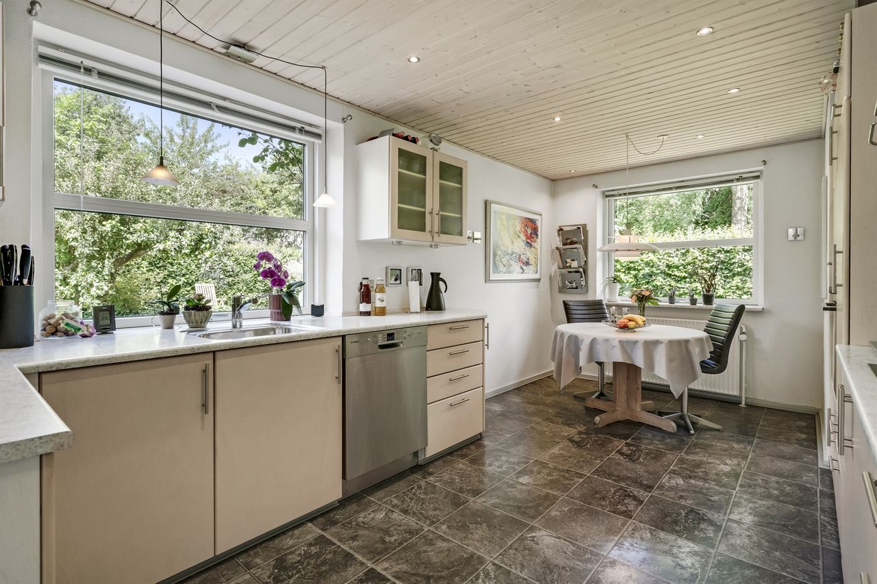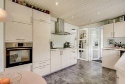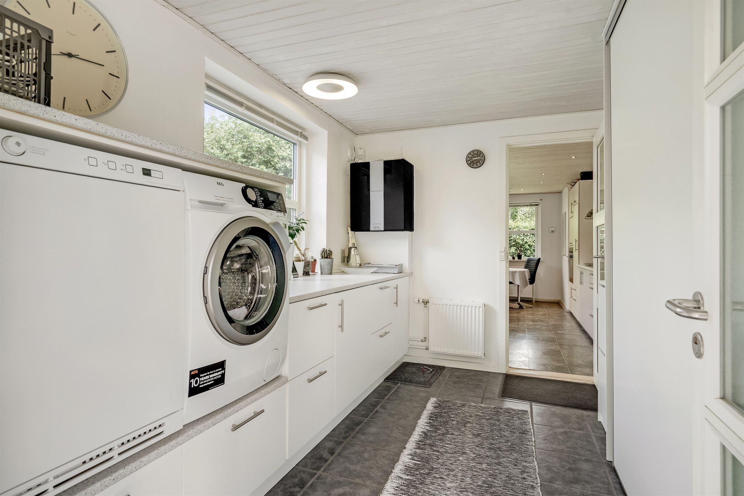 Køkkenet er velindrettet og tilbyder også mulighed for spiseplads. Ønsker man et mere åbent rumforløb, kan væggen mod stuen åbnes og skabe et stort, moderne køkkenalrum og stue i ét. Fra køkkenet er der adgang til et stort bryggers med god bordplads og vaskefaciliteter i højden – her er også egen indgang, hvilket gør hverdagen ekstra nem.