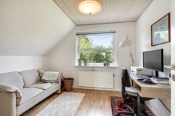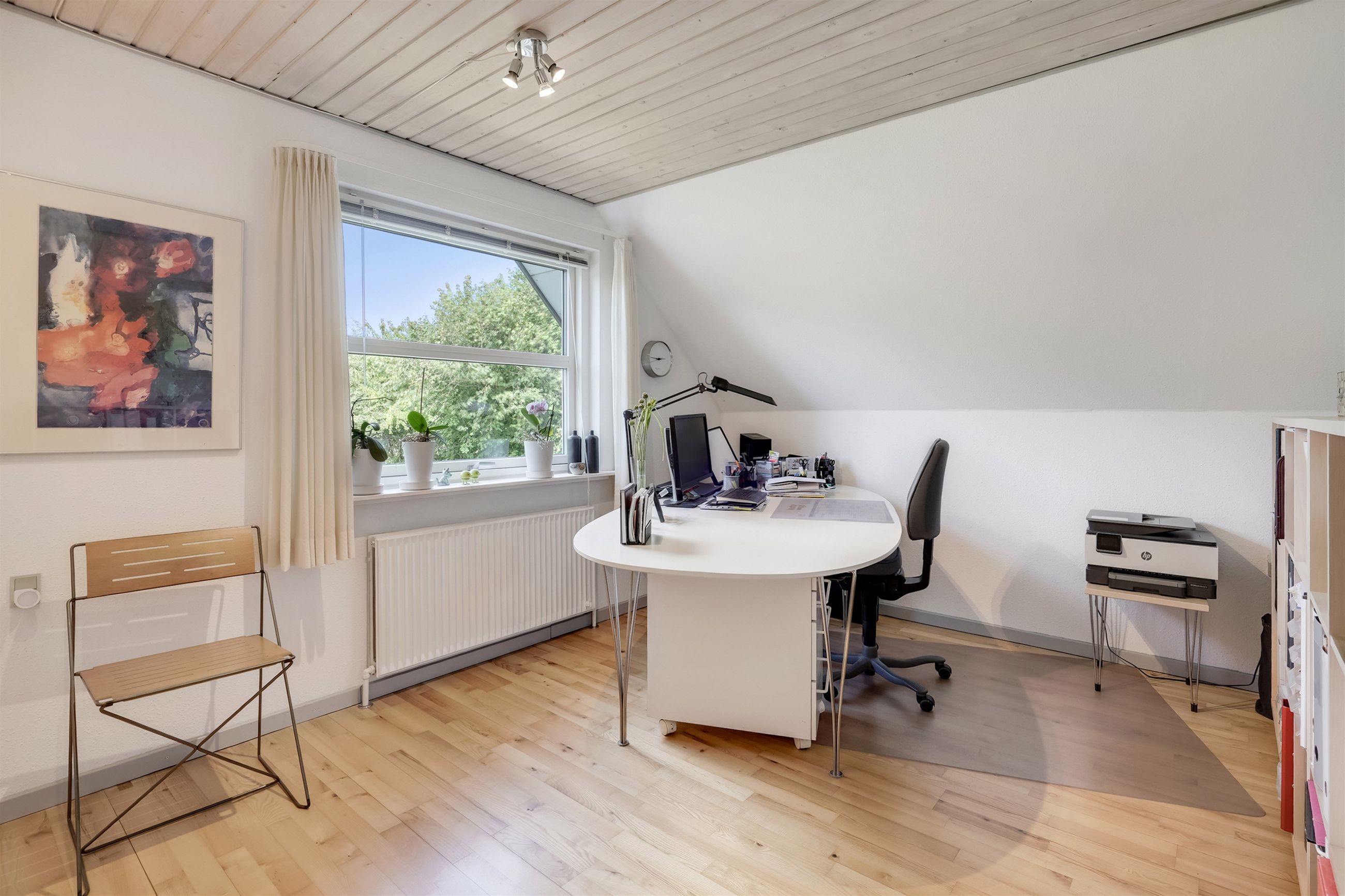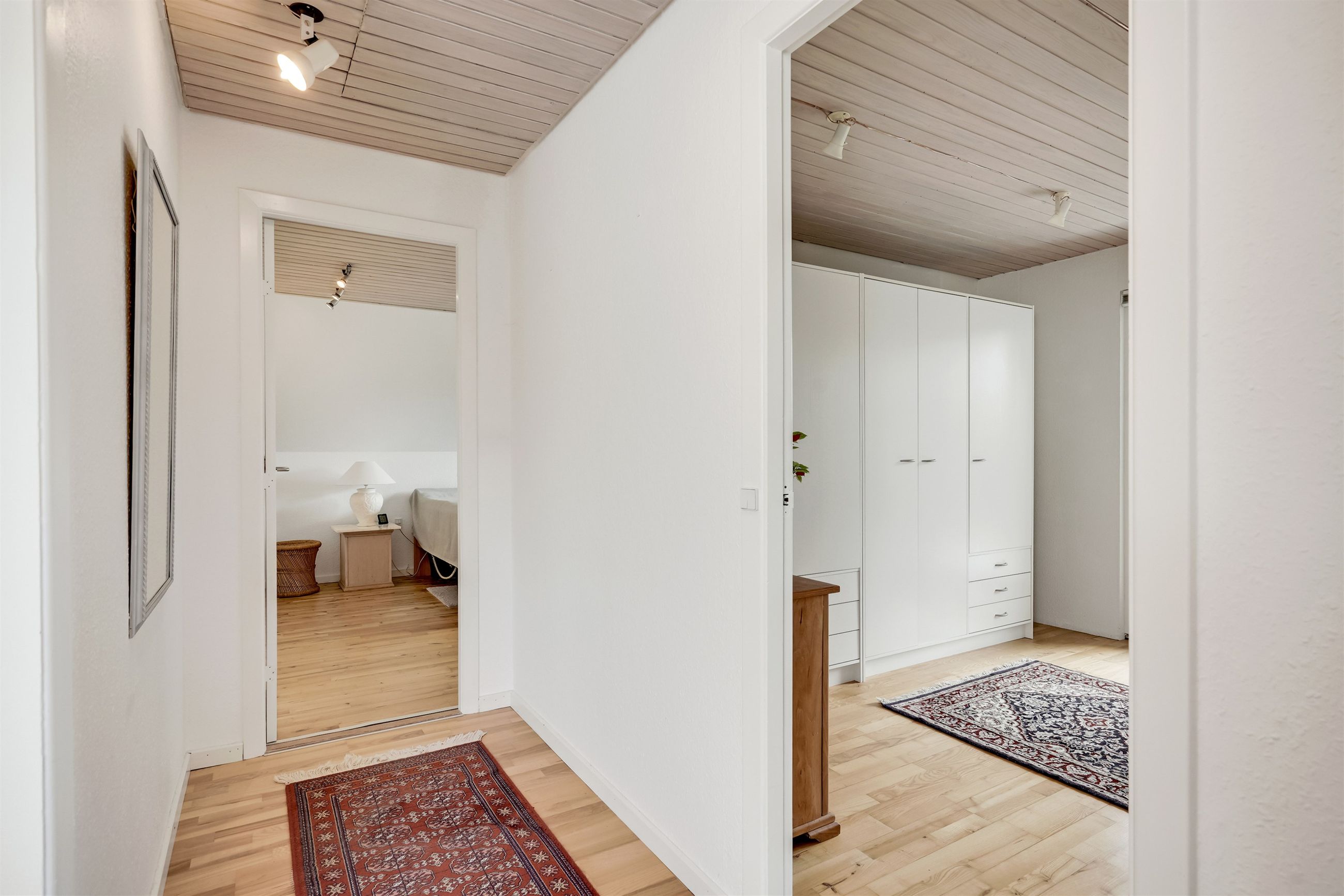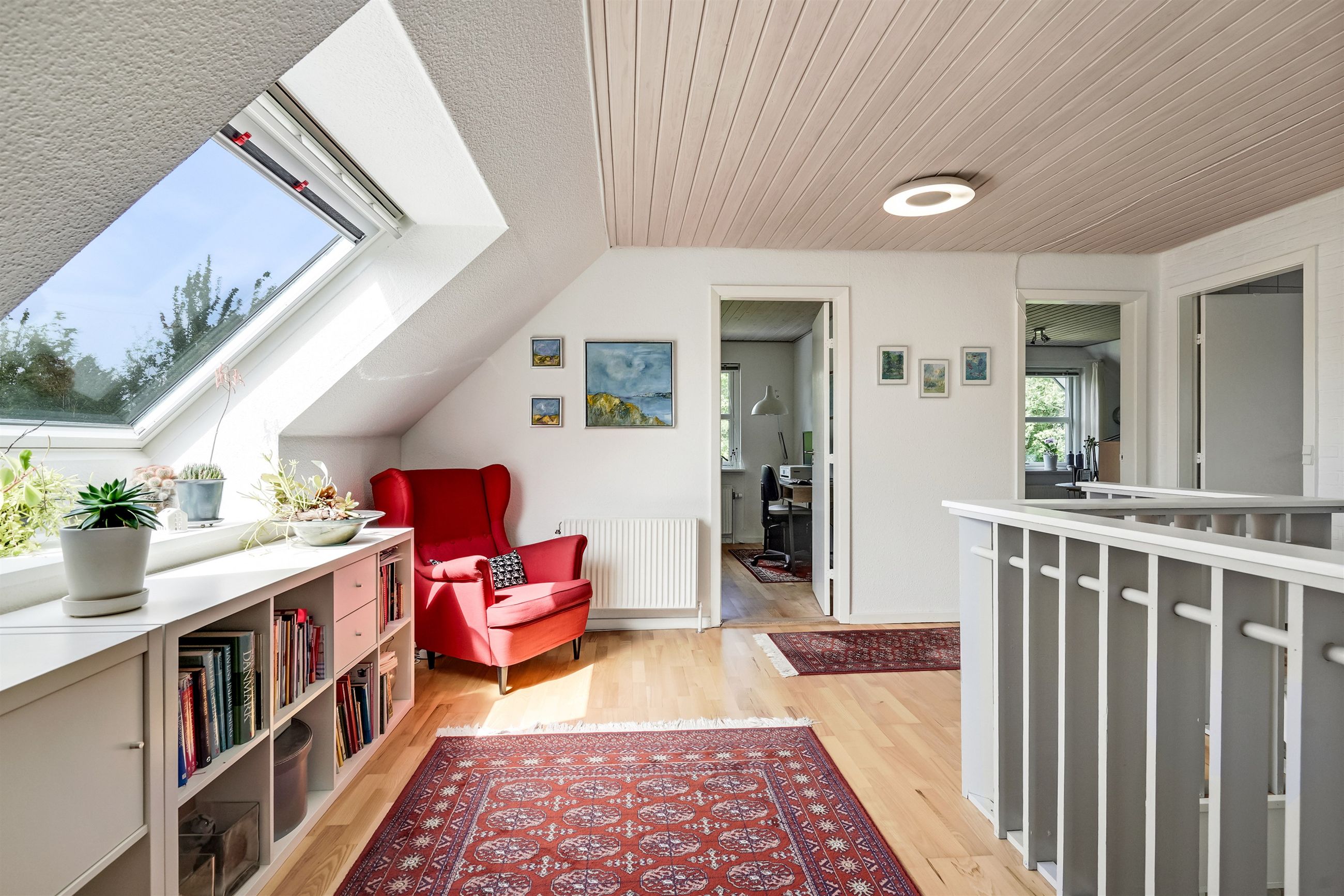 På førstesalen venter fire gode værelser – to af dem med direkte udgang til svalegang. Her er også et lyst og tidløst badeværelse samt en rummelig repos, der oplagt kan anvendes som hjemmekontor eller multirum.