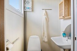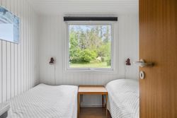 Sommerhuset rummer 58 veludnyttede kvadratmeter med en gennemtænkt planløsning. Der er to gode soveværelser, der begge er lyse og nemme at indrette med dobbeltseng eller køjesenge – oplagt til både par og børnefamilier. En særlig praktisk detalje er det separate badeværelse og toilet, som giver en mere bekvem og fleksibel hverdag, især når huset er i brug af flere personer.