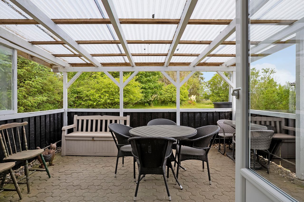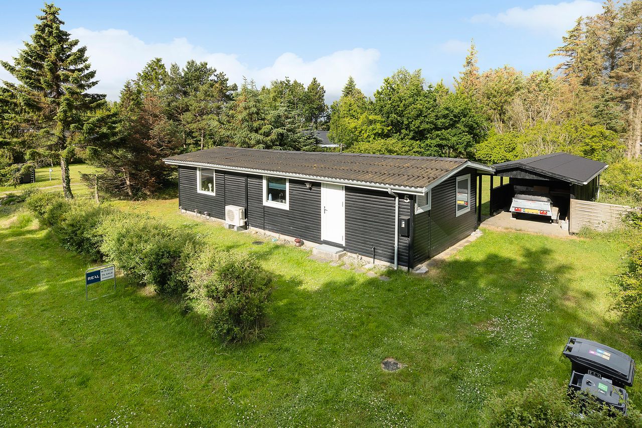 Udenfor venter en skøn og rummelig have med høje træer og plads til leg, solbadning og afslapning. Til huset hører desuden en 21 m2 stor carport med tilhørende 5 m2 redskabsrum – ideelt til opbevaring af haveredskaber, grill, cykler eller strandudstyr.