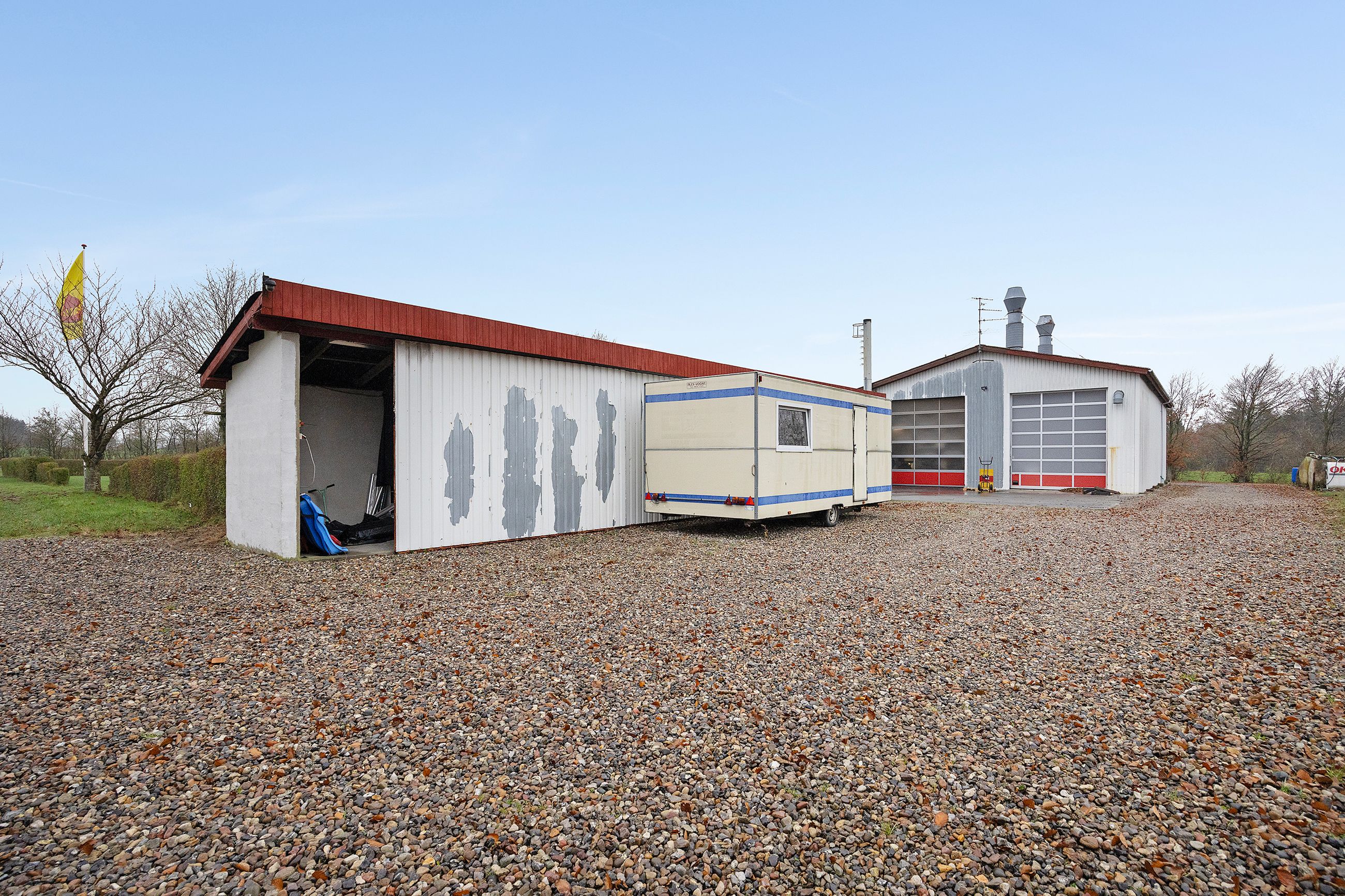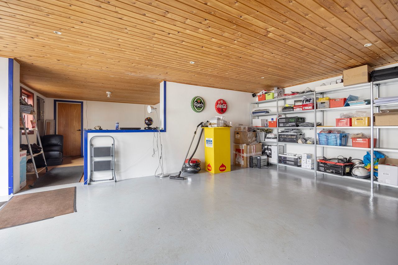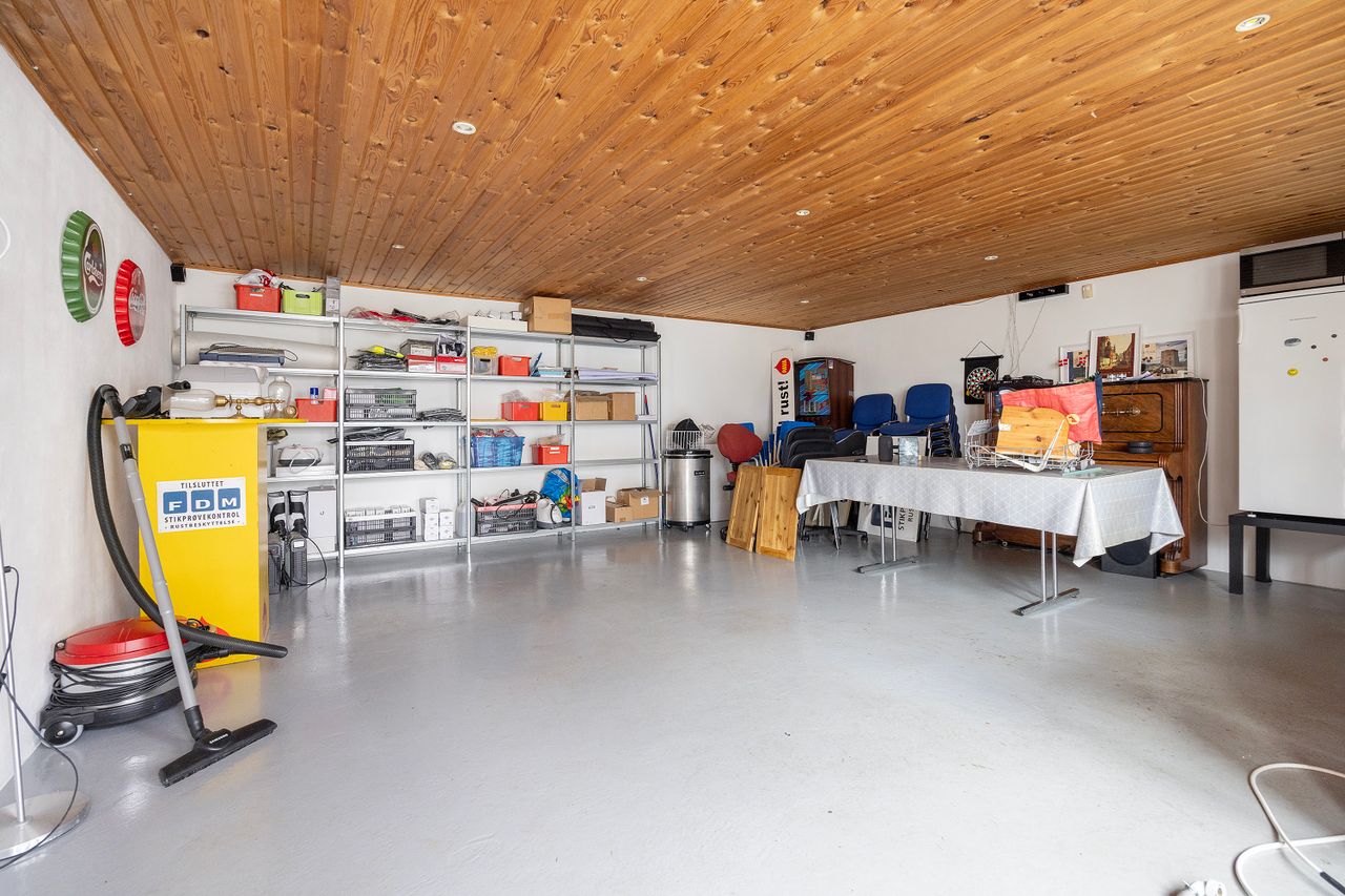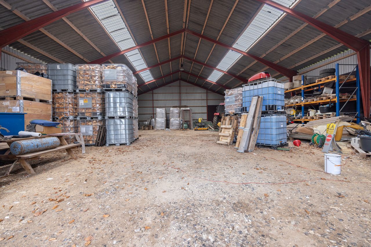 Erhverv drives fra de opdaterede drifts- og værkstedsbygninger på ejendommen, hvor der naturligvis er tilladelse til at drive virksomhed fra. Bygningerne består primært af stålbuebygninger med eternittag. Ifølge BBR udgør erhvervsarealet på ejendommen i alt 1.019 m2. Der er naturligvis de fornødne miljøtilladelser til den nuværende anvendelse af bygningerne.