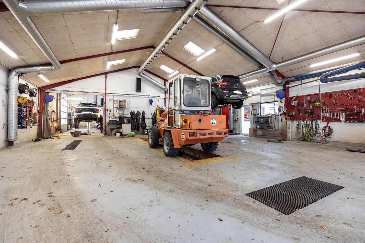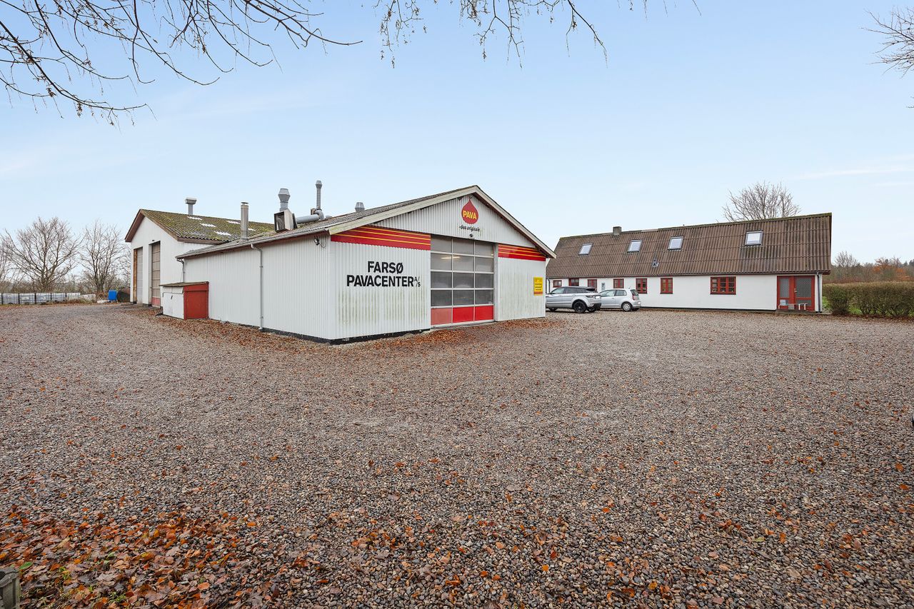 Den bestående virksomhed Farsø Pavacenter A/S, der er en del af den udbudte ejendom, er en veldrevet og velrenommeret virksomheden indenfor undervognsbehandling af køretøjer. Man overtager som et led i virksomhedsoverdragelsen kundekartotek, driftsmateriel, varelager og goodwill. For den seriøse køber vil der være mulighed for at få indblik i driftstal historisk. Til virksomheden medfølger i øvrigt en ophuggertilladelse.
