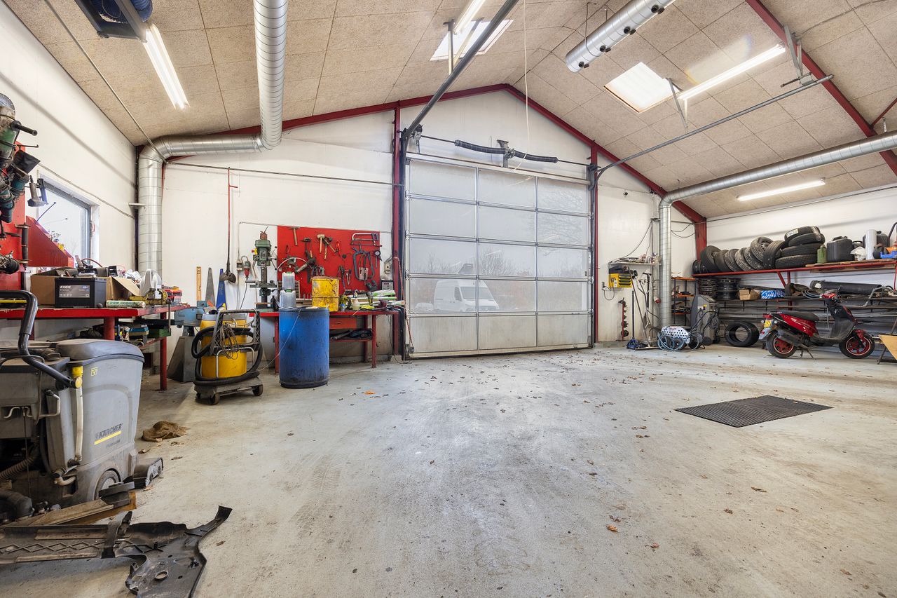 Naturskønt beliggende landbrugsejendom, hvor nuværende ejer kombinerer egen privat bopæl med drift af selvstændig virksomhed, der beskæftiger sig med undervognsbehandling indenfor Pava-kæden.