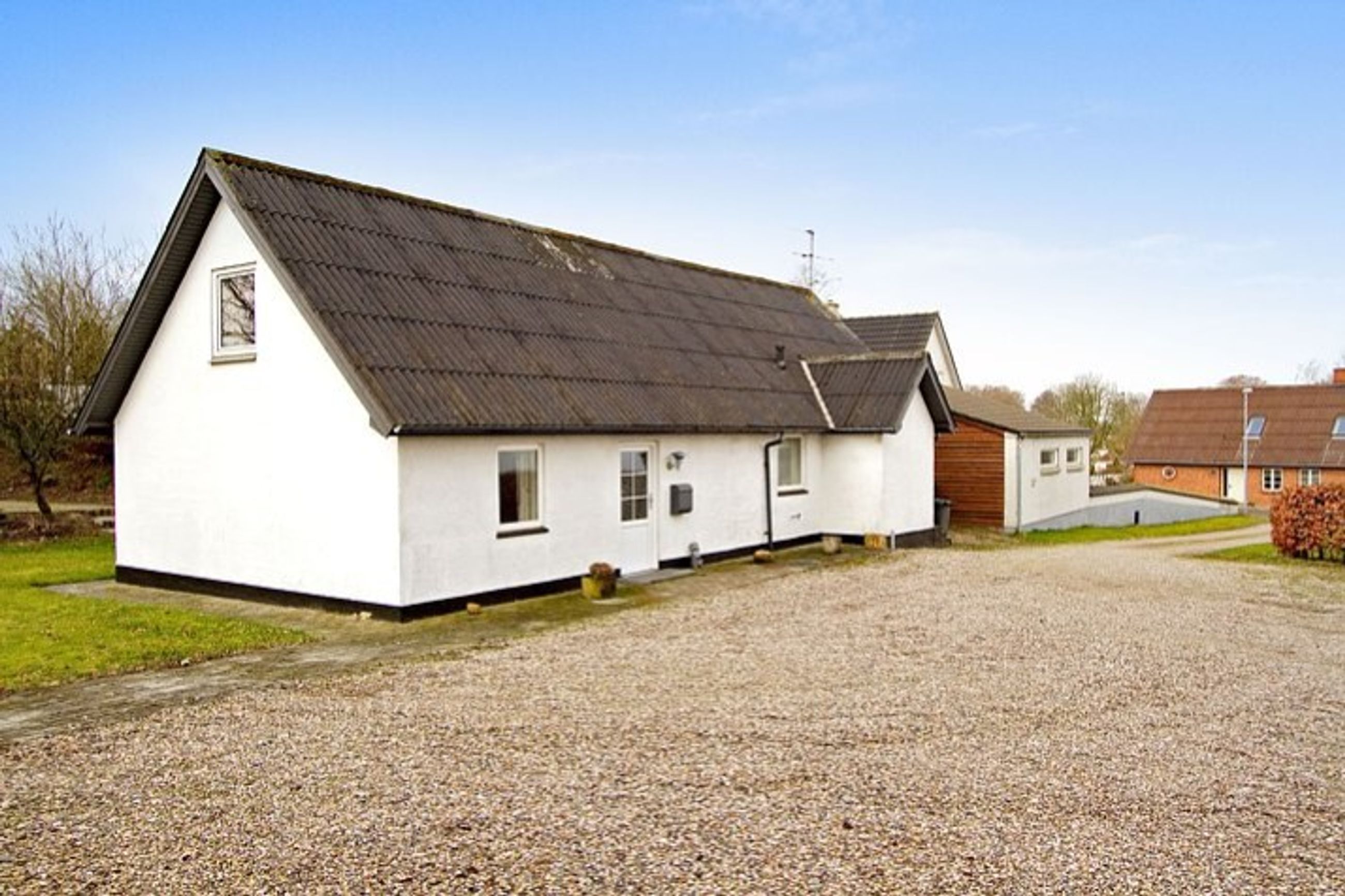 Skøn villa med pudsede facader og tag af eternit. Fremtræder indflytningsklar. Rummelig med i alt 163 m2 fordelt på 2 plan. Ugeneret have rundt om huset, hvor sælger har etableret en hævet terrasse i sten. Derudover er haven primært udlagt i græsplæne og omkranset af hæk og store træer. Grusbelagt.. Læs mere...