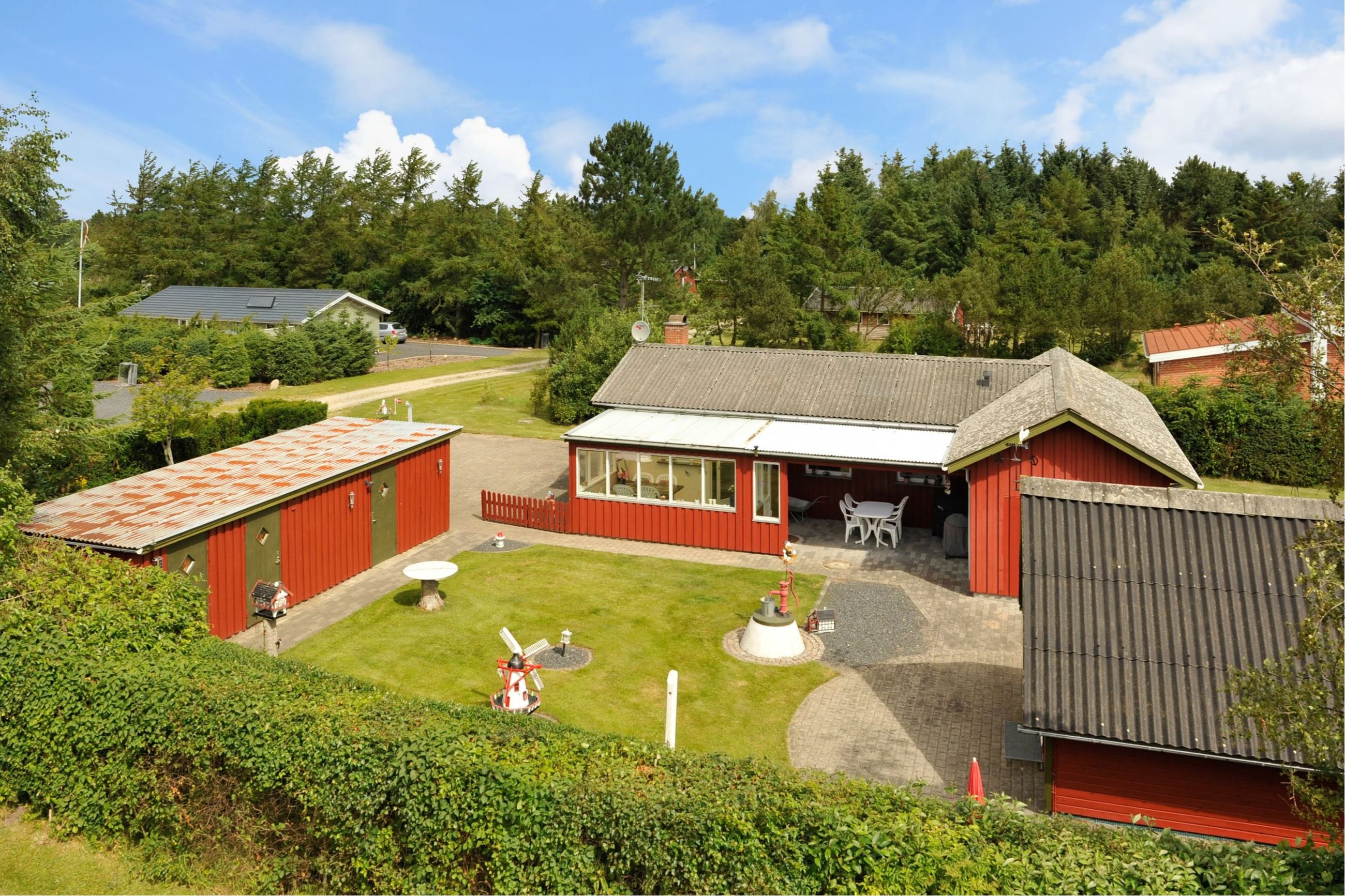 Huset er indrettet med; Dejlig stue og spisestue med brændeovn og varmepumpe. Fra spisestue er der udgang til udestue. Depotrum/viktualierum. Badeværelse med toilet, bruser og vask i skabsarrangement. Køkken i lyse elementer og god skabsplads. 3 rummelige værelser. Desuden god garage med elport og 2 bagvedliggende udhuse. Endvidere 2 yderligere udhuse hvoraf det ene bruges til anneks, det andet er isoleret og kan ligeledes bruges til anneks hvis det ønskes.