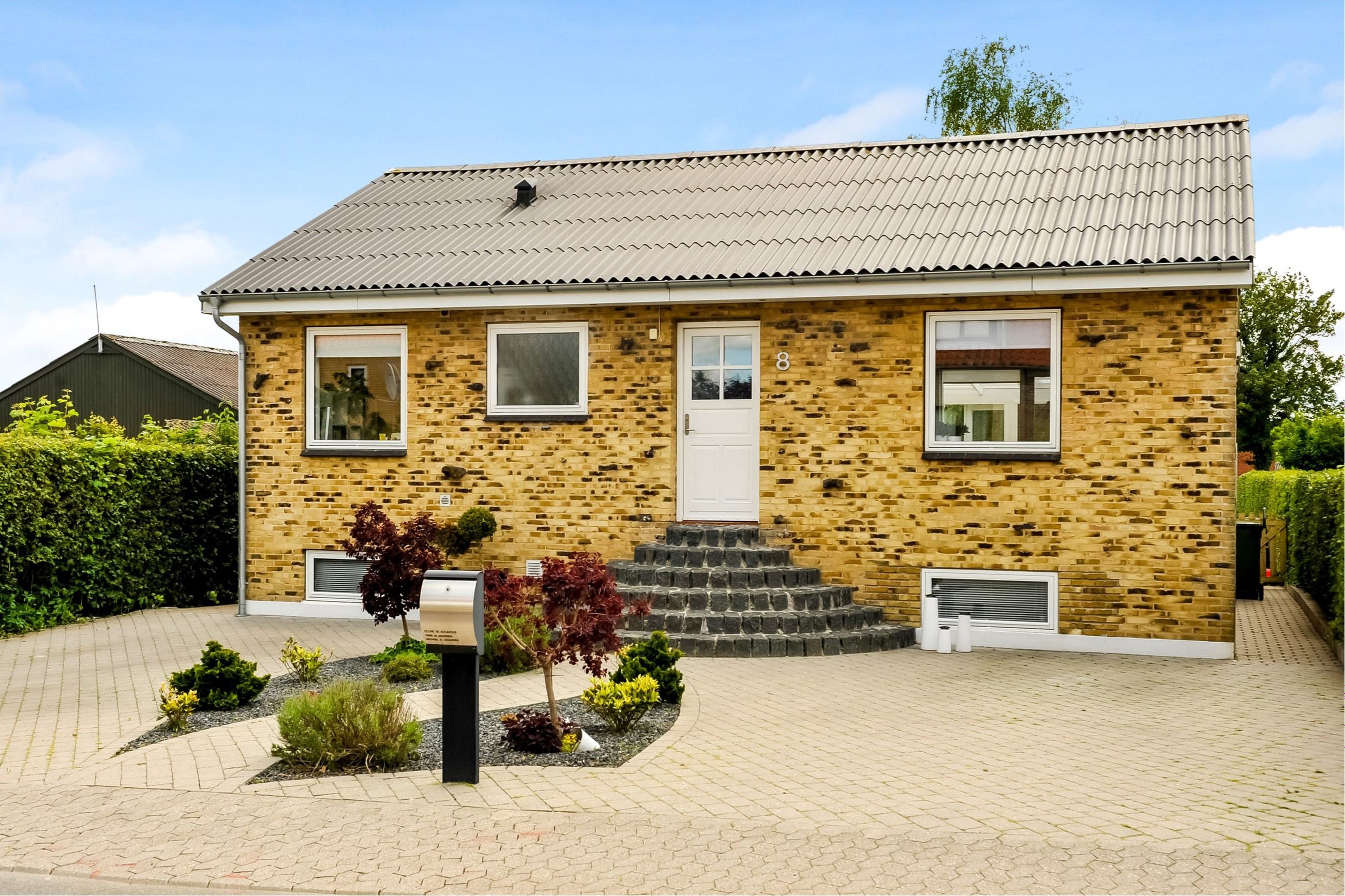 Huset er indrettet med: Entre/gang med klinker på gulv. Dejlig lys opholds- og spisestue med udgang til udestue. Lyst køkken med elementer i soft lud. Soveværelse med skydedørsskabe. Værelse med skydedørsskabe. Badeværelse med hvide elementer, toilet, bruseniche, klinker på gulv med gulvvarme og plads til vaskemaskine/tørretumbler. Fra haven er der adgang til kælderen som er indrettet med: Bryggers/grovkøkken. Gang med bar. Stue som er indrettet til herrestue med poolbord og sofagruppe. Lyst badeværelse med bruser, toilet og vask i skabsarrangement. Depotrum. Soveværelse.